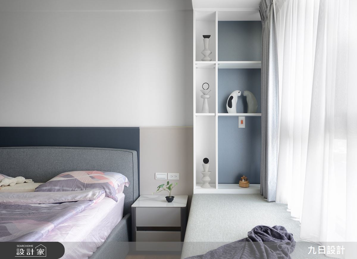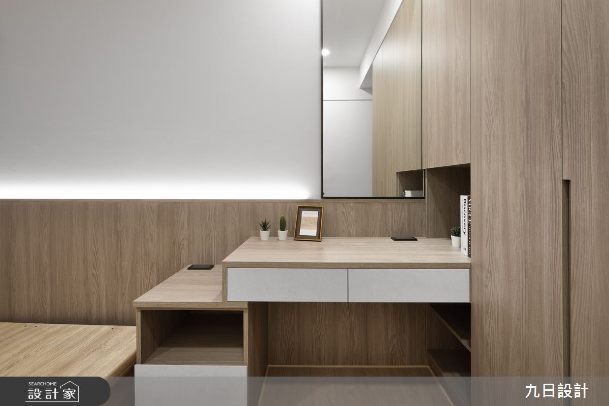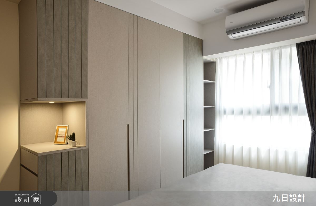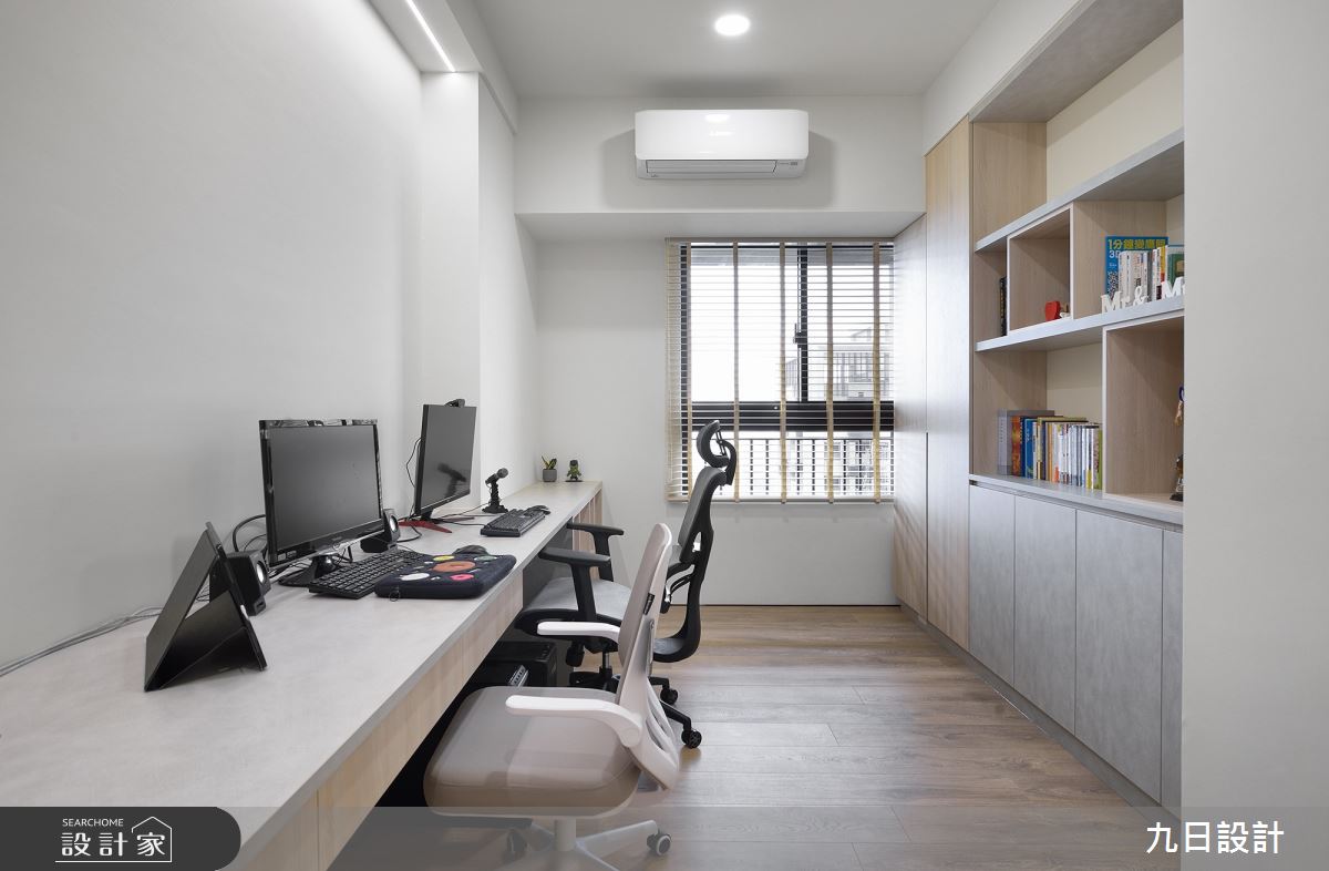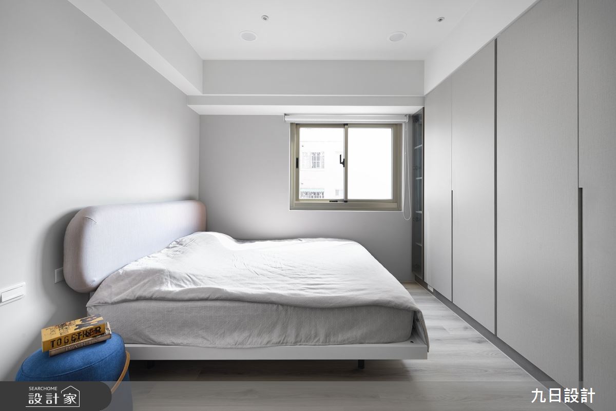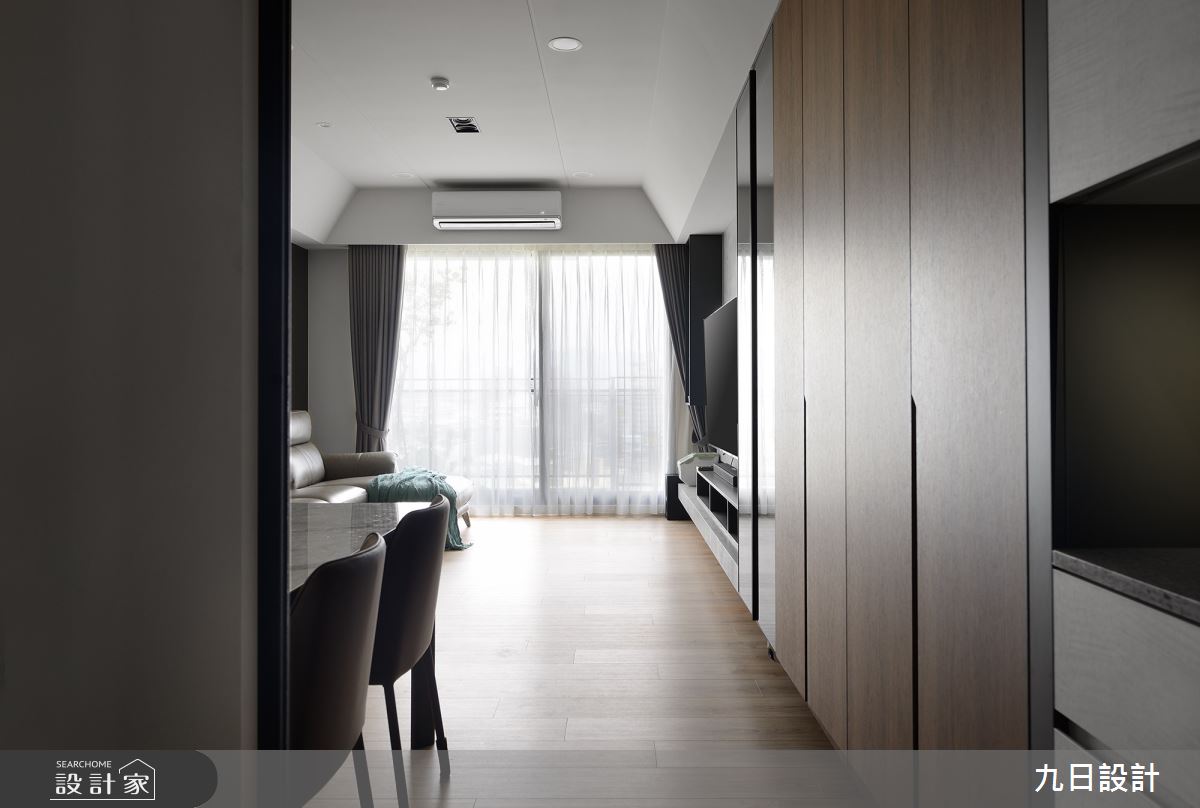 本案為九日設計的28坪現代風新成屋(5年以下)設計作品,格局為單層三房的居住空間。居住成員包含2位大人。全室建材的搭配,應用木作、系統櫃、油漆、賽麗石、鐵件、磁磚、SPC地板、義大利塗料、鋁框門、燈條、灰鏡,展現溫馨的居家氛圍。