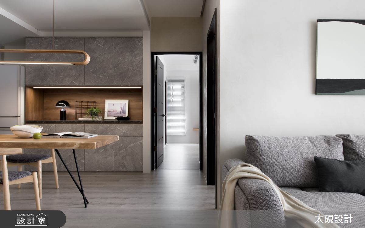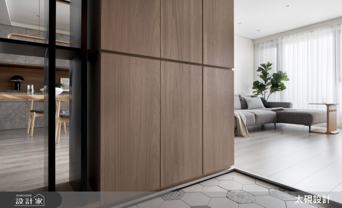 由太硯設計精心規劃的25坪三房住宅空間,家庭成員一共有3位大人。因應屋主需求,設計師運用簡約風作為主軸,搭配超耐磨木地板、木地板、鍍鈦金屬、木作貼皮、磁磚、樂土,打造全家人的夢想家居。