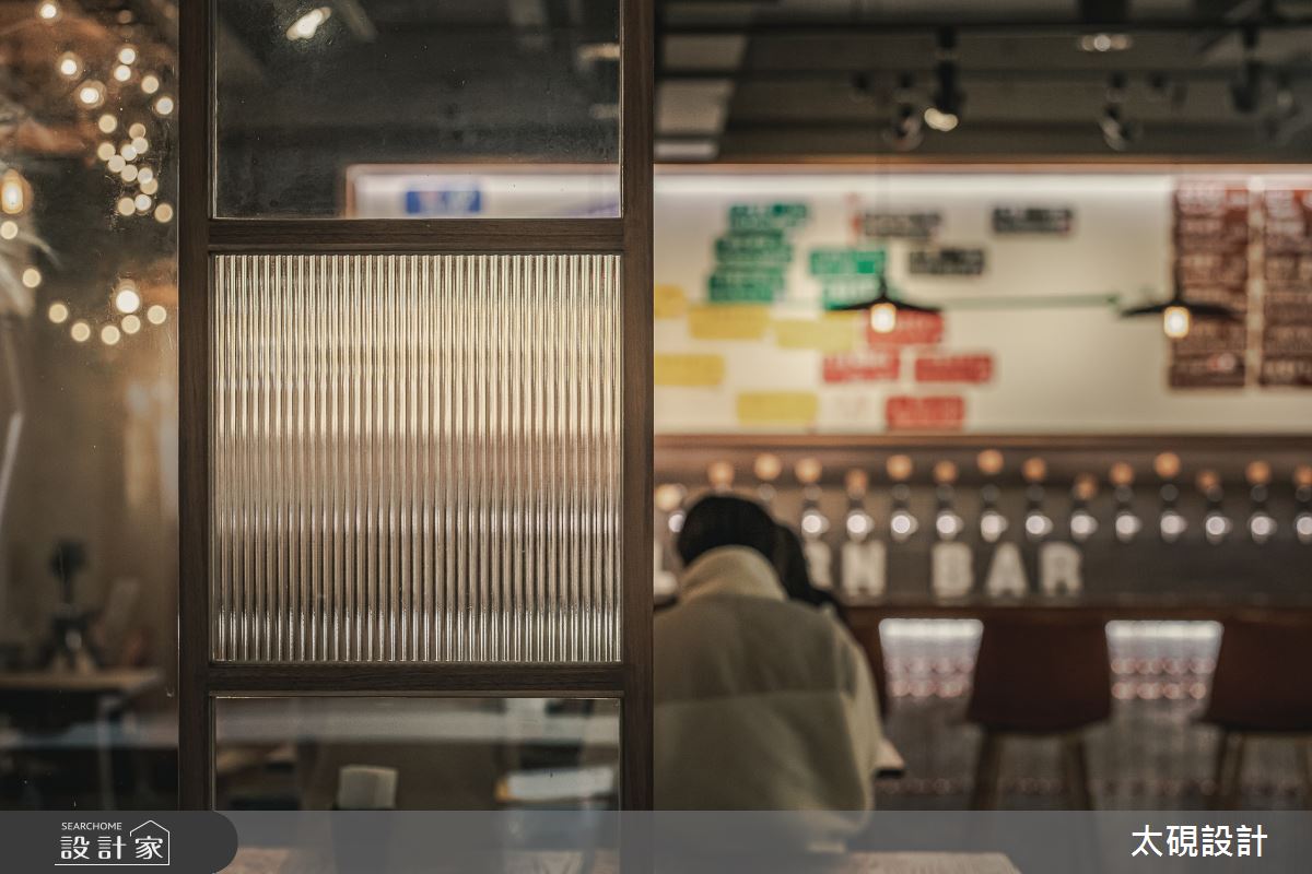 太硯設計以樂土、復古磚、抿石子、窗花、壓花玻璃的搭配應用,呈現台式風的風格氣息,將此間25坪老屋(16~30年)優雅詮釋成舒適愜意的商業空間。
