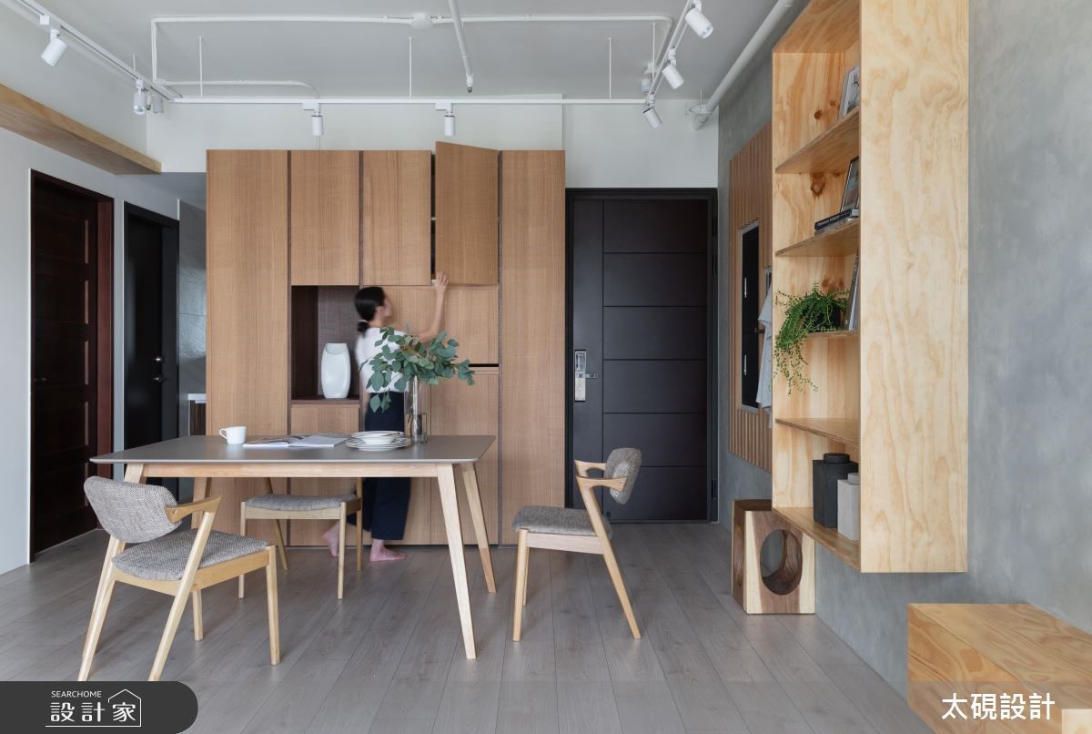 51 坪簡約風老屋,伴隨一家人成長四十年,不只是一間住宅,而是充滿回憶與熟悉感的避風港,因此大兒子也選擇繼續在此建立自己的小家庭。由於漏水、壁癌問題日益嚴重,且考量久居及未來三代同堂的生活,設計師由外而內徹頭徹尾地翻新,以建材用料特色表現老空間韻味! 建築外觀上,先改變內門入口方向,再讓強化透明玻璃取代原本略帶封閉感的浪板遮棚,導引充沛自然光照亮室內;外牆透過老師傅傳統手鑿石子工法,搭配年輕師傅的環保建材樂土粉光施作呈現質樸特性,再以有個性的溝縫設計,傳遞新舊揉合的三代住宅。室內迎賓入口處頂部開窗,日光得以繼續延伸,桌椅與鞋櫃的溫潤色系,迎來一幅愜意閒暇景象,並透過穿鞋椅巧妙界定格局區塊;室內大致維持原格局安排,僅將獨立廚房打開,讓屋主能向客人展示自營的廚具設備,且招待自用皆感受兩倍寬敞感。 小編的最愛 黑、白、灰的主視覺中,以實木皮平衡空間暖度,電視牆磚、天花木格柵、黑鐵鏤空櫃,一一透過材質與紋理的表現,展示有內涵的層次表情,時而現代,時而禪意的空間,為老房子與居住者實現理想中的樣貌。
