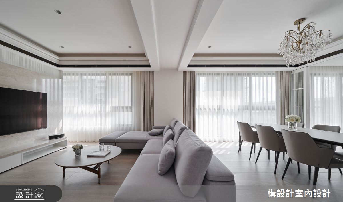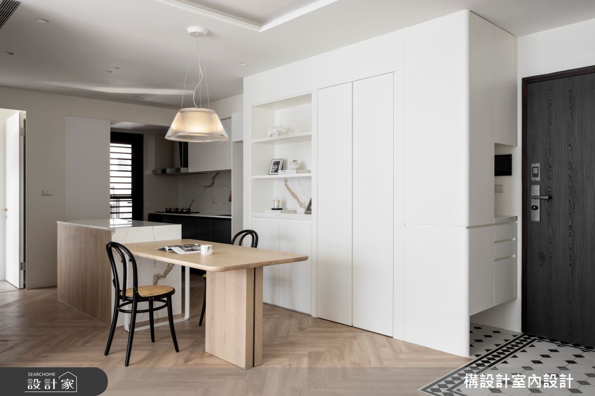 來自構設計的20坪新古典住宅案,屋主一家人共有2位大人、1位小孩,是一間單層毛胚屋的三房格局,設計師藉由建材以超耐磨木地板、鐵件、烤漆、帝雉石、木皮的搭配應用,實現一家人的理想生活。