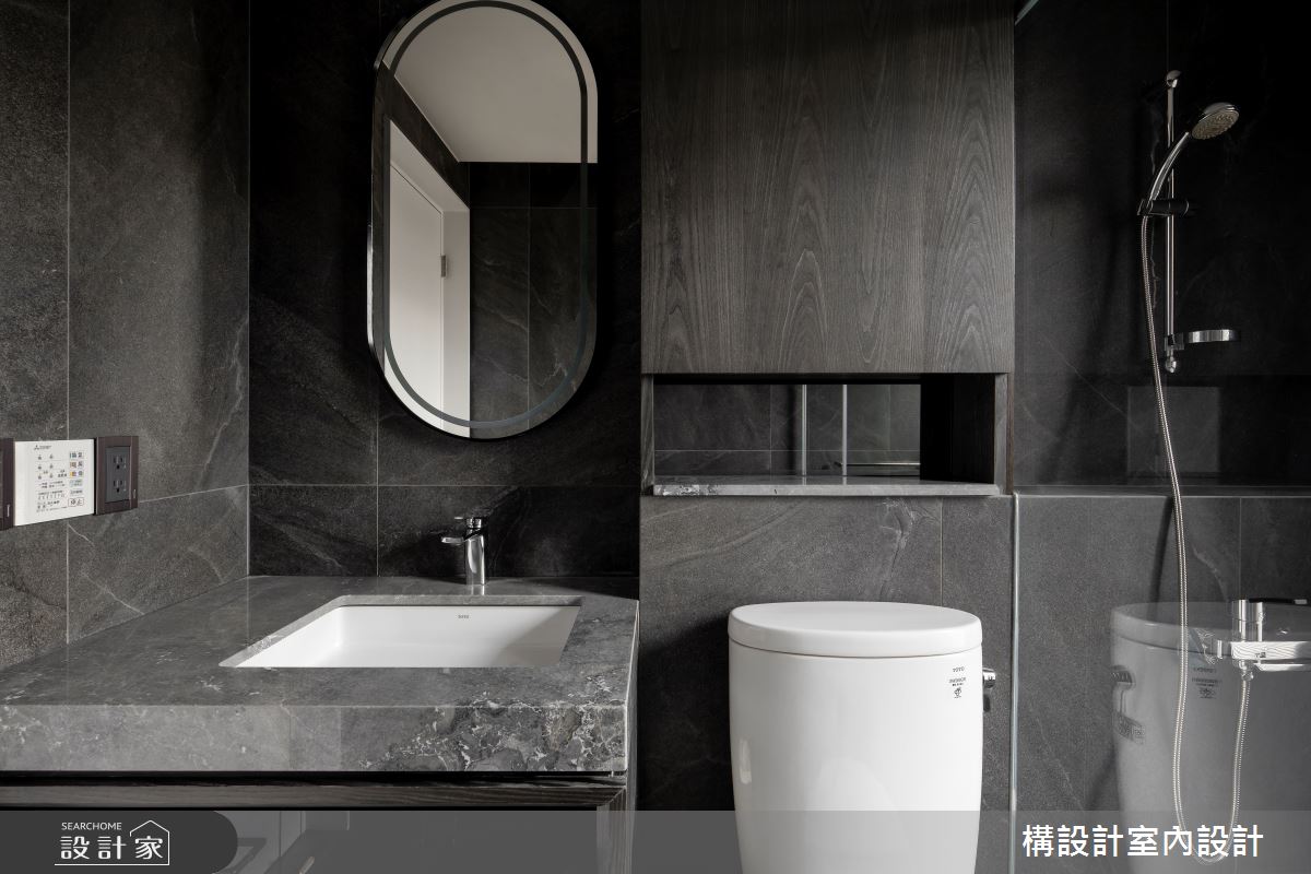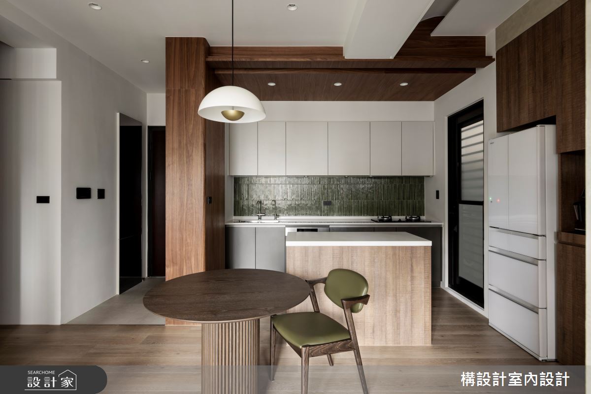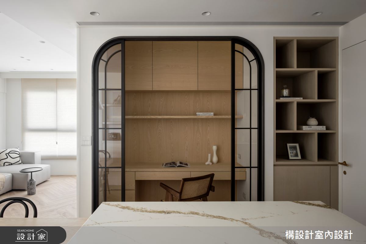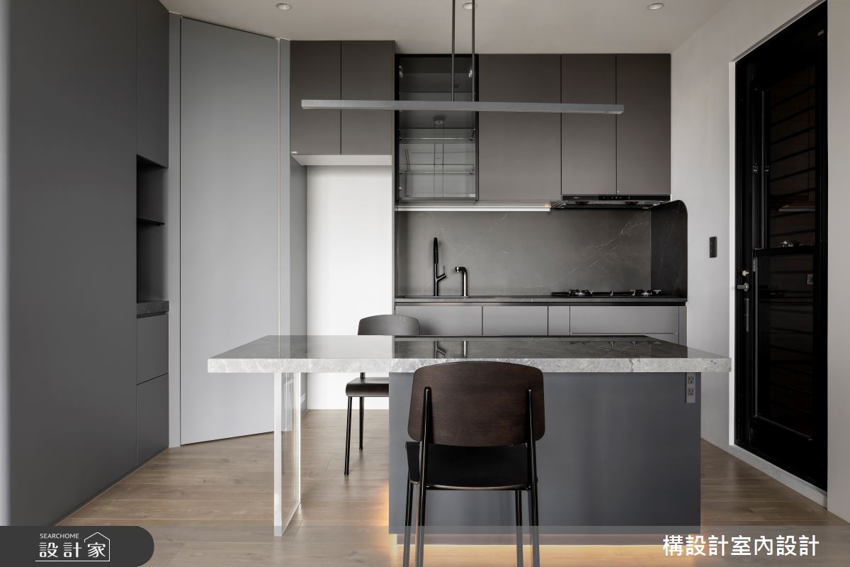 由構設計精心規劃的16坪兩房住宅空間,家庭成員一共有1位大人。因應屋主需求,設計師運用現代風作為主軸,搭配大理石、木皮、超耐磨地板、烤漆,打造全家人的夢想家居。
