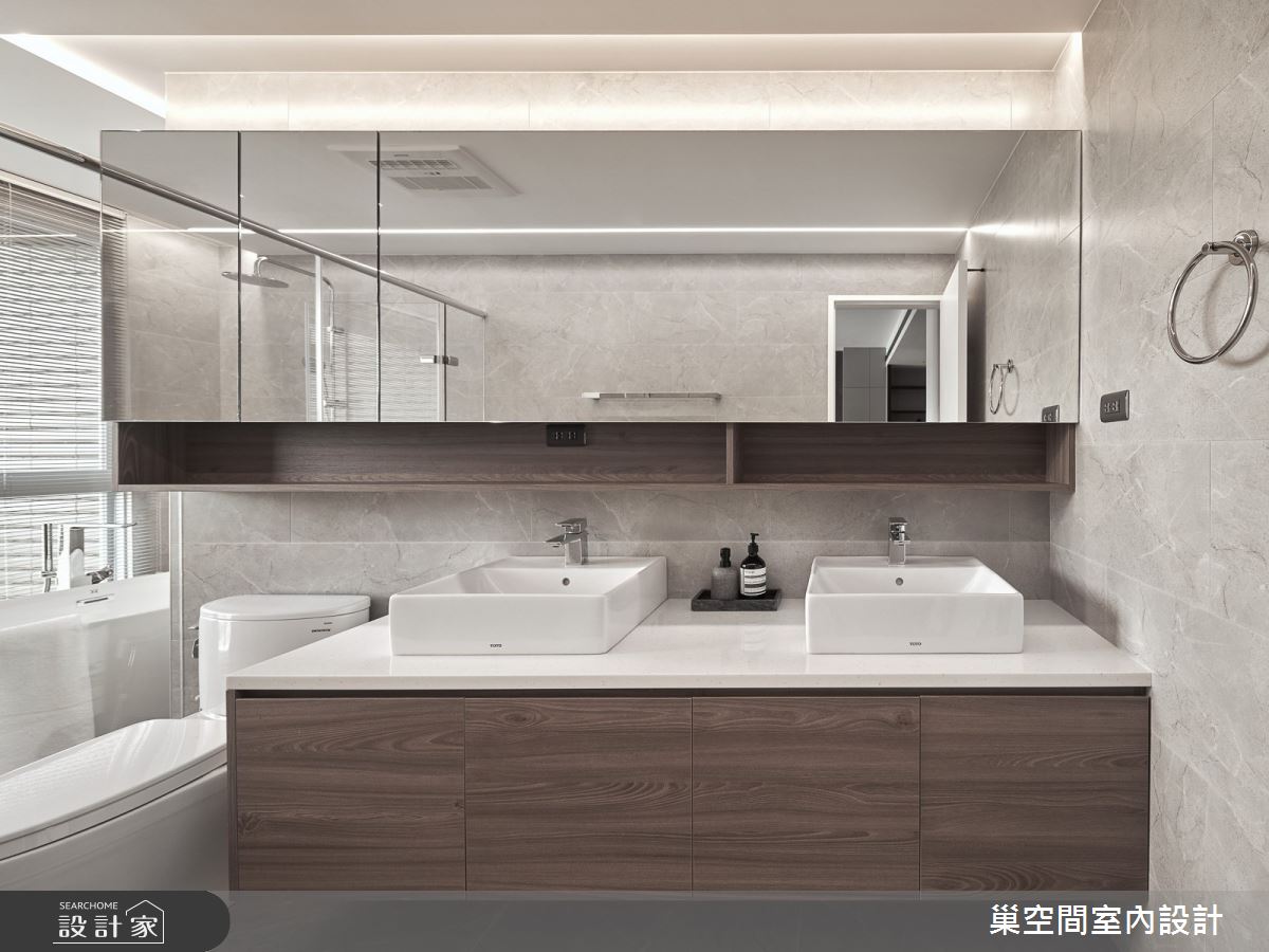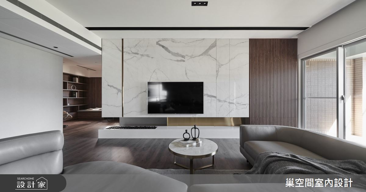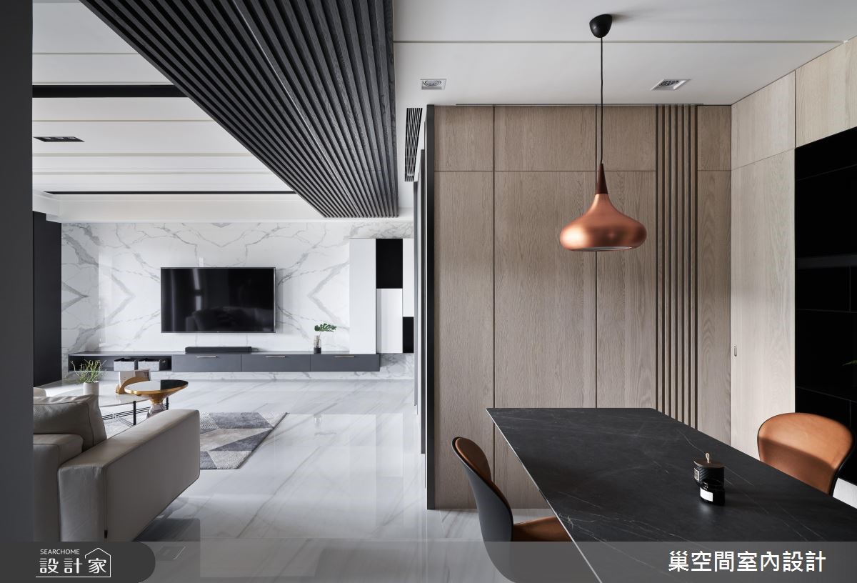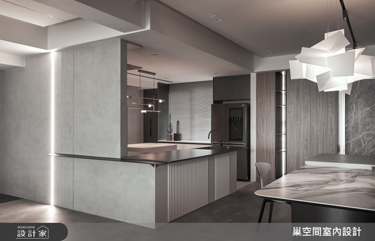 由巢空間室內設計精心規劃的70坪三房住宅空間,家庭成員一共有2位大人。因應屋主需求,設計師運用現代風作為主軸,搭配大理石、烤漆鐵件、水磨石、特殊藝術塗料、毛絲面不鏽鋼、賽麗石檯面、灰色鏡面、超耐磨木地板、超耐磨防水地板、Egger系統櫃、Dulux乳膠漆,打造全家人的夢想家居。