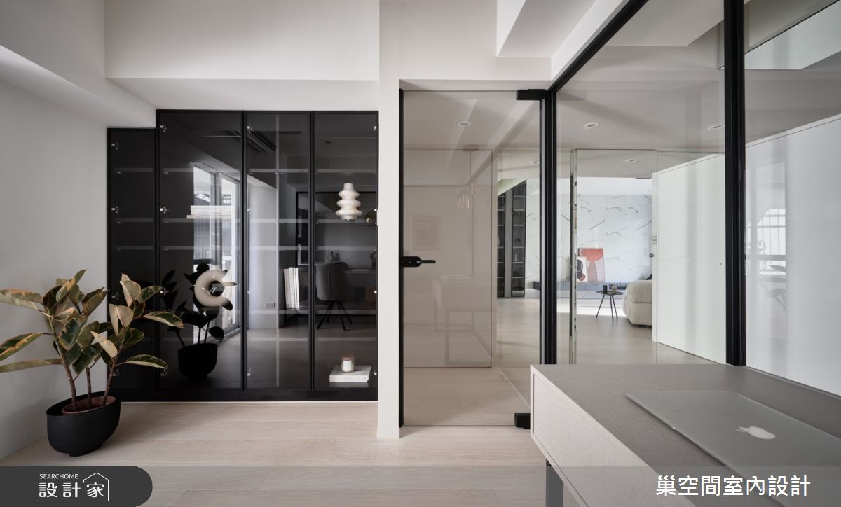 由巢空間室內設計精心規劃的19坪三房住宅空間,家庭成員一共有2位大人、1位小孩。因應屋主需求,設計師運用現代風作為主軸,搭配烤漆鐵件、礦物塗料、大理石、鏡面、皮革、水磨石、Egger系統櫃、洞洞板、超耐磨木地板、Dulux乳膠漆,打造全家人的夢想家居。