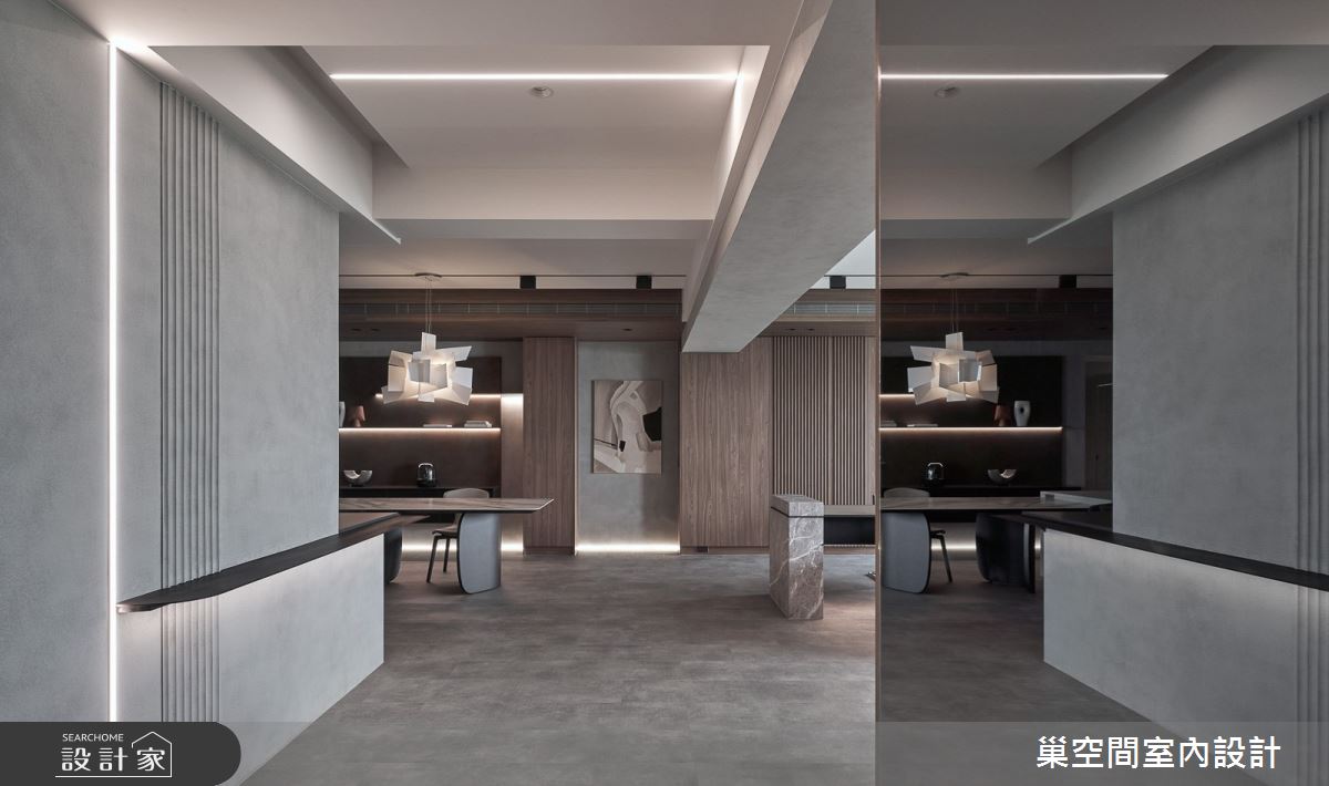本案為巢空間室內設計的55坪現代風新成屋(5年以下)設計作品,格局為單層四房的居住空間。居住成員包含2位大人、2位小孩。全室建材的搭配,應用進口薄瓷板、鍍鈦金屬、Egger系統櫃、鐵件、長虹玻璃、賽麗石Silestone、Pergo超耐磨地板、Dulux乳膠漆,展現溫馨的居家氛圍。