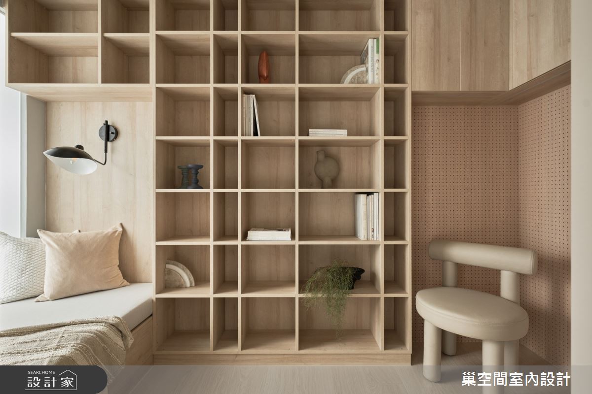 巢空間室內設計以藝術塗料、烤漆鐵件、大理石紋板、清水模紋磚、霧面玻璃、Pergo超耐磨木地板、Egger系統櫃的搭配應用,呈現現代風居家氛圍,將此間24坪、三房、單層、老屋(16~30年)打造成舒適愜意的家庭空間,完成2位大人、2位小孩全家人的夢想之居。