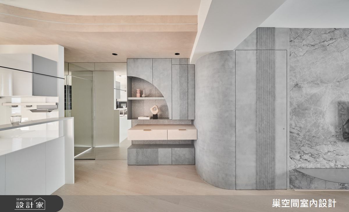 由巢空間室內設計精心規劃的19坪三房住宅空間,家庭成員一共有2位大人、1位小孩。因應屋主需求,設計師運用現代風作為主軸,搭配烤漆鐵件、礦物塗料、大理石、鏡面、皮革、水磨石、Egger系統櫃、洞洞板、超耐磨木地板、Dulux乳膠漆,打造全家人的夢想家居。