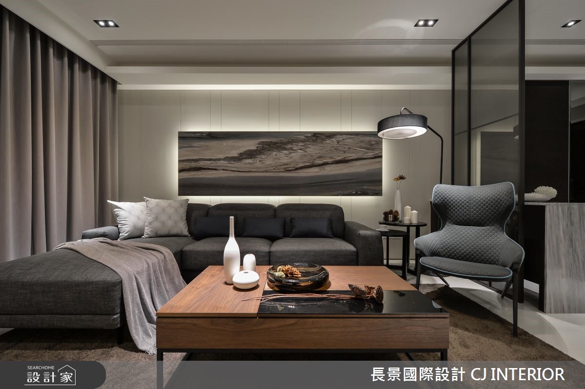 由長景國際設計精心規劃的34坪兩房住宅空間,家庭成員一共有2位大人。因應屋主需求,設計師運用現代風作為主軸,搭配乳膠漆、超耐磨木地板、鐵件、茶玻、鍍鈦金屬、木作貼皮、烤漆、鋼刷木皮、大理石、樂土、木百葉、石材、繃布、噴漆,打造全家人的夢想家居。