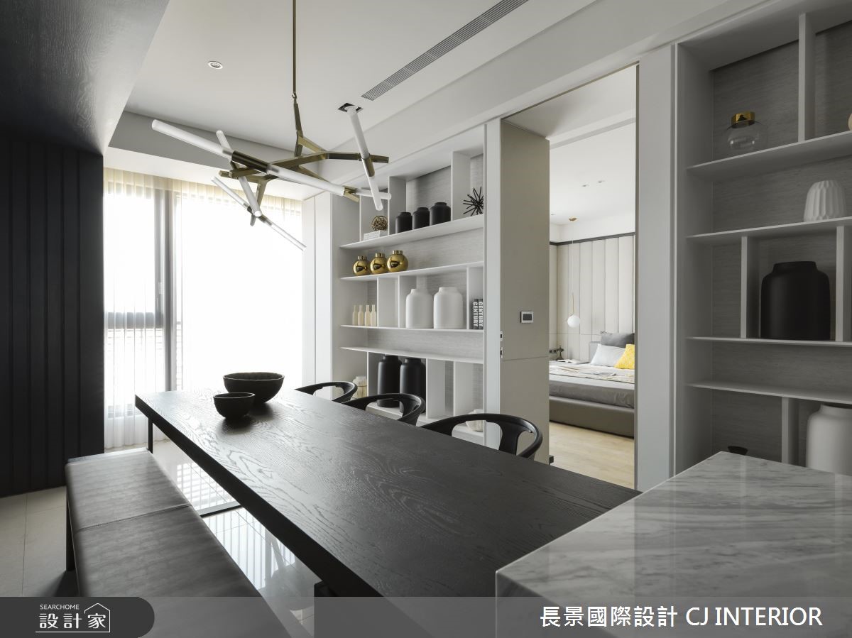 147坪現代風大宅,設計師盡可能讓空間留白,適度添佐深色調穿插,創造對比的俐落與樂趣,並納入極佳窗光,為光線展演預留伏筆,使日升、日落形成最佳的室內裝飾,材質選用上,則藉由鐵件、石材、玻璃、實木皮等相互搭配,營造簡約而人文的空間氣韻;同時適度賦予空間「轉換」含意,透過機能場域的重疊,創造可短暫停留的複合空間,增進生活使用彈性,區域之間的界定也不刻意作「滿」,讓光線可自由流通,替居家保留不同視角的光影趣味。