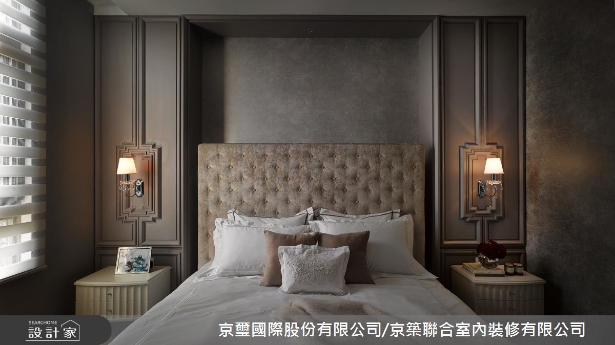 本案為京璽國際股份有限公司的50坪現代風預售屋設計作品,格局為單層四房的居住空間。全室建材的搭配,應用壁紙、木地板、鍍鈦金屬、大理石、壁布、石紋地磚,展現溫馨的居家氛圍。