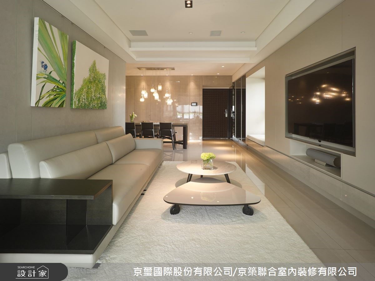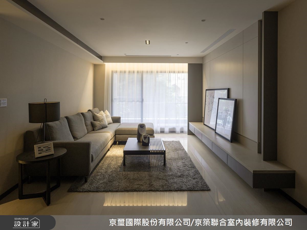 63坪現代風居家,設計師因地制宜,從居住者的需求角度出發,以開放視角及簡約純粹的基調,砌築這個生活場域,並合理鋪陳流暢動線,將客、餐廳配置在同一條軸線上,透過窗外的好採光照拂,讓光線可自由流動,烘托家的舒適溫度,同時整合空間一切的櫃體量體,簡化多餘線條與裝飾元素,透過俐落線條、隱藏門片等美化機能,搭襯鏡面、烤漆等反射建材營造透亮感,同時延伸尺度、拓展景深,搭配淨白的空間基底,還給屋主最舒適的居宅面貌。