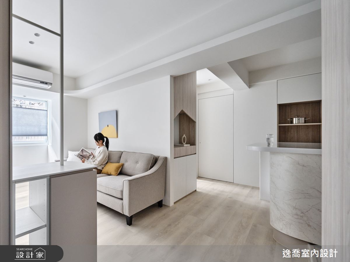 由逸喬室內設計精心規劃的20坪兩房住宅空間,家庭成員一共有2位大人。因應屋主需求,設計師運用現代風作為主軸,搭配乳膠漆、超耐磨木地板、鐵件、灰鏡、系統板材、人造石、石塑地板、合塗特殊塗料,打造全家人的夢想家居。