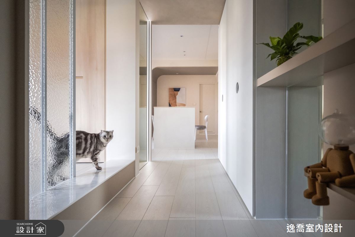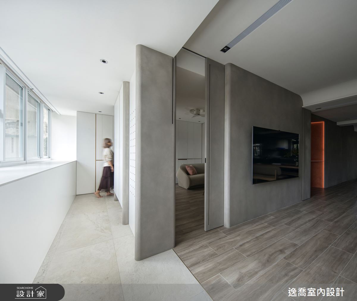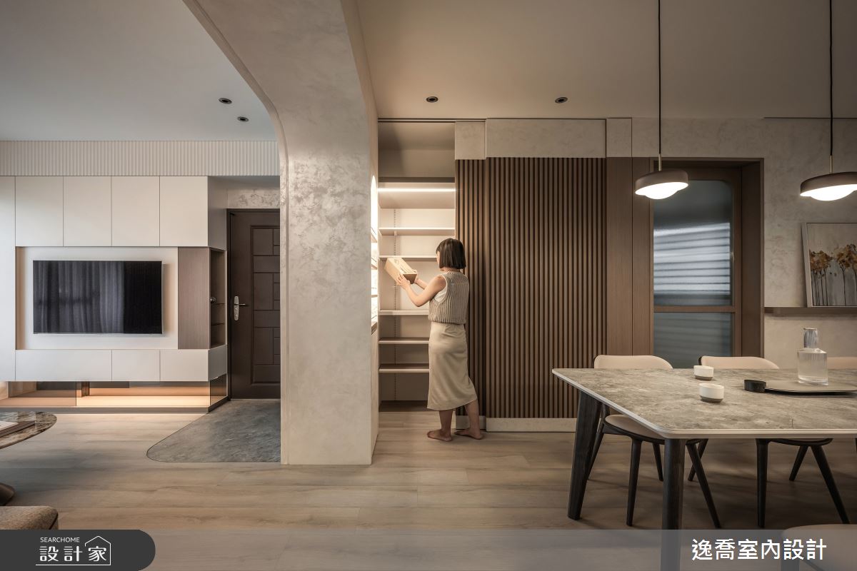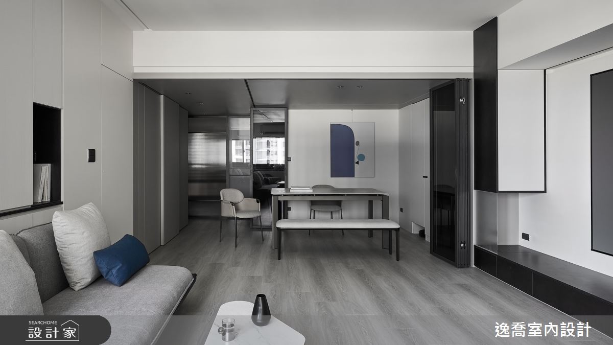 由逸喬室內設計精心規劃的32坪四房住宅空間,家庭成員一共有2位大人、2位小孩。因應屋主需求,設計師運用現代風作為主軸,搭配乳膠漆、系統板材、人造石、石塑地板、特殊漆、水波紋玻璃,打造全家人的夢想家居。