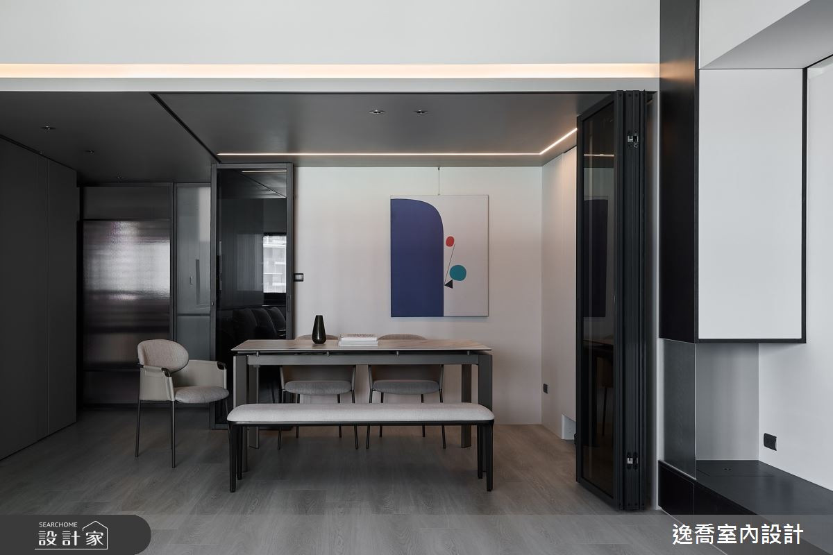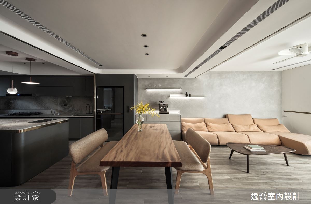 由逸喬室內設計精心規劃的39坪三房住宅空間,家庭成員一共有2位大人、2位小孩。因應屋主需求,設計師運用現代風作為主軸,搭配乳膠漆、鐵件、鍍鈦金屬、系統板材、石材、超耐磨地板、金屬美耐板、小冰柱玻璃、薄板磚,打造全家人的夢想家居。