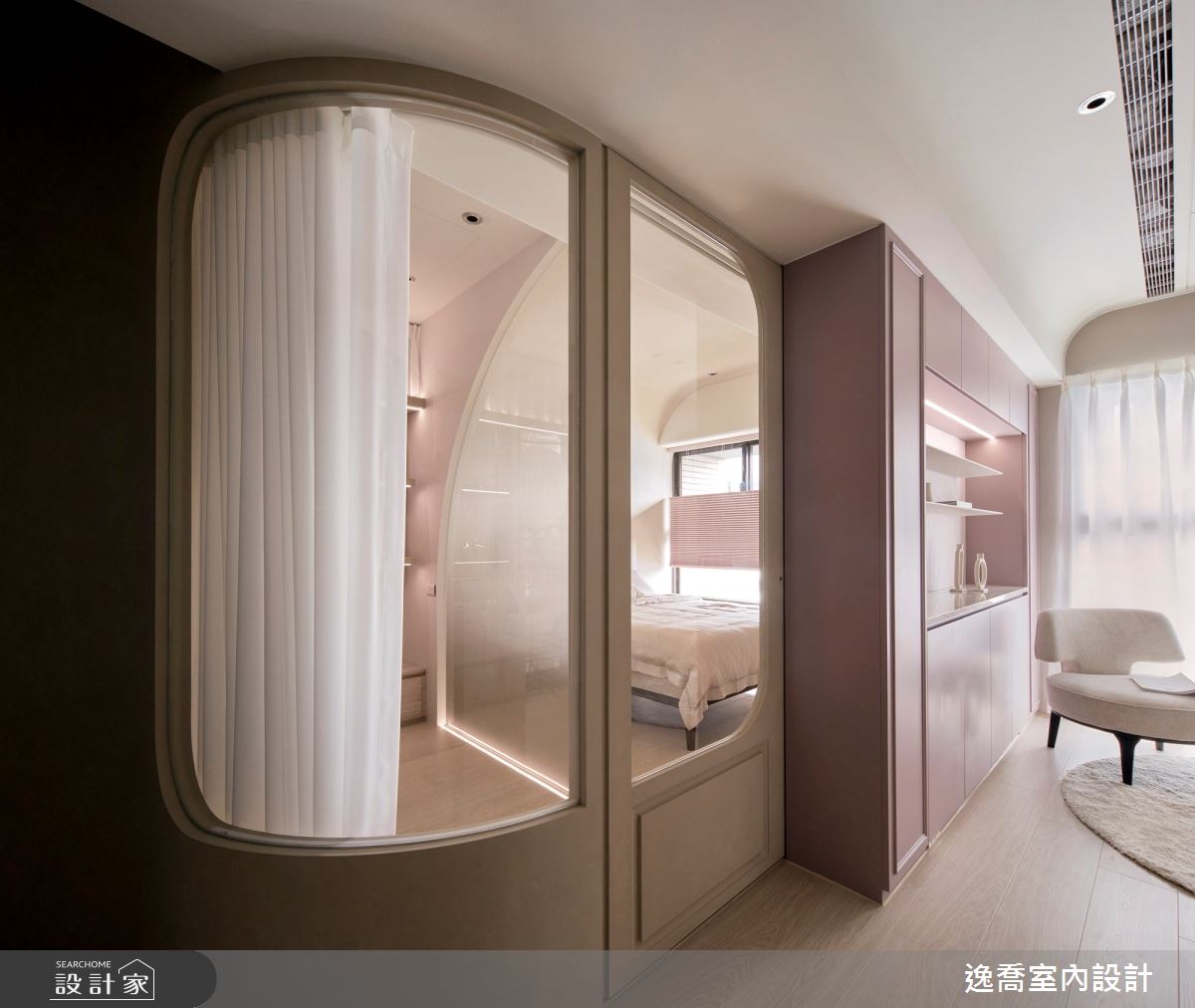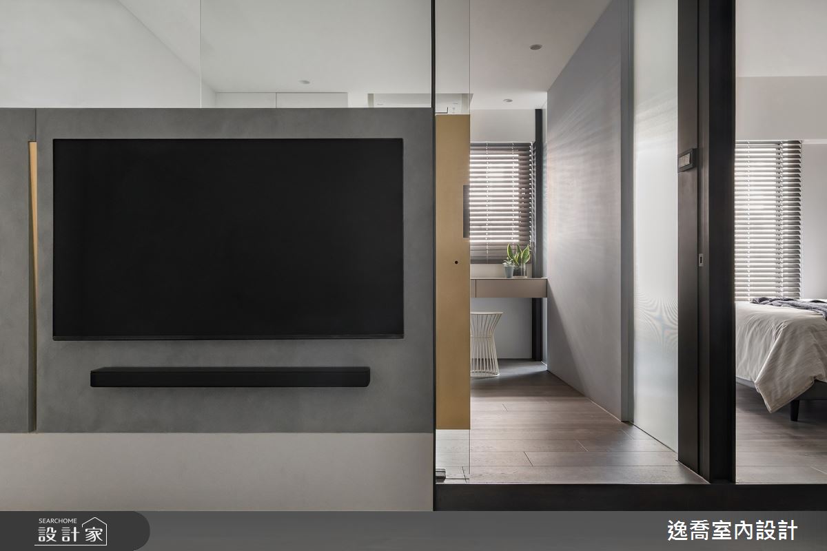 逸喬室內設計以乳膠漆、石英磚、鐵件、烤玻、系統板材、噴漆、薄板、石紋美耐板、仿鈦烤漆、特殊塗料、夾紗玻璃的搭配應用,呈現現代風居家氛圍,將此間13坪、兩房、單層、毛胚屋打造成舒適愜意的家庭空間,完成1位大人全家人的夢想之居。