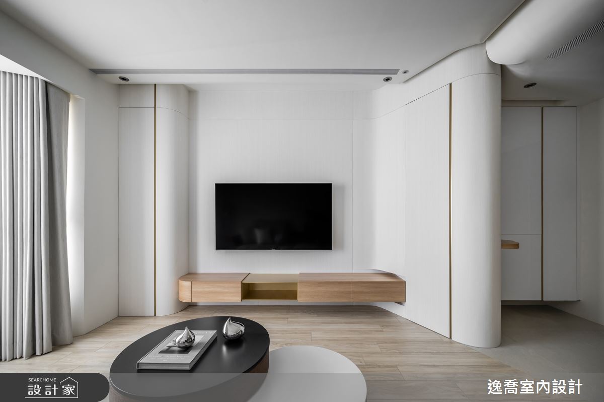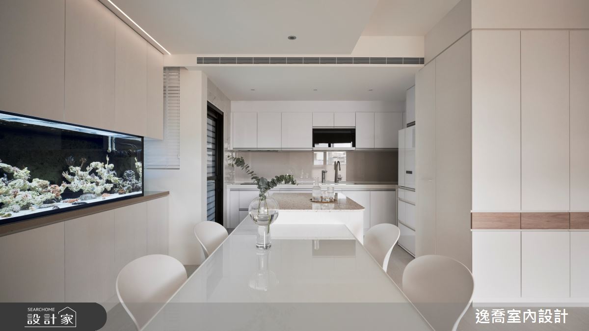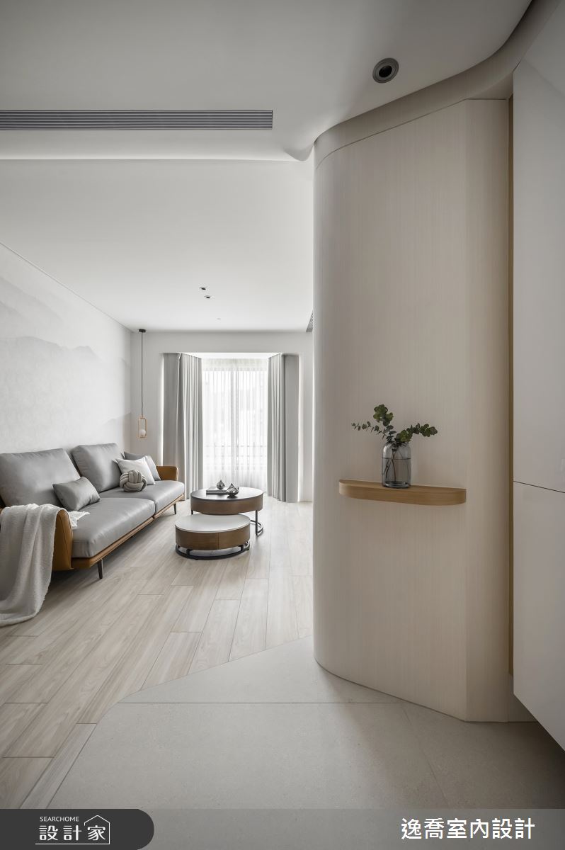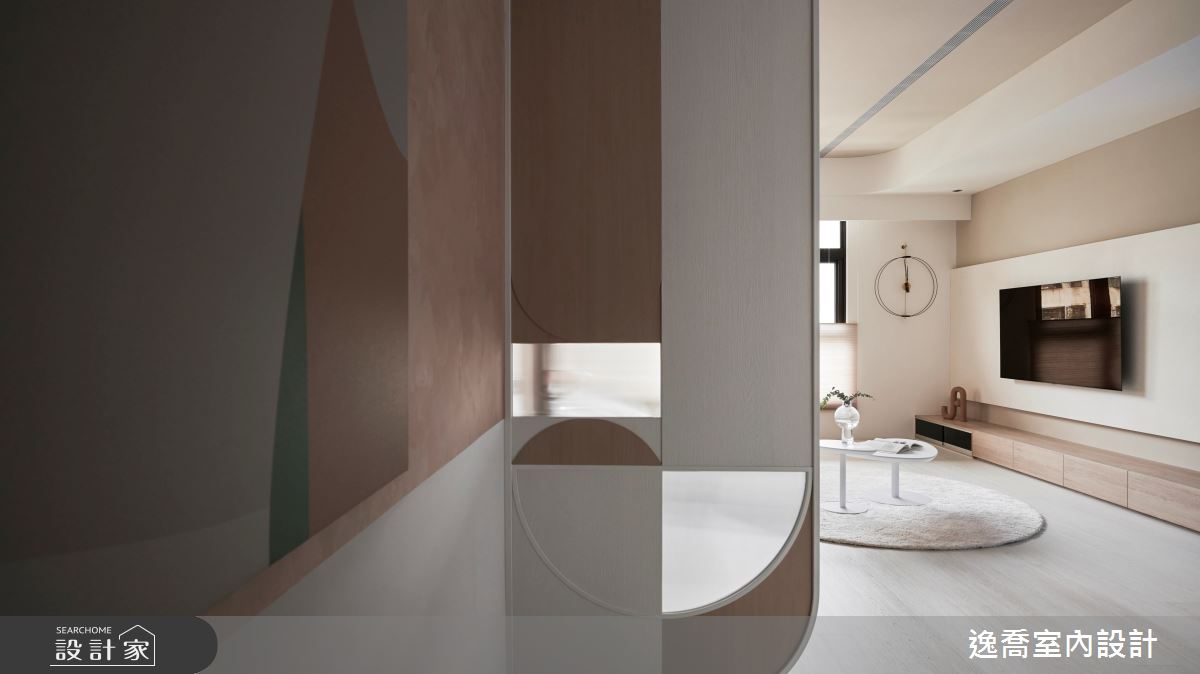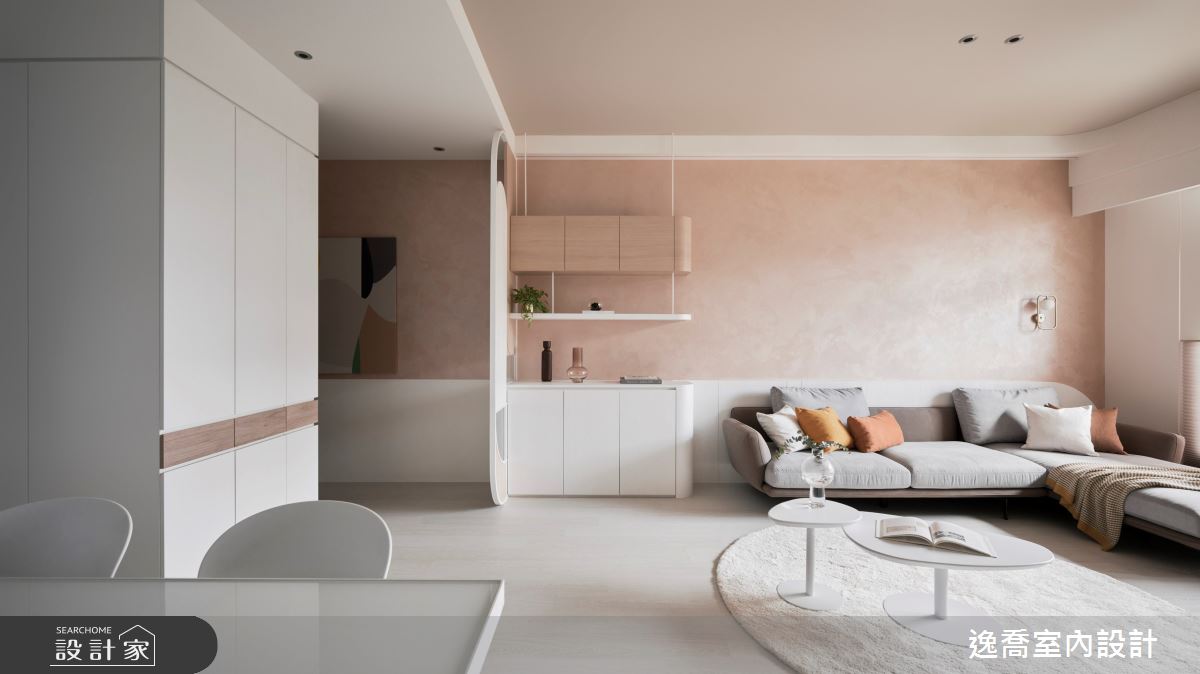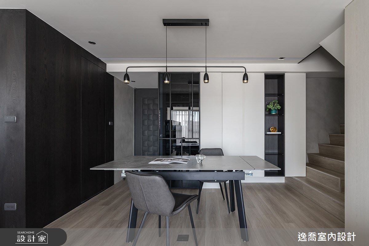 來自逸喬室內設計的33坪現代風住宅案,屋主一家人共有2位大人,是一間單層新成屋(5年以下)的兩房格局,設計師藉由建材以乳膠漆、壁紙、鐵件、木作貼皮、系統板材、噴漆、石塑地板、水磨石、特殊塗料的搭配應用,實現一家人的理想生活。
