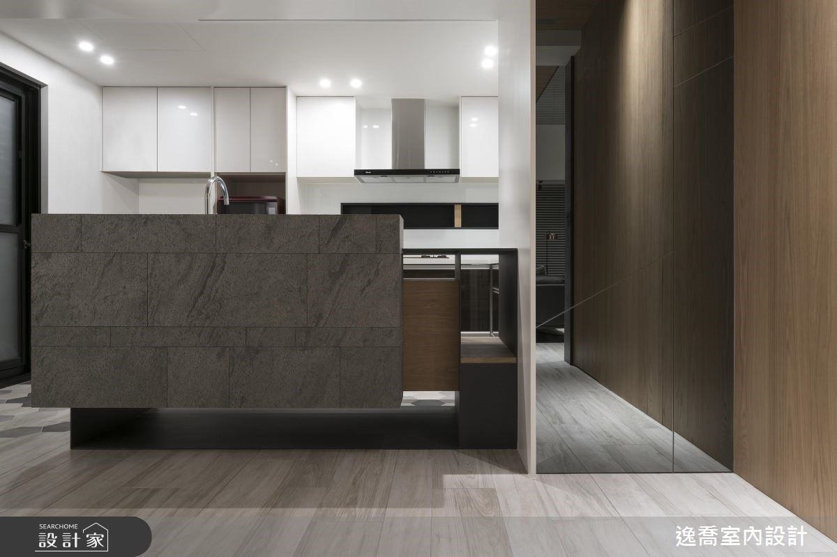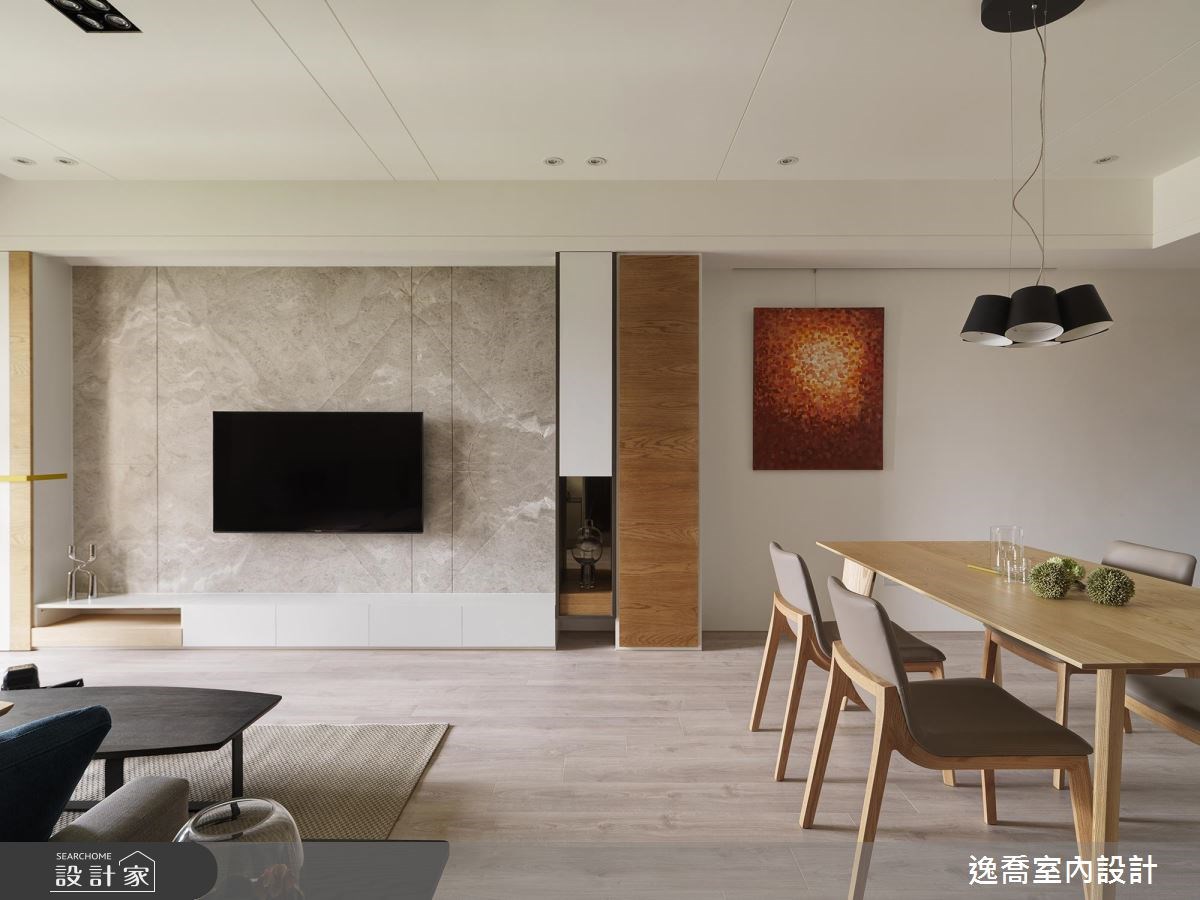 來自逸喬室內設計的35坪現代風住宅案,是一間新成屋(5年以下)的兩房格局,設計師藉由建材以大理石、胡桃實木、海島型胡桃木地板、不鏽鋼、仿水泥特殊漆、灰鏡的搭配應用,實現一家人的理想生活。