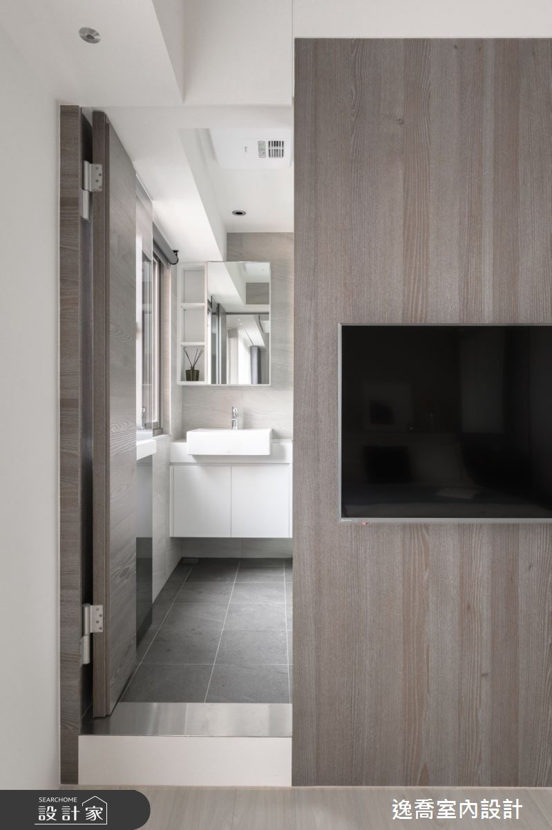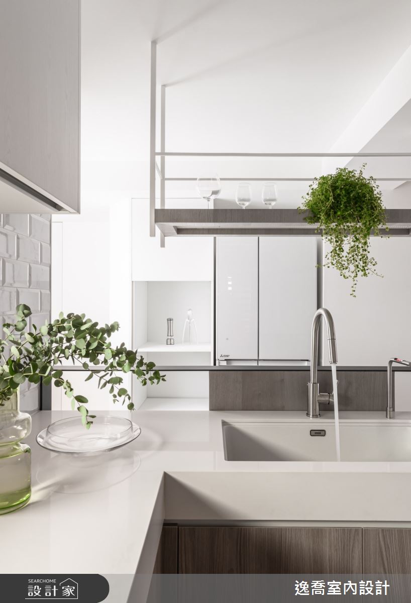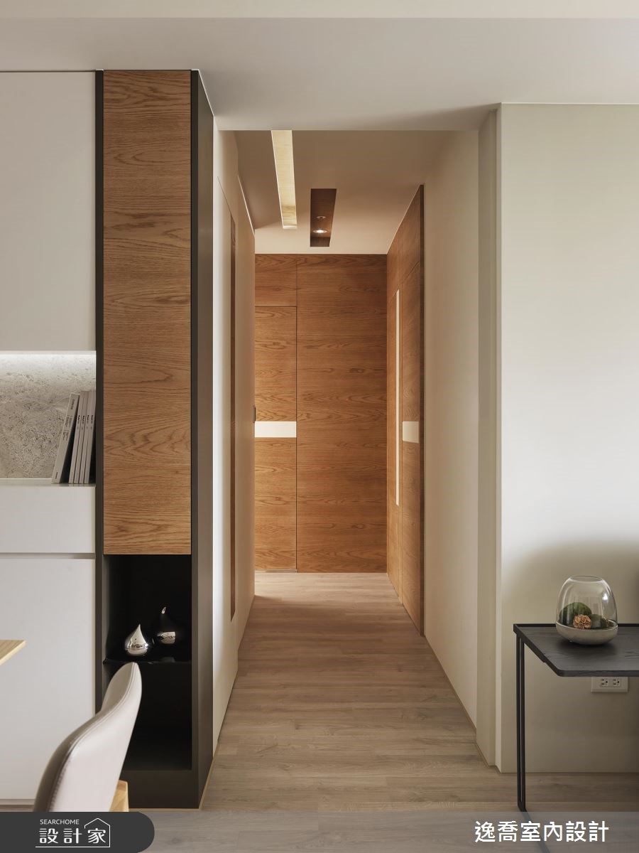 來自逸喬室內設計的35坪現代風住宅案,屋主一家人共有1位大人,是一間單層新成屋(5年以下)的三房格局,設計師藉由建材以乳膠漆、石英磚/拋光石英磚、不鏽鋼、鐵件、灰鏡、木作貼皮、木百葉、繃布、噴漆、石塑地板的搭配應用,實現一家人的理想生活。