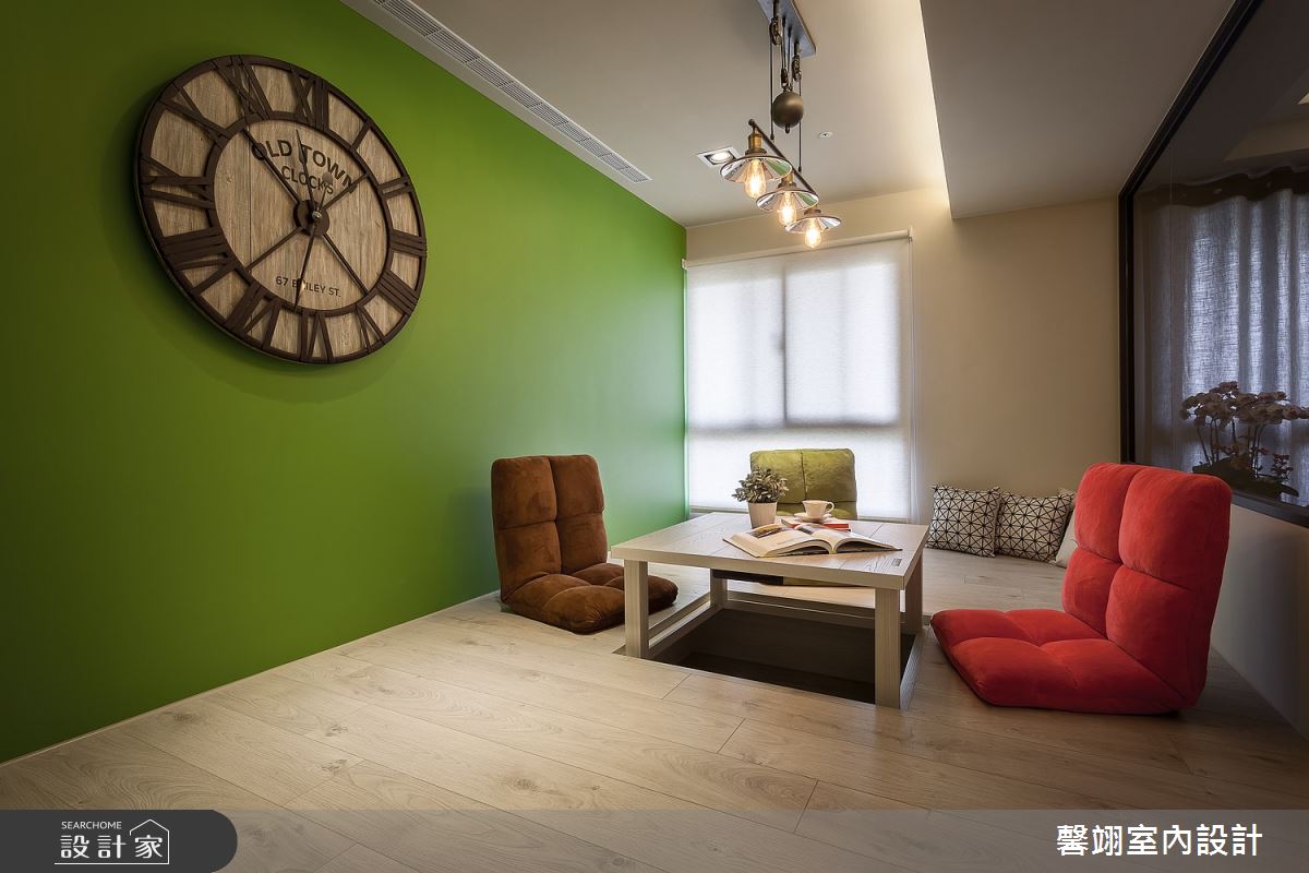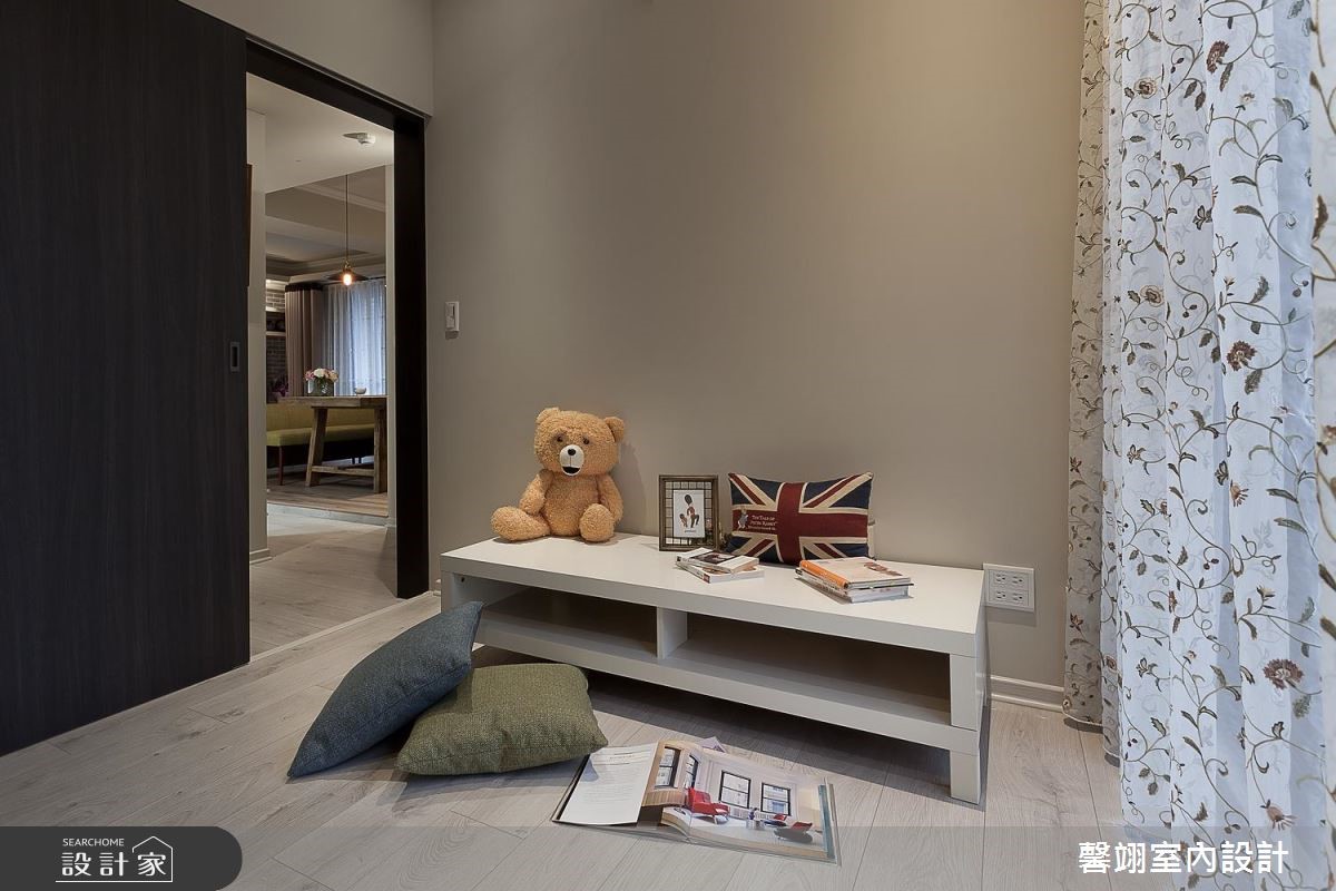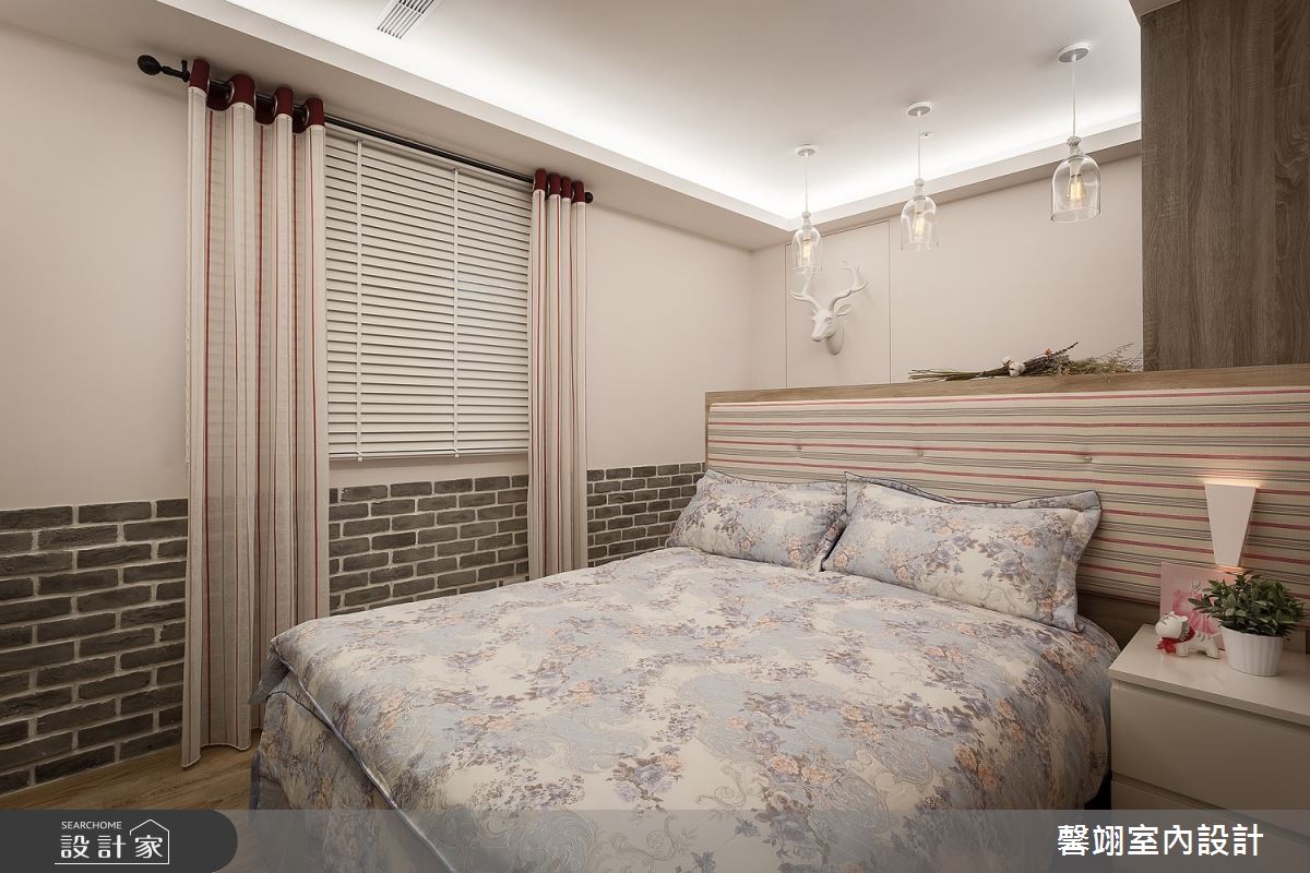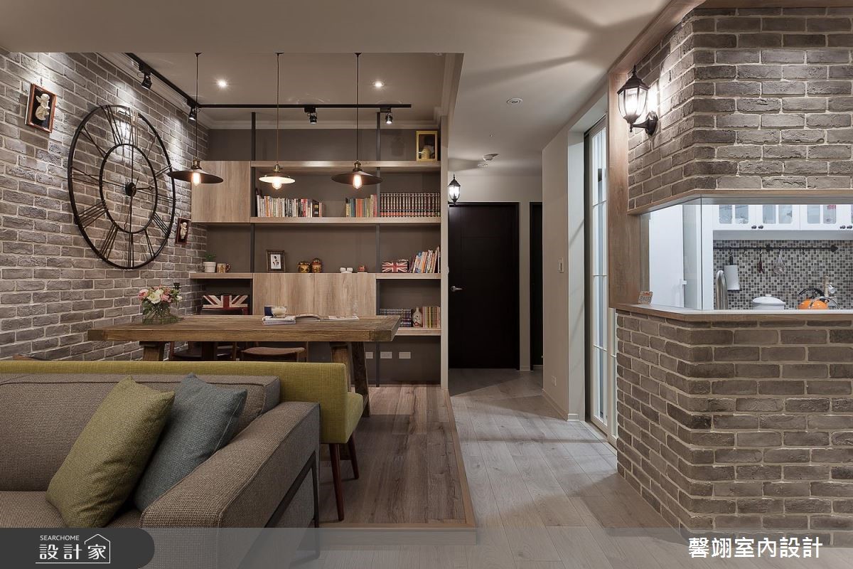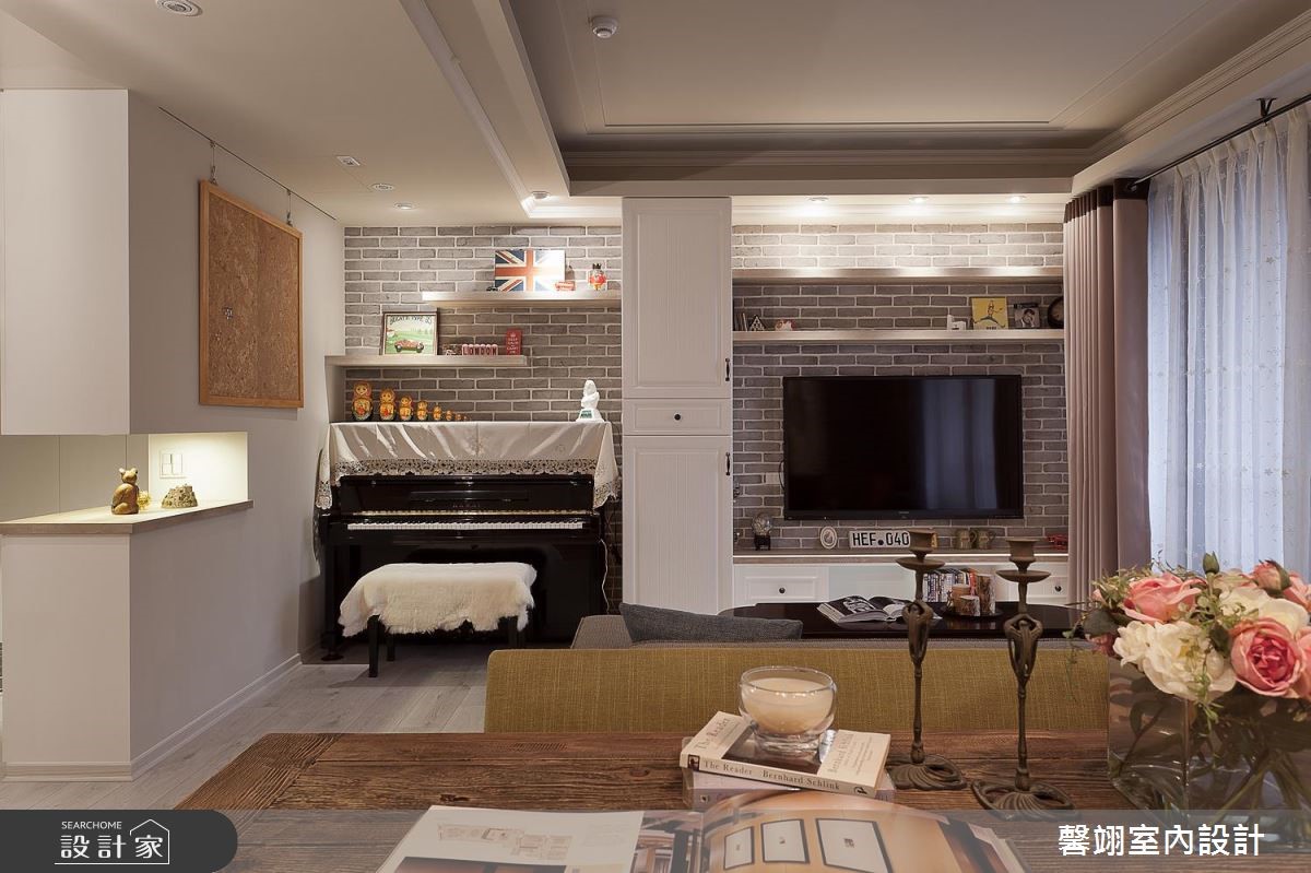 馨翊室內裝修設計以彩色文化石、進口壁紙、鄉村風門板、超耐磨木地板、仿木紋美耐板、拉鍊窗簾的搭配應用,呈現鄉村風居家氛圍,將此間13坪、兩房、單層、新成屋(5年以下)打造成舒適愜意的家庭空間,完成1位大人全家人的夢想之居。