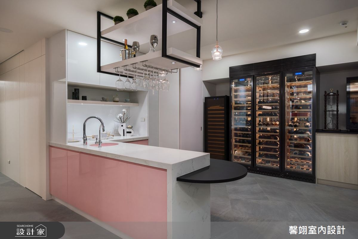 馨翊室內裝修設計以油漆、乳膠漆、烤漆、大理石、磁磚、spc石塑木地板、石英石、美耐板、黑玻、系統櫃的搭配應用,呈現現代風居家氛圍,將此間25坪、兩房、單層、新成屋(5年以下)打造成舒適愜意的家庭空間,完成2位大人全家人的夢想之居。