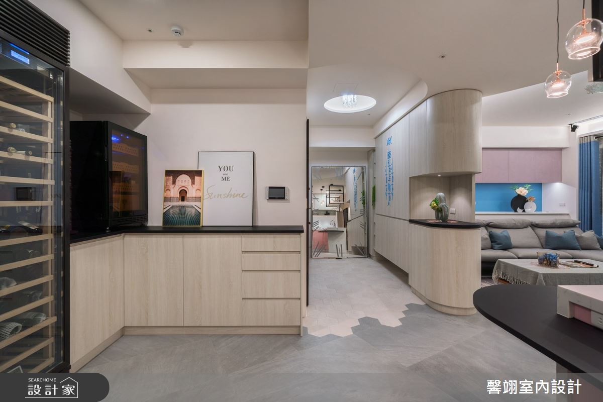 馨翊室內裝修設計以六角磚、花磚、超耐磨木地板、壓克力、系統板材、磁磚、烤玻、客製美耐板、壓克力漆、石英石的搭配應用,呈現北歐風居家氛圍,將此間39坪、四房、單層、新成屋(5年以下)打造成舒適愜意的家庭空間,完成全家人的夢想之居。