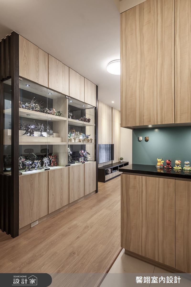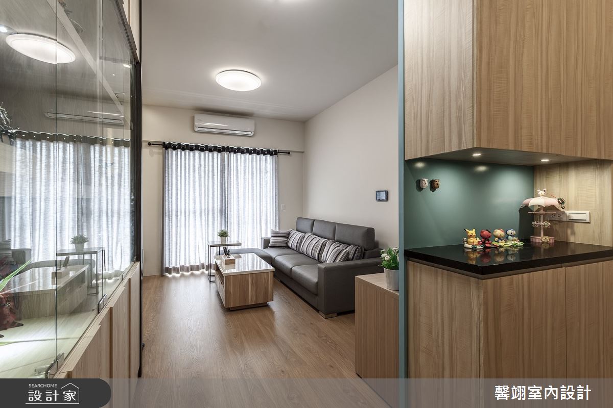 由馨翊室內裝修設計精心規劃的15坪三房住宅空間,家庭成員一共有1位大人。因應屋主需求,設計師運用現代風作為主軸,搭配超耐磨木地板、茶玻、系統板材、軌道燈、班傑明油漆、連動式鋁框拉門,打造全家人的夢想家居。