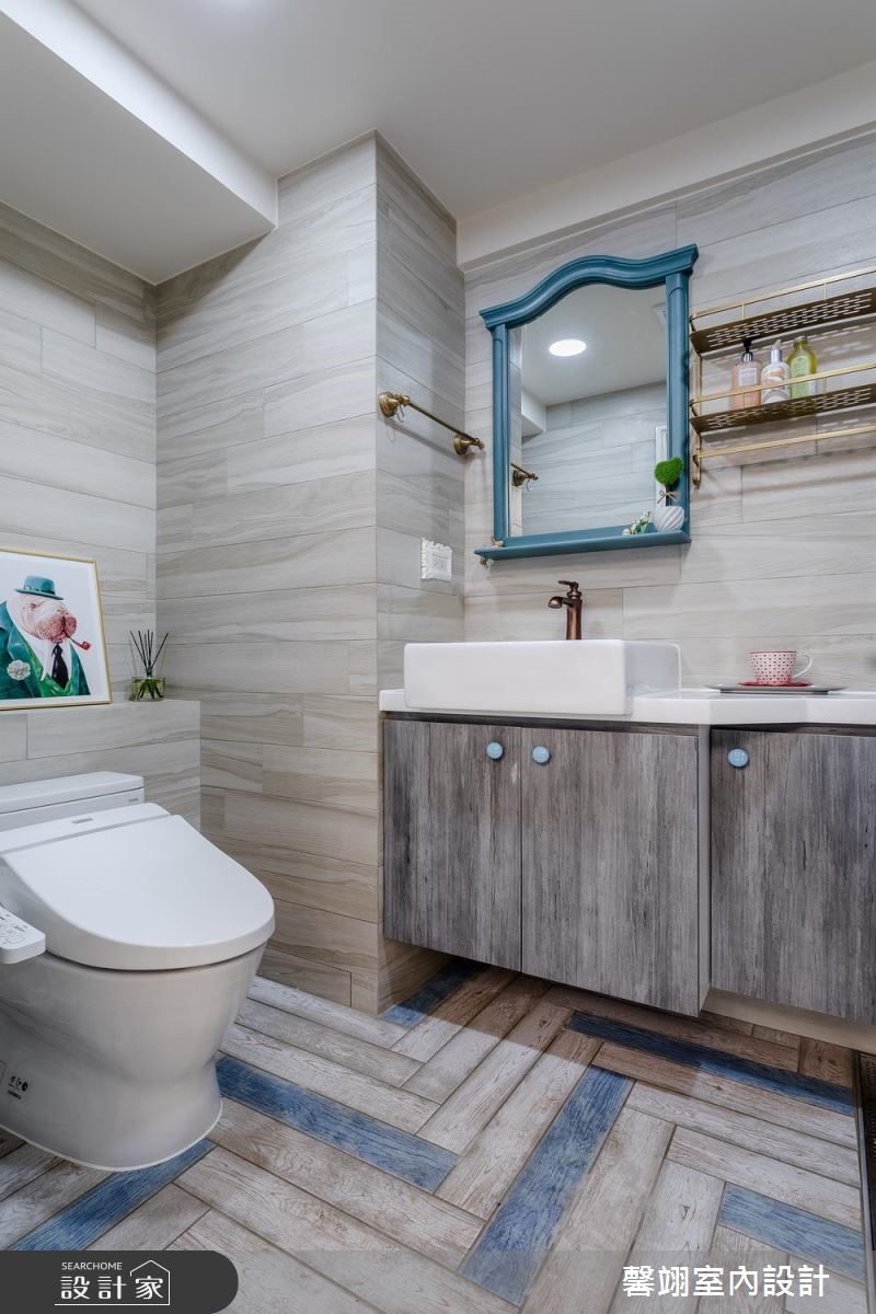 11坪鄉村風小宅女教官屋主,從網路上找到馨翊設計的作品且相當喜愛其風格,除了感受到設計師的認真外,意見相投的順暢溝通過程,讓屋主放心並全權交由設計師恣意發揮。首先利用鄉村風及繽紛多彩的建材元素,呼應屋主雜貨擺飾品的收藏,再透過格局的變革,打造鄰居也羨慕的寬敞生活感。 客廳太大,新增一房又太小,該怎麼重整小坪數的格局呢?設計師先變更廚房位置,再於公領域中心加入多用電視矮牆,打破既有格局範疇,讓回字型動線展開視野,帶來開放領域該有的寬敞。考量屋主愛喝咖啡、偶爾需要在家辦公的生活習慣,在電視牆後方予以木質備餐檯及向外延展的折疊平台,使用完收折即還原空間感。收納架適度的開放規劃,讓雜貨品收藏有了展示舞台,極具個人風格卻不顯繁複凌亂。 小編的最愛 清爽的藍牆搭配連貫的純白半牆線板,呈現屋主喜愛的繽紛氣氛,並運用多元建材,例如整體調性呼應的清甜感玄關花磚、浪漫雅致的圖騰式門片雕刻、廁所內穿插藍色調的人字拼,讓繽紛的色彩注入復古元素,讓精準的建材用料提升整室視覺層次及氛圍。