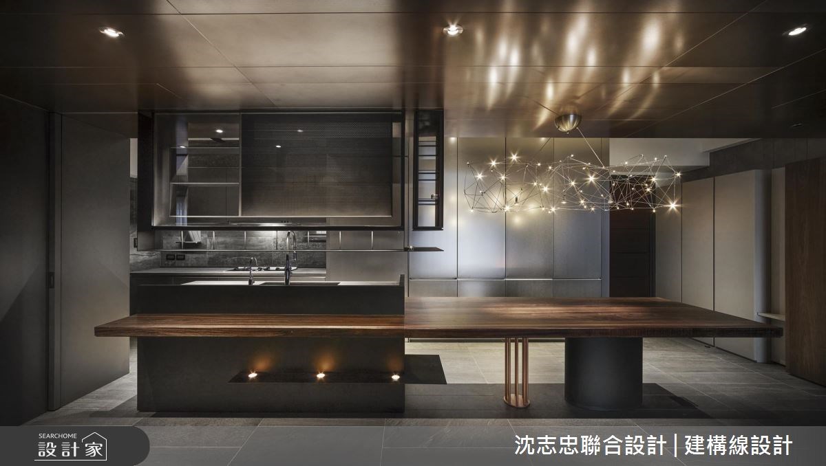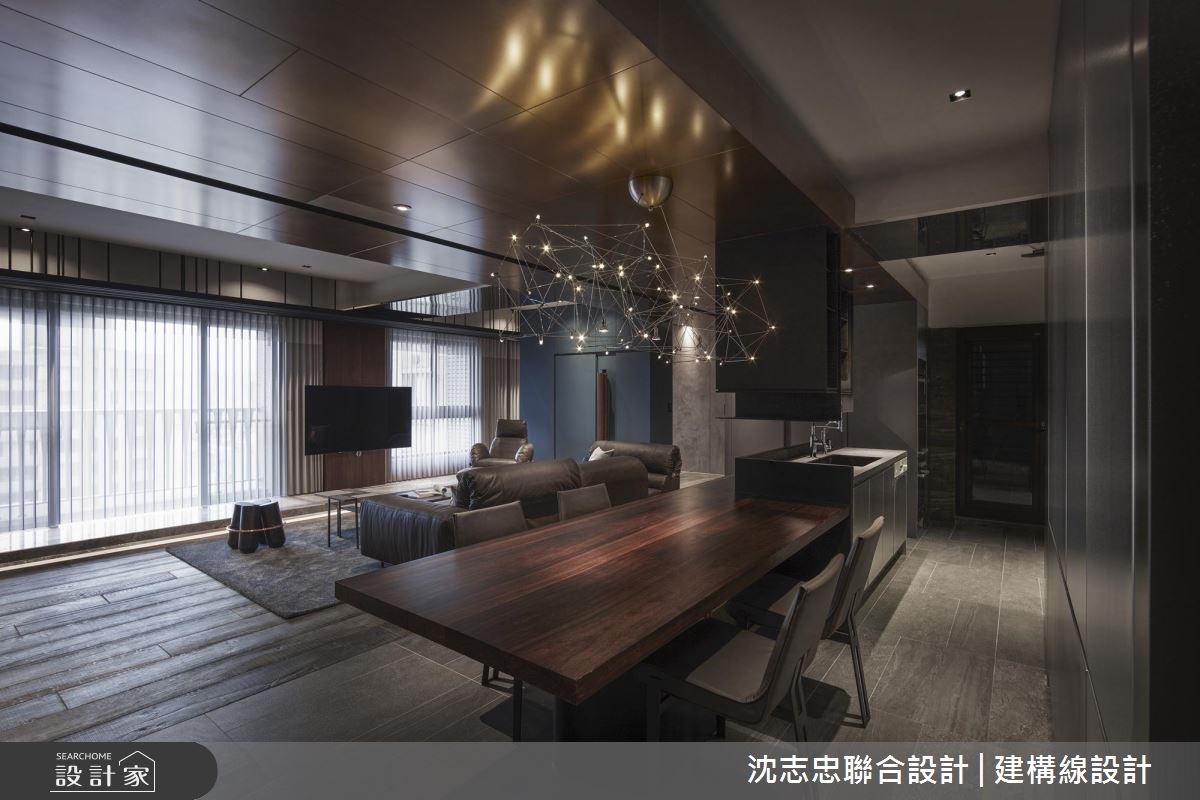 沈志忠聯合設計·建構線設計以盤多磨、特殊漆、鐵件、實木的搭配應用,呈現現代風居家氛圍,將此間55坪、一房、單層、新成屋(5年以下)打造成舒適愜意的家庭空間,完成全家人的夢想之居。