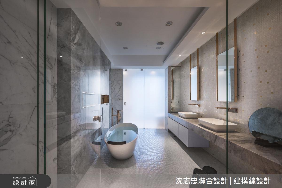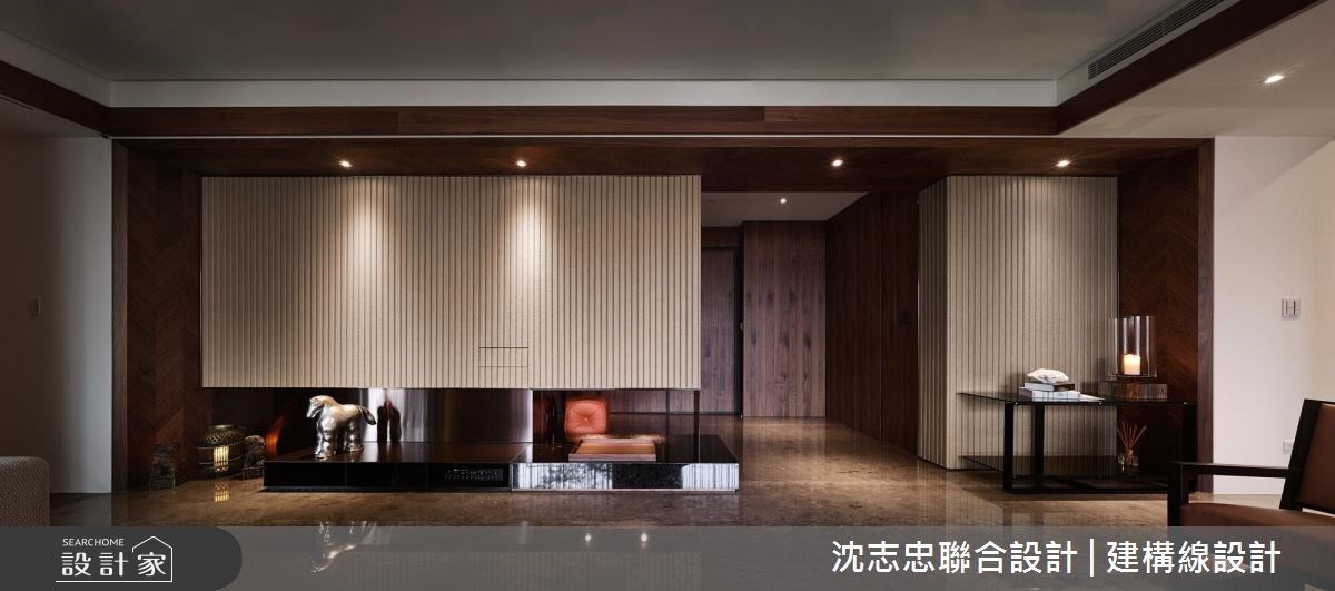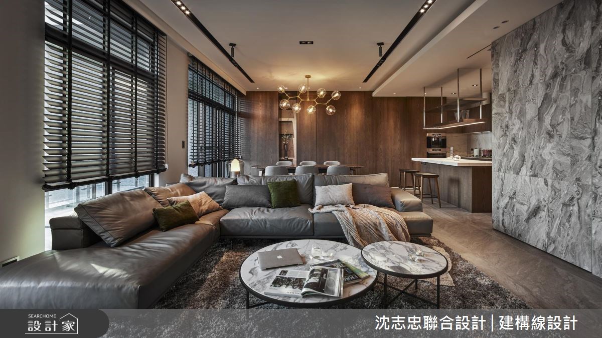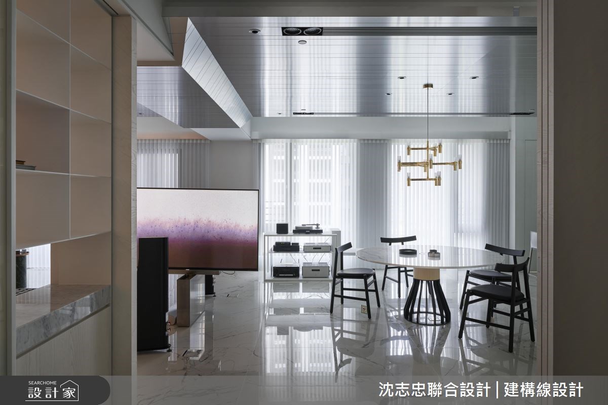 沈志忠聯合設計·建構線設計以大理石、油漆、木作貼皮、系統板材、鐵件的搭配應用,呈現現代風居家氛圍,將此間120坪、兩房、單層、新成屋(5年以下)打造成舒適愜意的家庭空間,完成全家人的夢想之居。