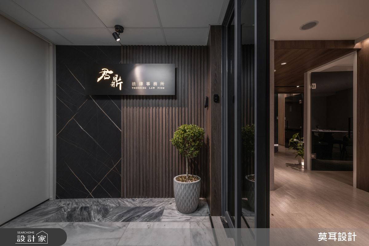莫耳設計以乳膠漆、壁紙、PVC地板、烤玻、系統板材、磁磚、人造石、軌道燈、黑玻的搭配應用,呈現現代風的風格氣息,將此間39坪老屋(31~40年)優雅詮釋成舒適愜意的商業空間。