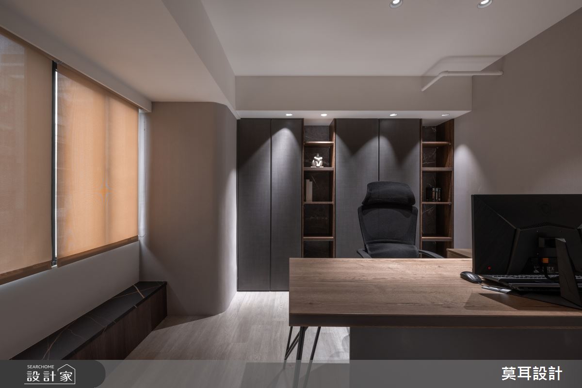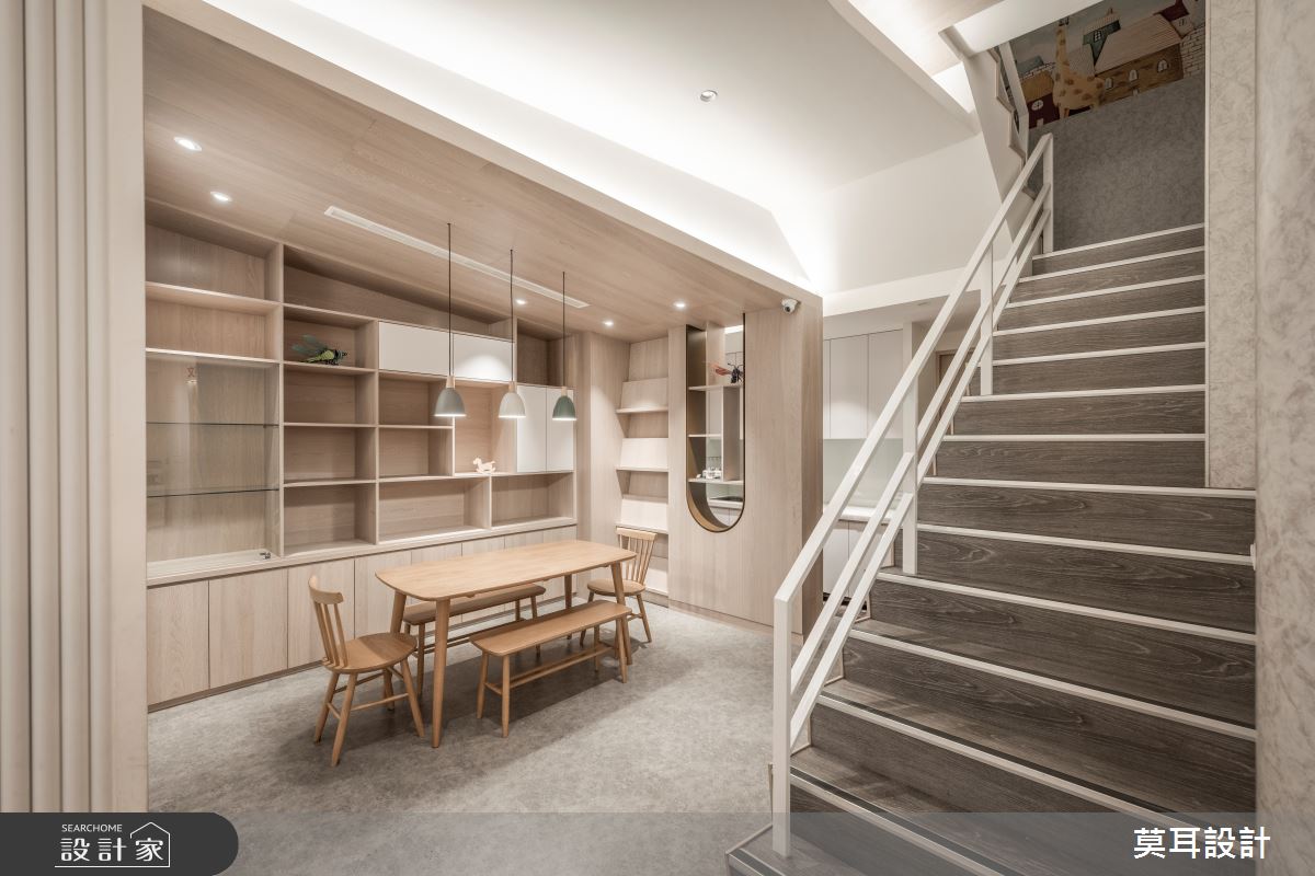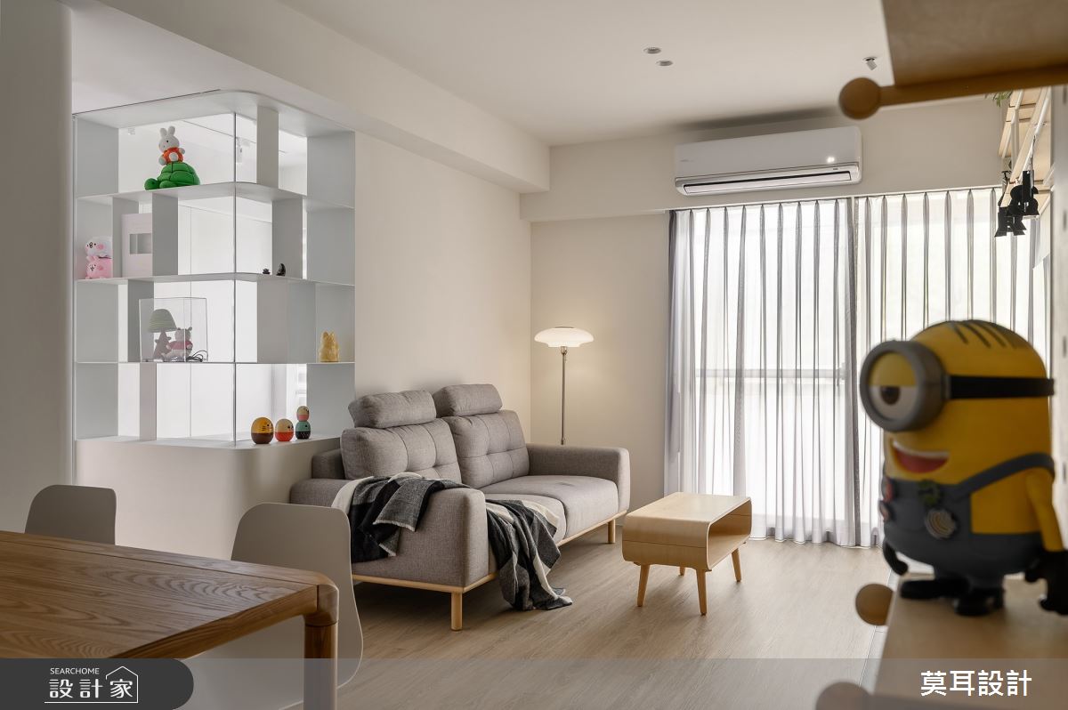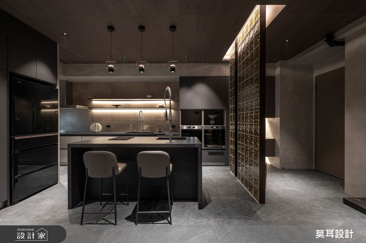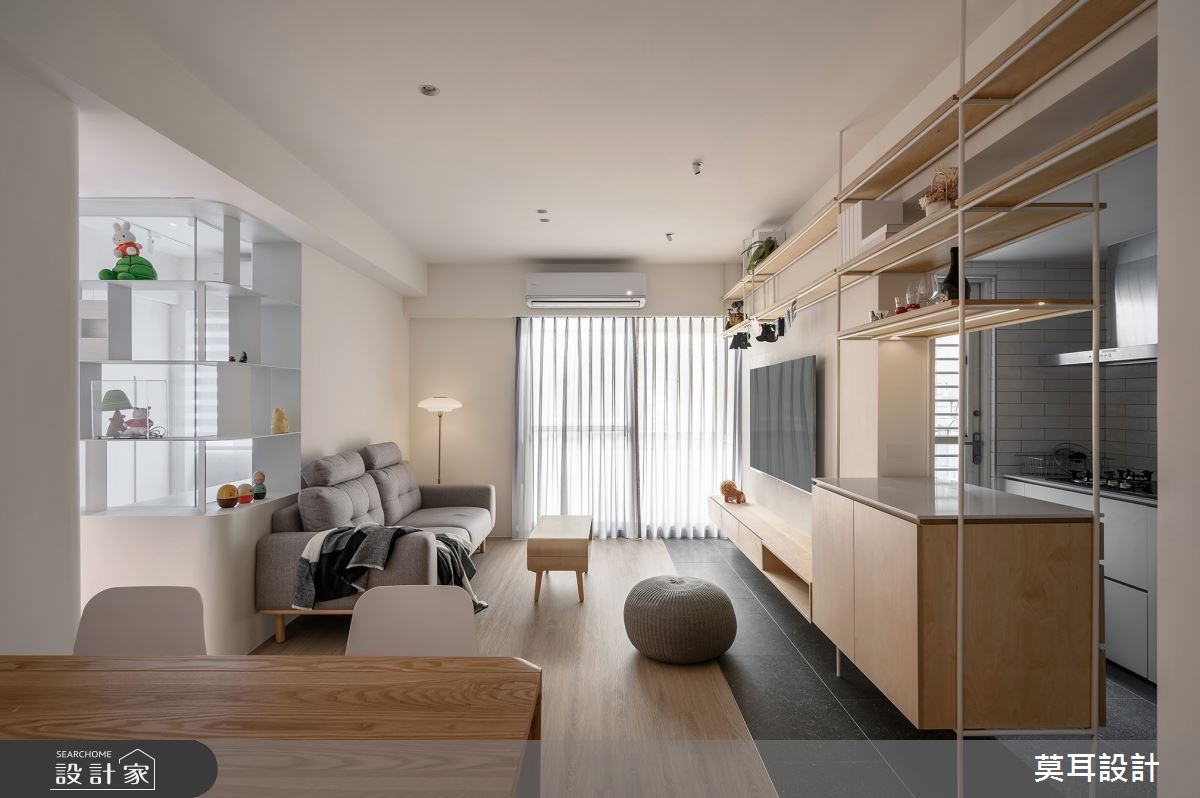 來自莫耳設計的35坪現代風住宅案,屋主一家人共有1位長輩,是一間新成屋(5年以下)的兩房格局,設計師藉由建材以乳膠漆、盤多磨、不鏽鋼、鐵件、茶玻、鋼刷木皮、系統板材、樂土、軌道燈、皮革、石材的搭配應用,實現一家人的理想生活。