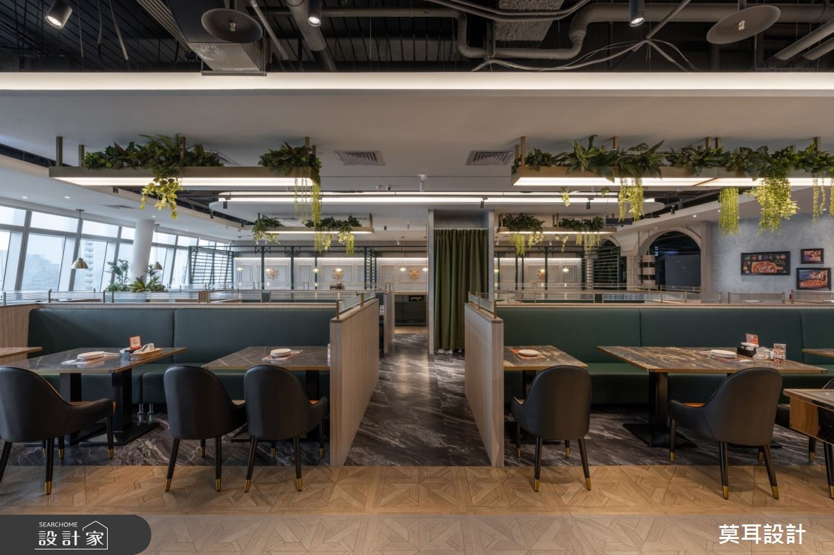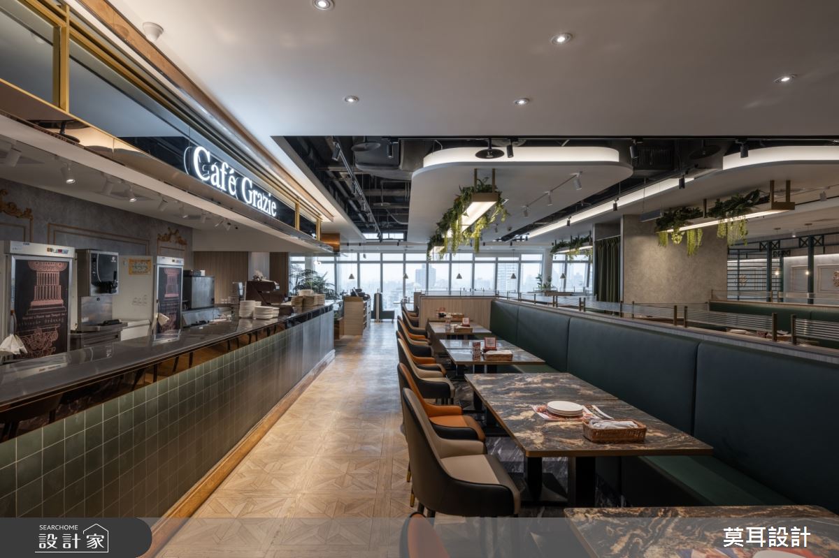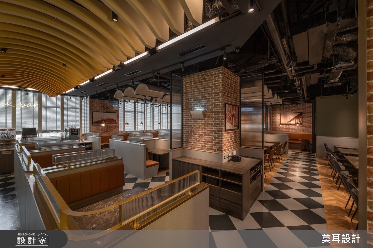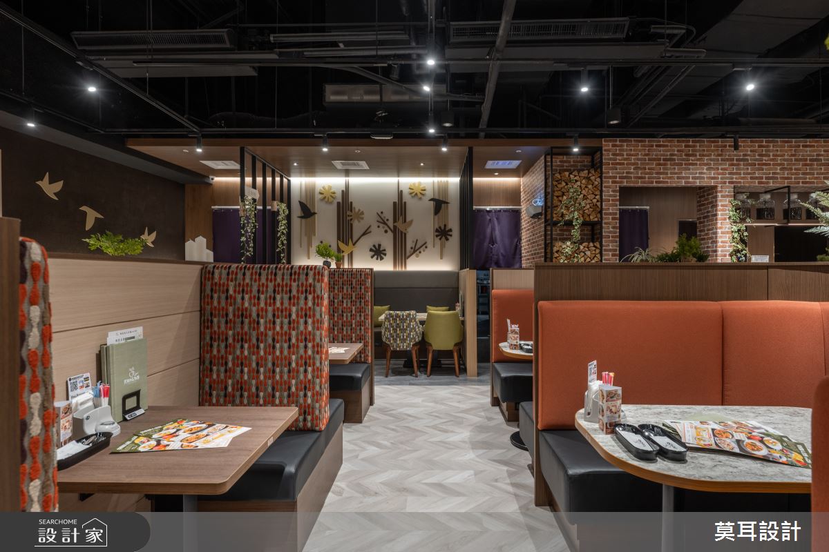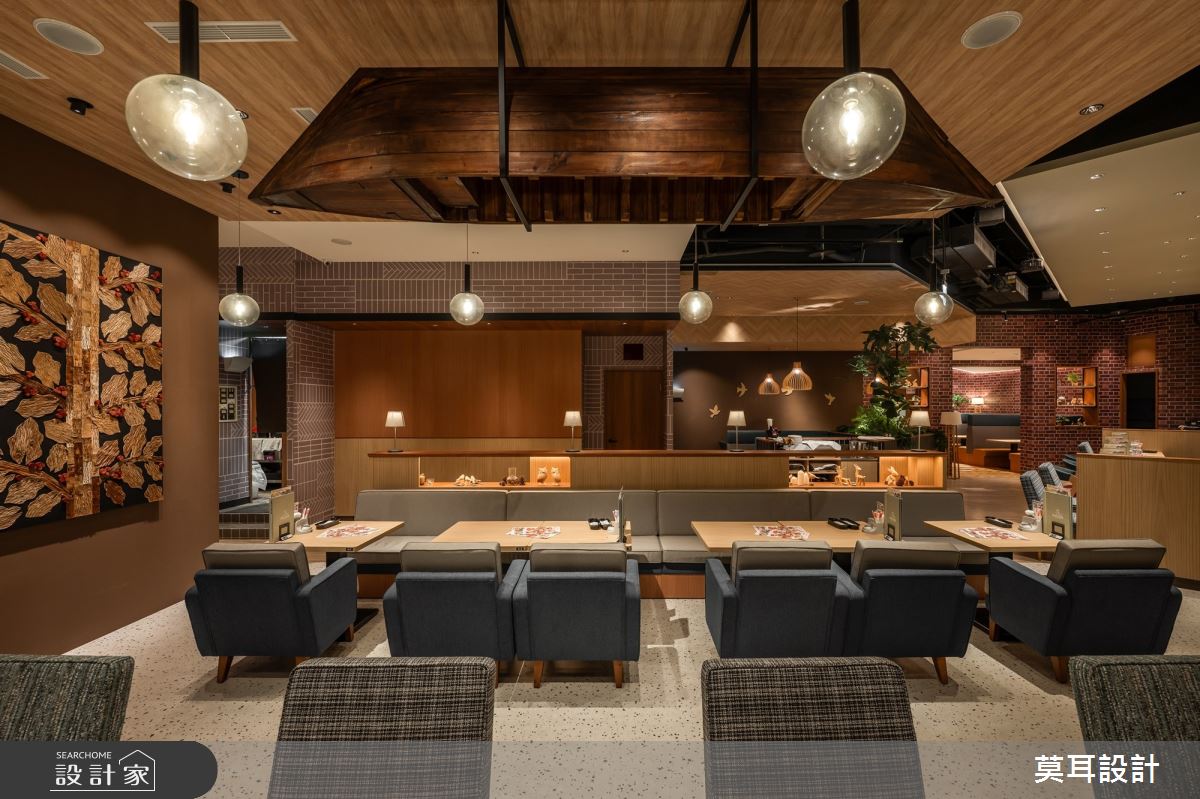 由莫耳設計精心規劃的123坪商業空間,因應業主需求,設計師運用混搭風作為主軸,搭配建材美耐板、皮革、塗料、布料、磁磚、PVC地磚、壁紙、實木、金屬,打造精緻品味的空間氛圍。