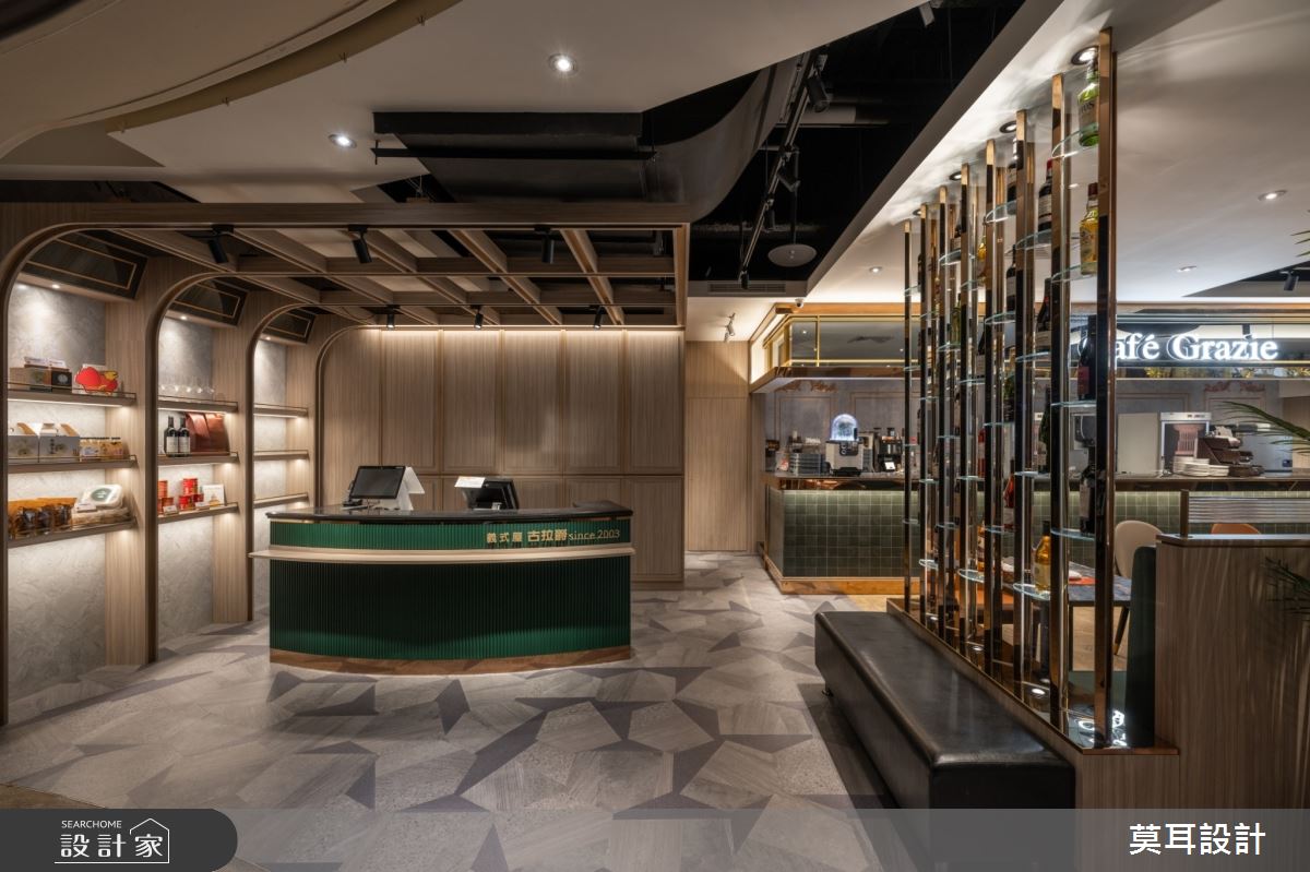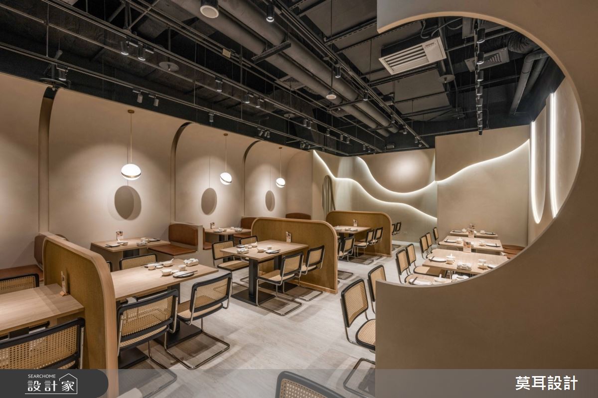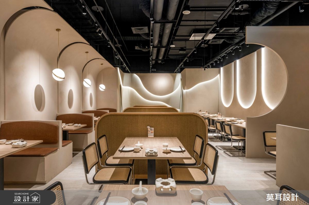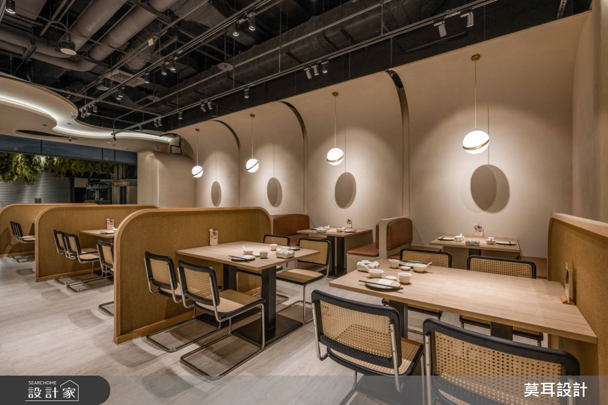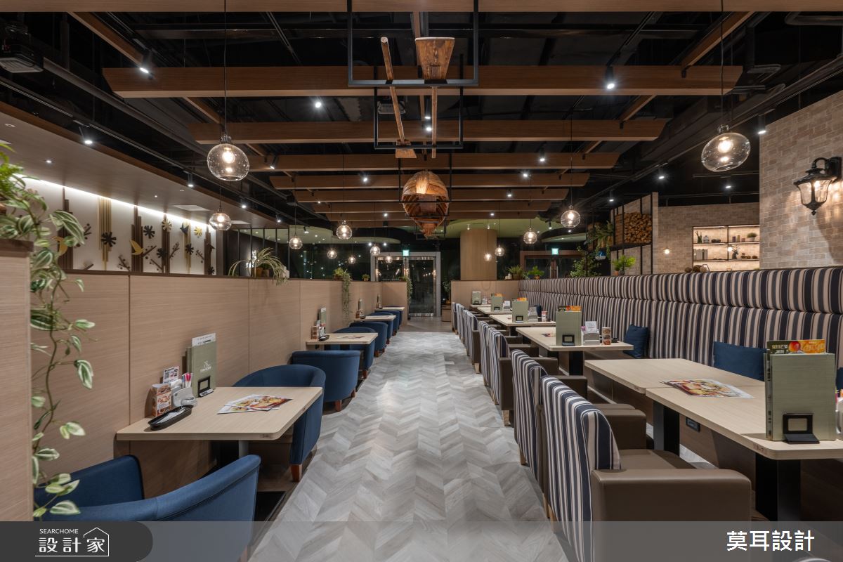 由莫耳設計精心規劃的123坪商業空間,因應業主需求,設計師運用混搭風作為主軸,搭配建材美耐板、皮革、塗料、布料、磁磚、PVC地磚、壁紙、實木、金屬,打造精緻品味的空間氛圍。