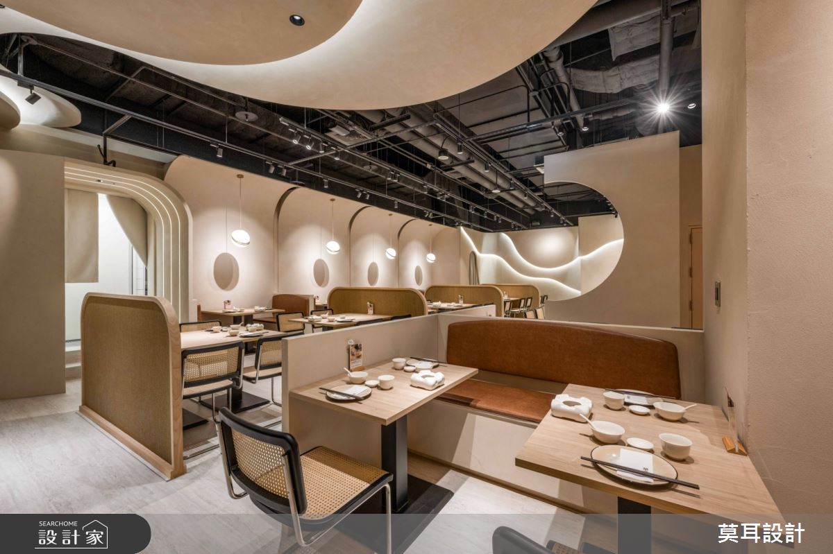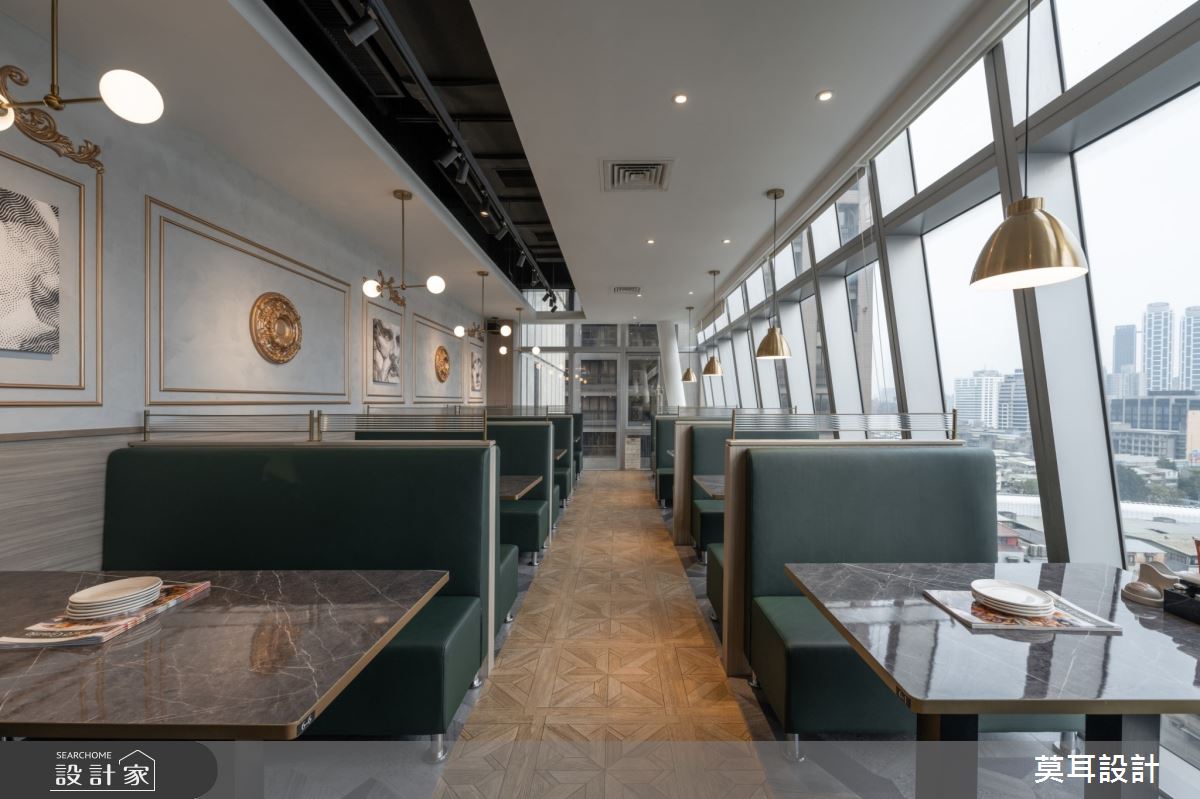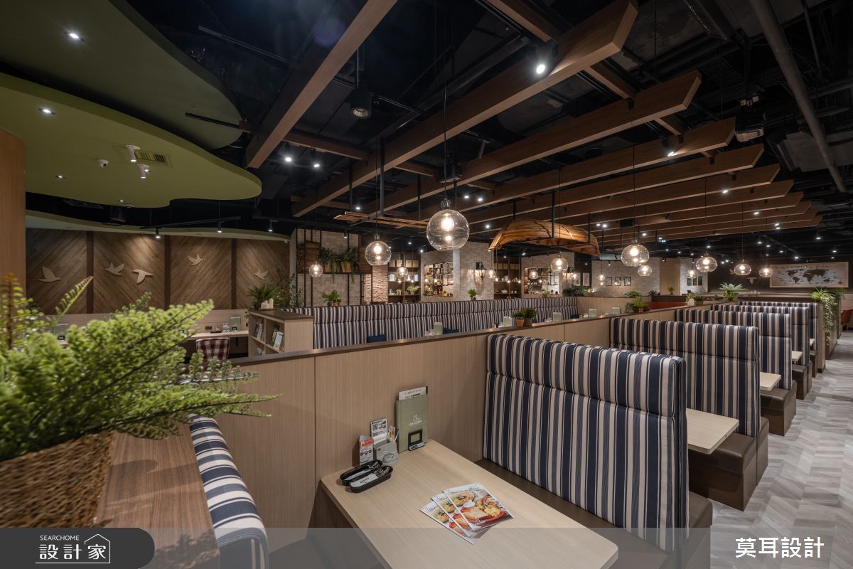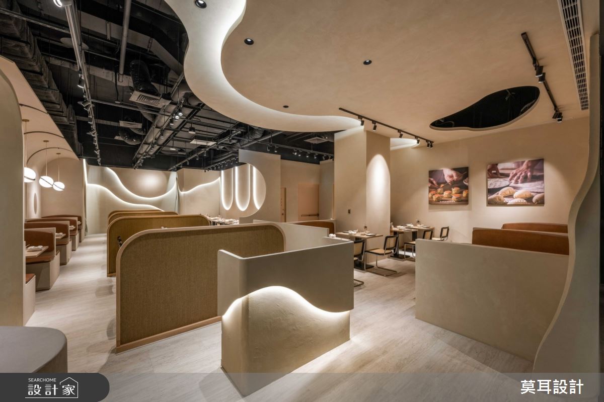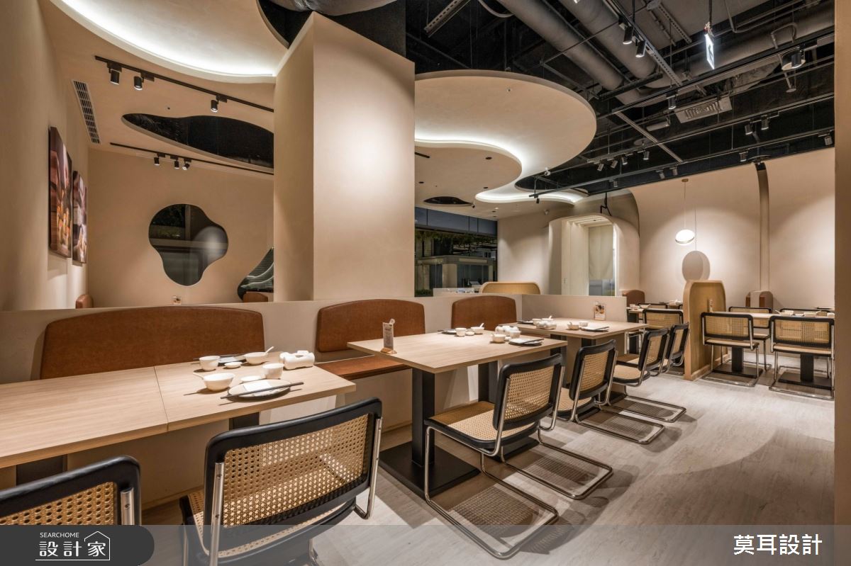 由莫耳設計精心規劃的123坪商業空間,因應業主需求,設計師運用混搭風作為主軸,搭配建材美耐板、皮革、塗料、布料、磁磚、PVC地磚、壁紙、實木、金屬,打造精緻品味的空間氛圍。