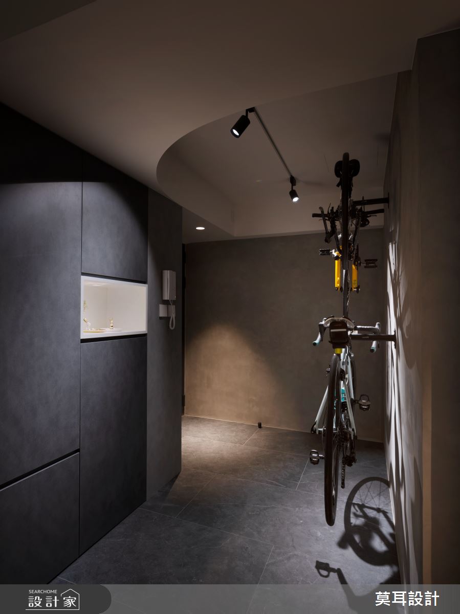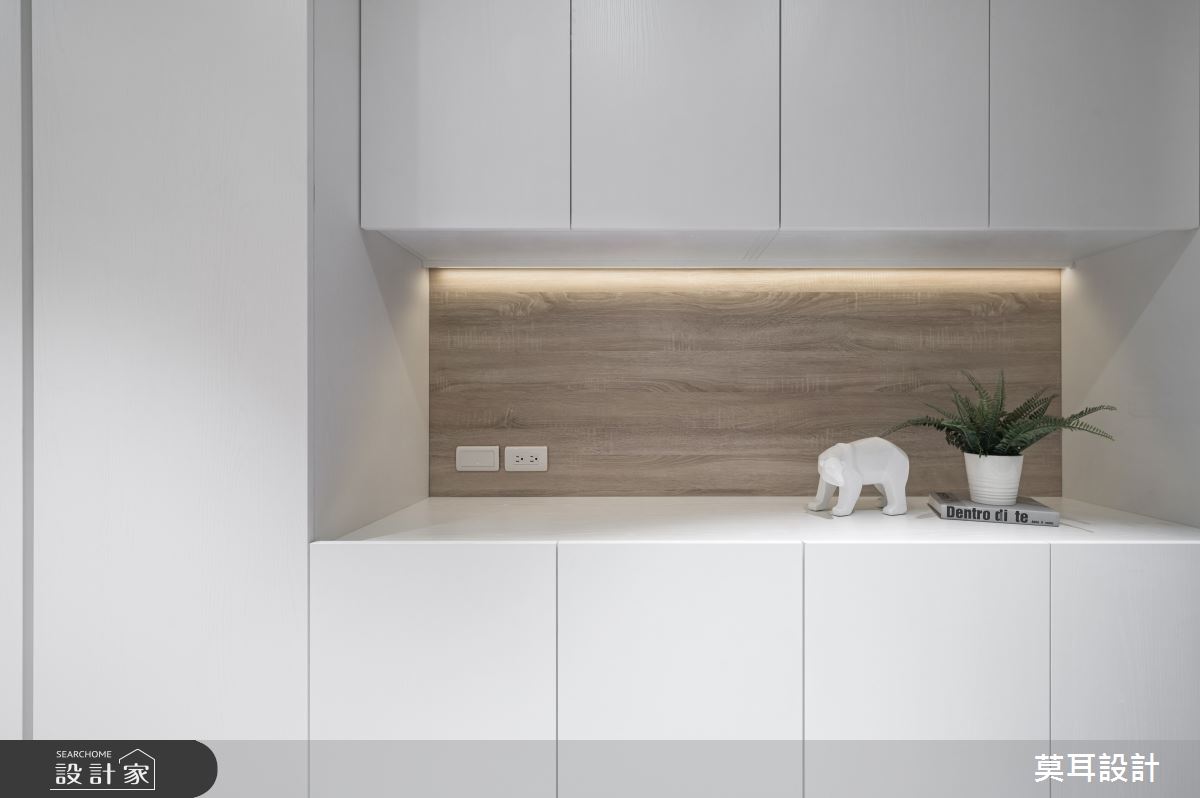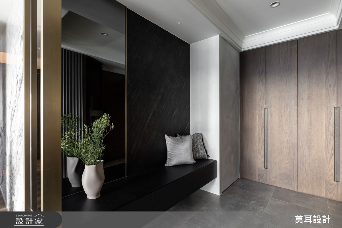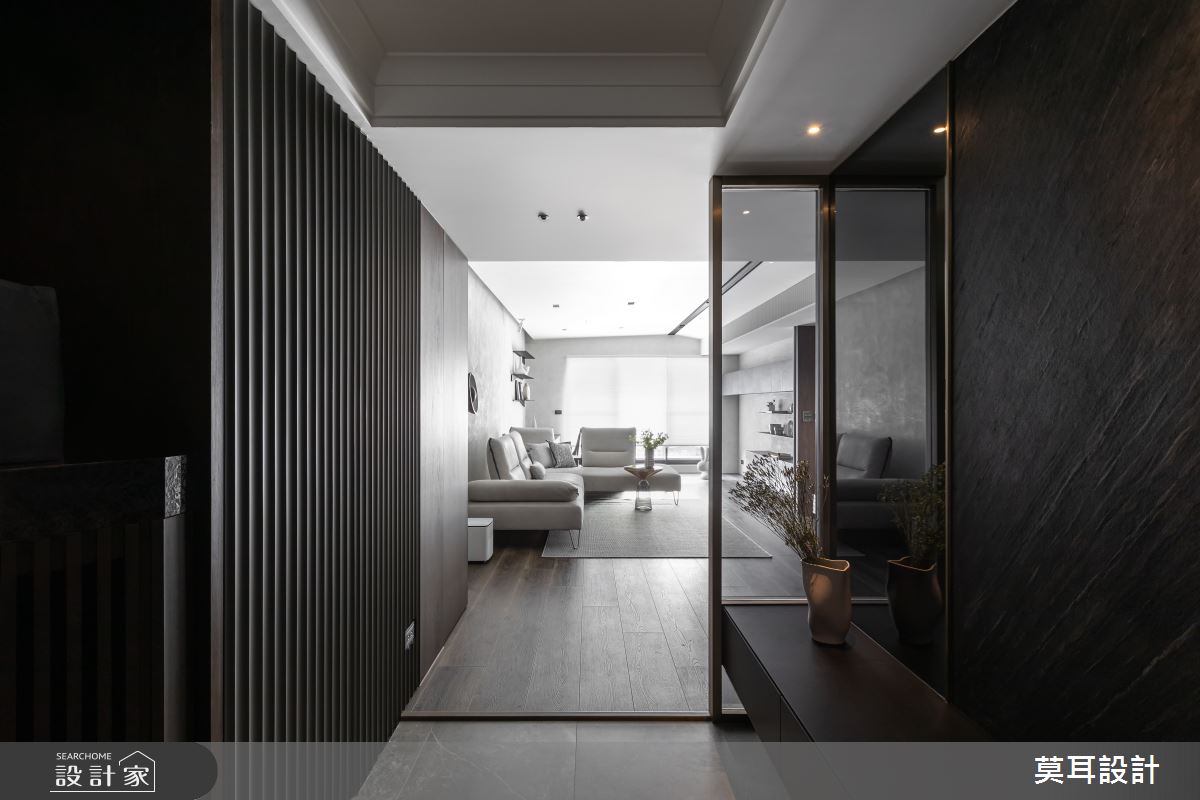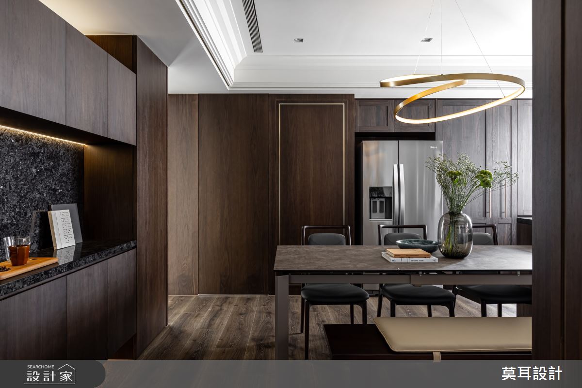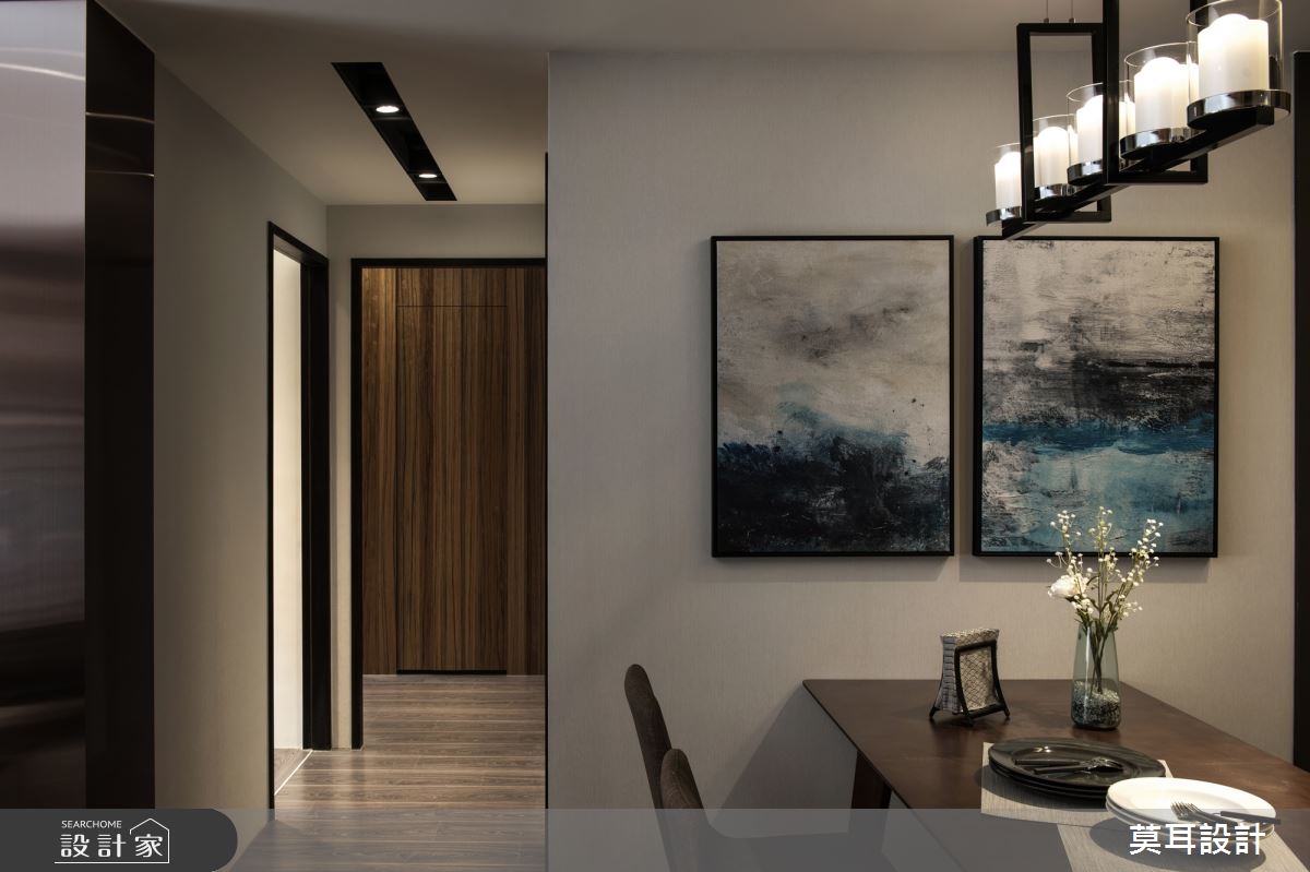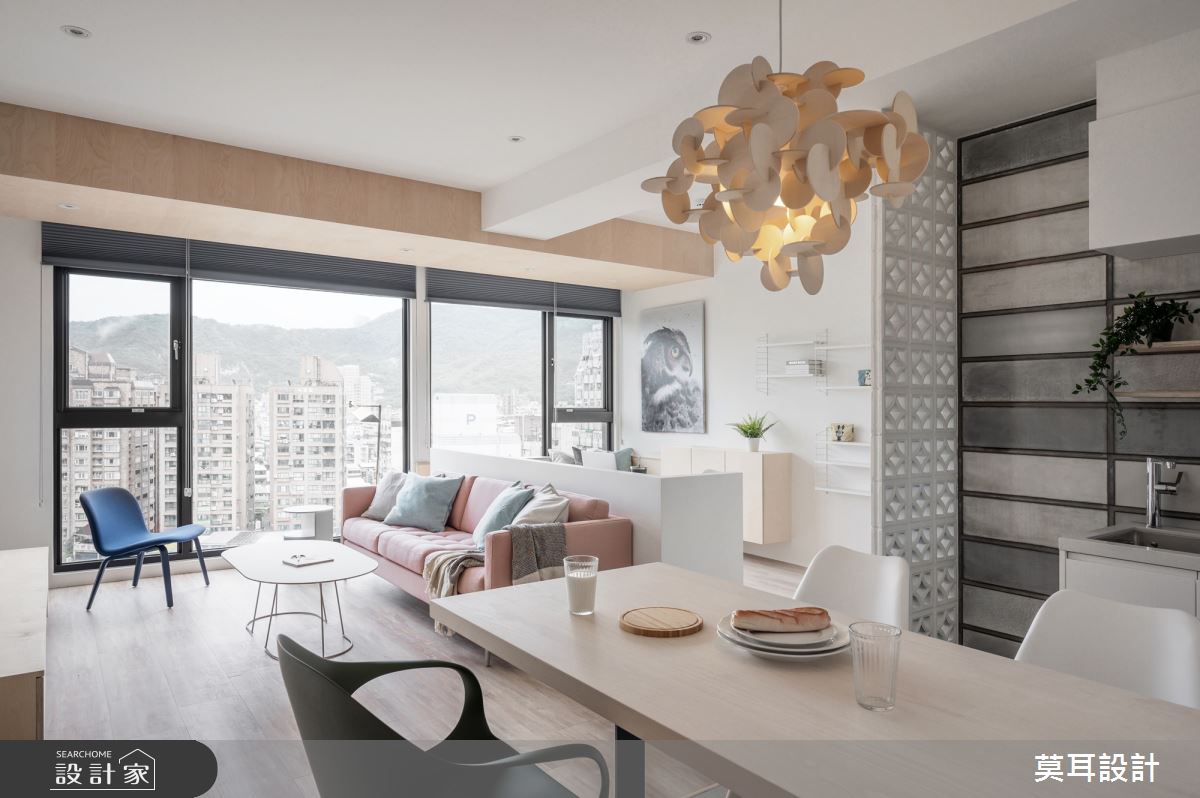來自莫耳設計的35坪現代風住宅案,屋主一家人共有1位長輩,是一間新成屋(5年以下)的兩房格局,設計師藉由建材以乳膠漆、盤多磨、不鏽鋼、鐵件、茶玻、鋼刷木皮、系統板材、樂土、軌道燈、皮革、石材的搭配應用,實現一家人的理想生活。