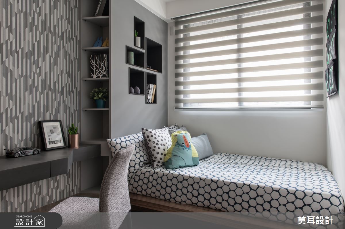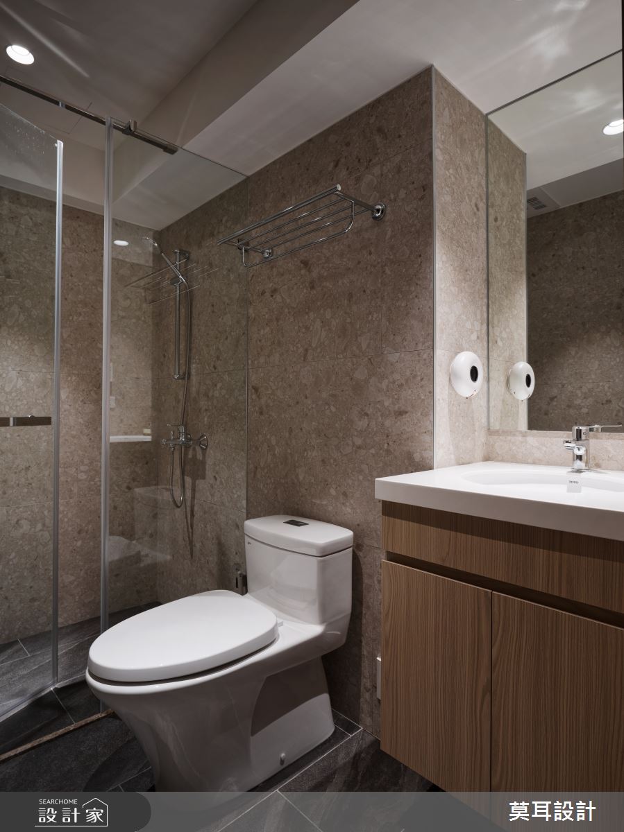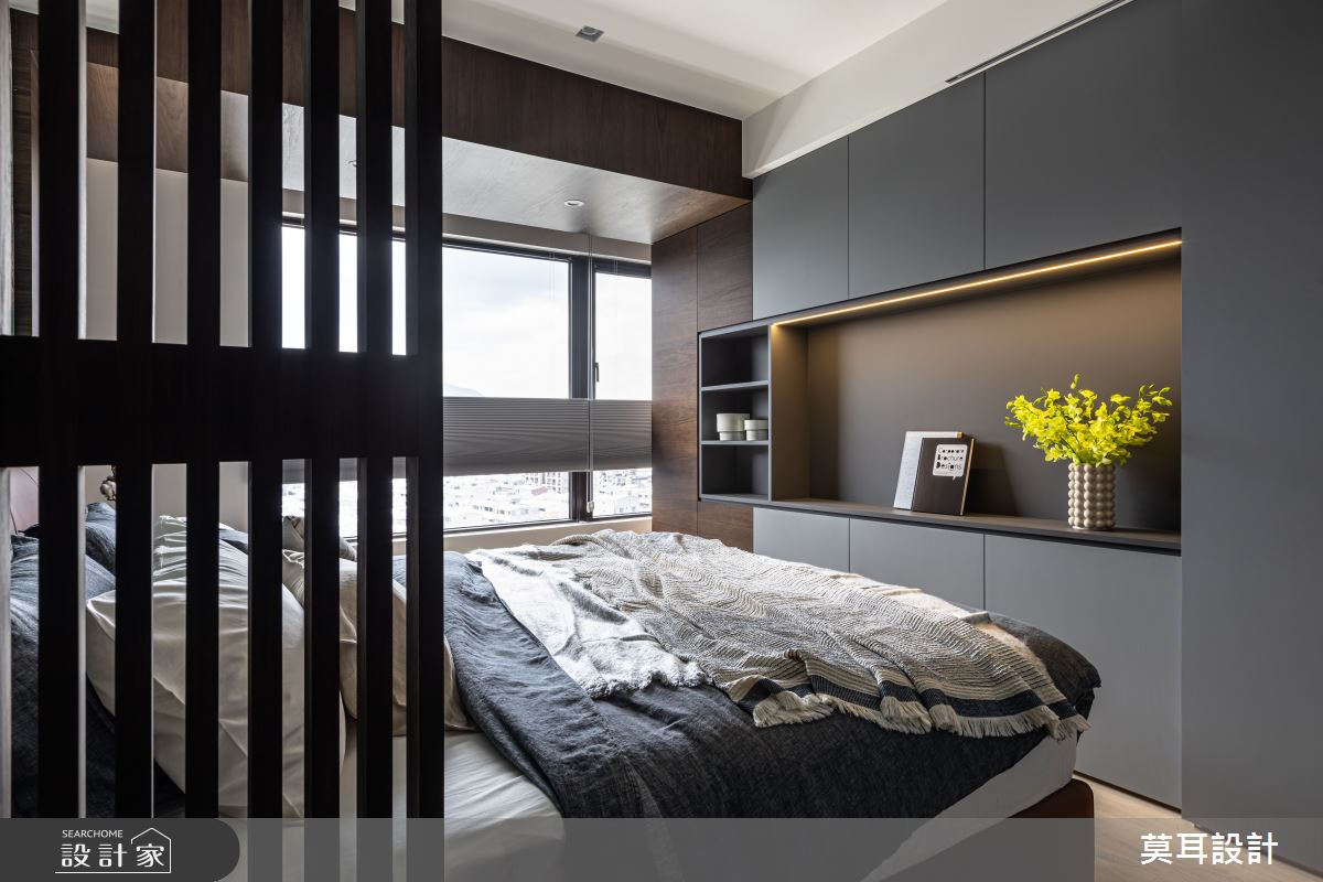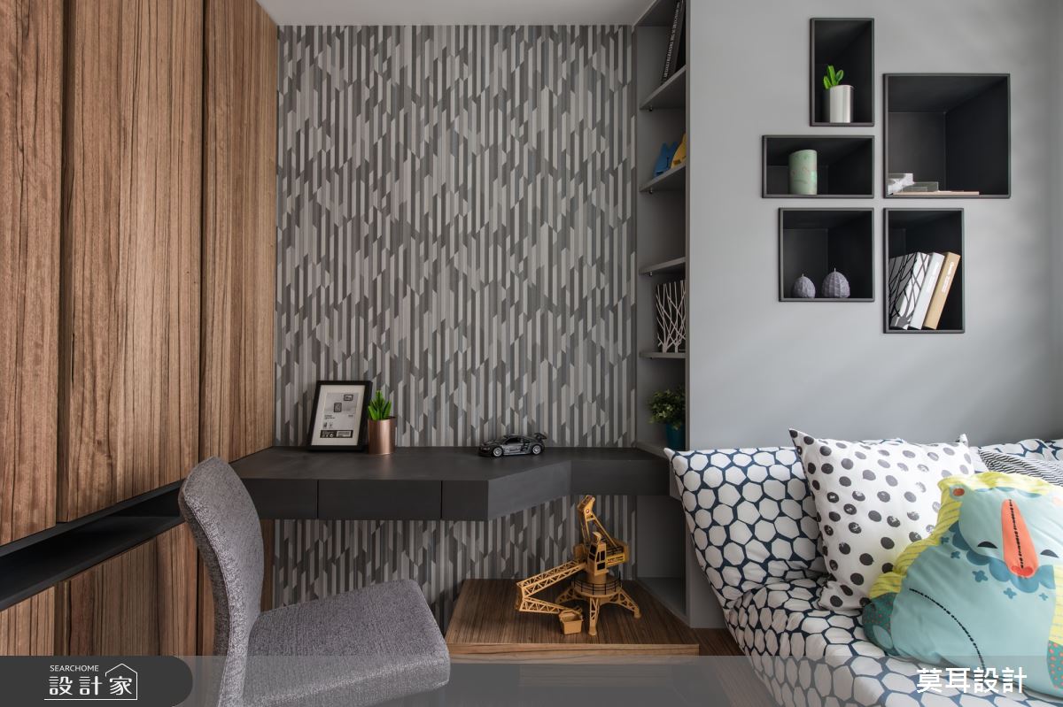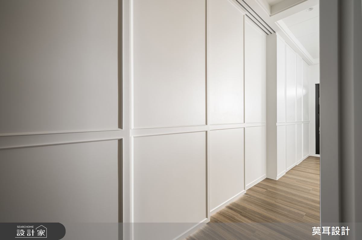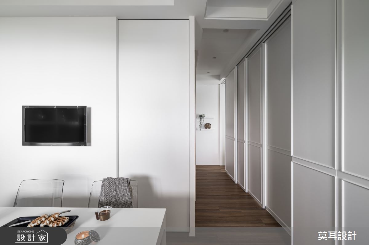 來自莫耳設計的35坪現代風住宅案,屋主一家人共有1位長輩,是一間新成屋(5年以下)的兩房格局,設計師藉由建材以乳膠漆、盤多磨、不鏽鋼、鐵件、茶玻、鋼刷木皮、系統板材、樂土、軌道燈、皮革、石材的搭配應用,實現一家人的理想生活。