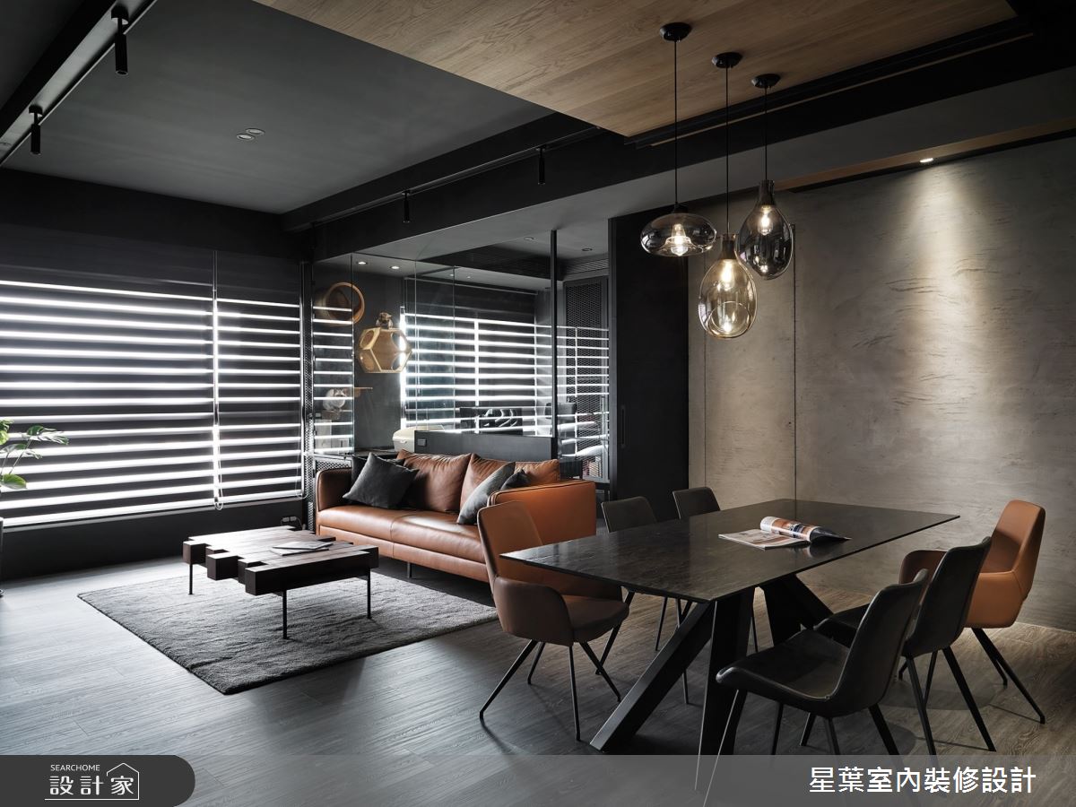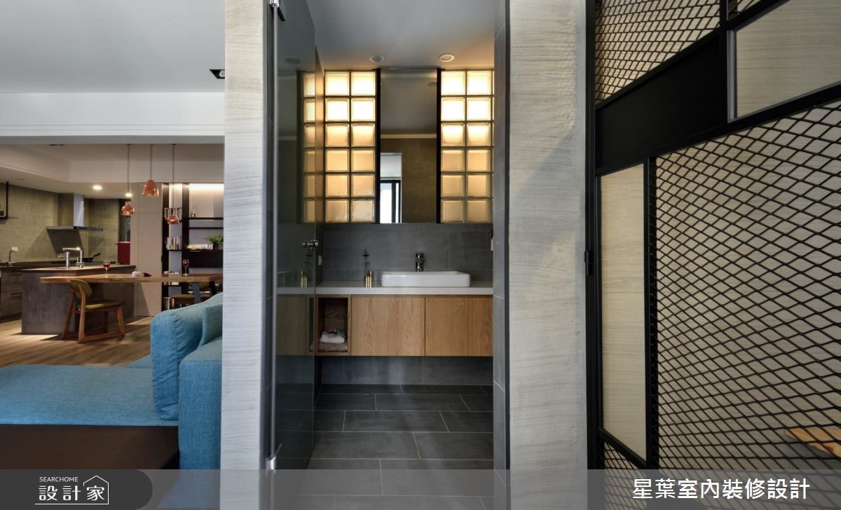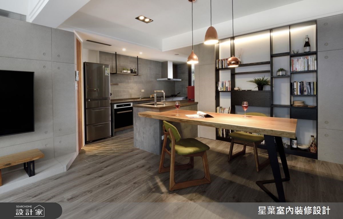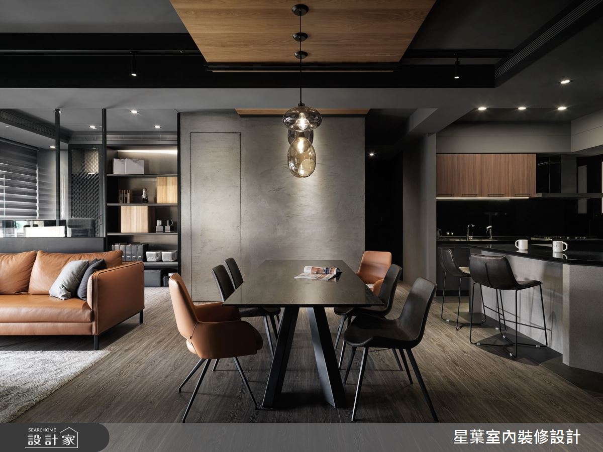 星葉設計以鐵件、鐵網、烤漆、手抓水泥牆面、霧面石英磚的搭配應用,呈現工業風居家氛圍,將此間40坪、三房、單層、新成屋(5年以下)打造成舒適愜意的家庭空間,完成2位大人全家人的夢想之居。