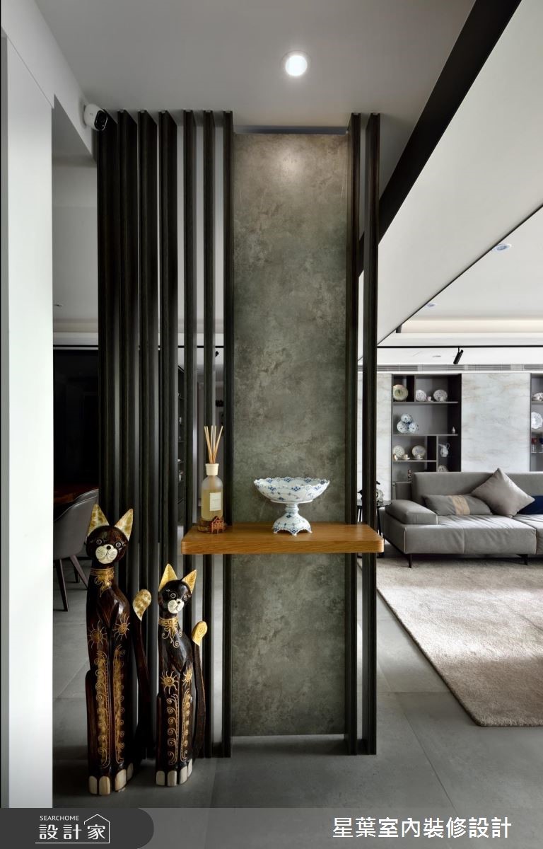 40 坪休閒風樓中樓,設計師透過開放動線營造空間感,且融合機能與美學,建構出優雅的生活環境,落實一家人的夢想藍圖,快跟著小編一起來看看吧! 步入玄關,設計師讓屏風採格柵型式呈現,既疏通了入內動線,也維持光線的通透,並讓此道格柵貫穿玄關及樓梯間,達成場域界定作用,使入口視野瞬間寬闊無阻;空間整體則挹注沉穩灰階,營造安定氛圍,搭配著彩色抱枕、裝飾畫作跳出色彩,演繹優雅不失活潑的生動氣氛,同時透過電視牆配置,拉出與餐廳之間的開放動線,締造場域之間的自由包容性,且巧妙於天花作出造型,以溫潤的木作條與餐廳的吊燈相互呼應,點亮休閒溫暖的氣息,旁側立面更規劃小巧的書櫃,使餐桌也可兼具閱讀書桌的功能;寢臥內,於床頭作出適當的比例切割,運用木質框塑立體表情,佐以典雅的配色、細緻的素材等,傳達不落於俗的獨特品味! 小編的最愛 玄關區域巧妙加入鏡面材質,不僅提供穿衣鏡功能,也在映射中達成放大效果,讓居宅視野更為延伸遼闊!