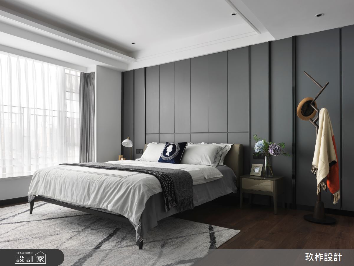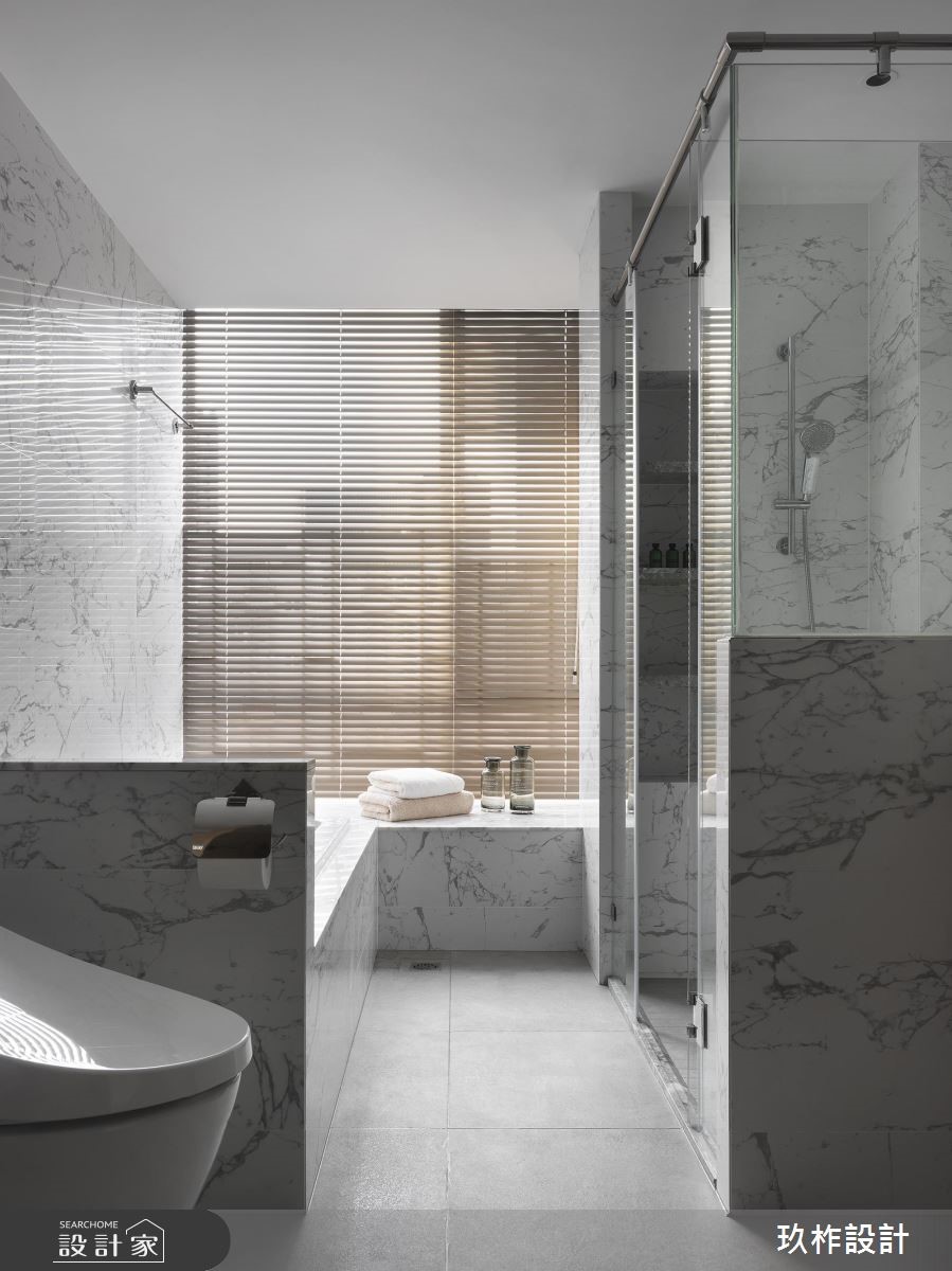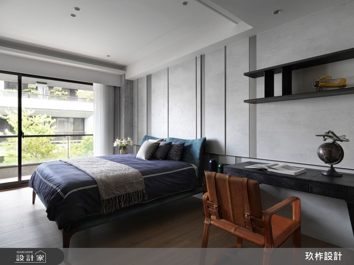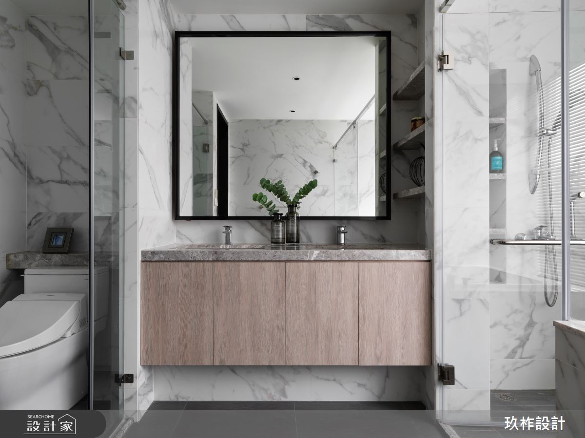 空間以大量灰白色作為主軸,搭配溫潤木質地板,勾勒出俐落閒適感,並給予現代簡約的元素,不做過多的複雜裝飾,於公領域大量採用大理石材,與溫潤木質地板形成冷暖交融,主牆大理石更勾勒獨特的分割線條,讓牆體更具立體層次,客廳沙發也特地挑選加大尺寸,瞬間提升廳區的大器感;廚房區域,則配置玻璃拉門促成光線穿透,並顧阻隔油煙功能,讓空間使用更具彈性;主臥房,承襲著輕盈的灰白調性,並沿牆面配置閱讀木桌,替房間挹注更多的使用功能。