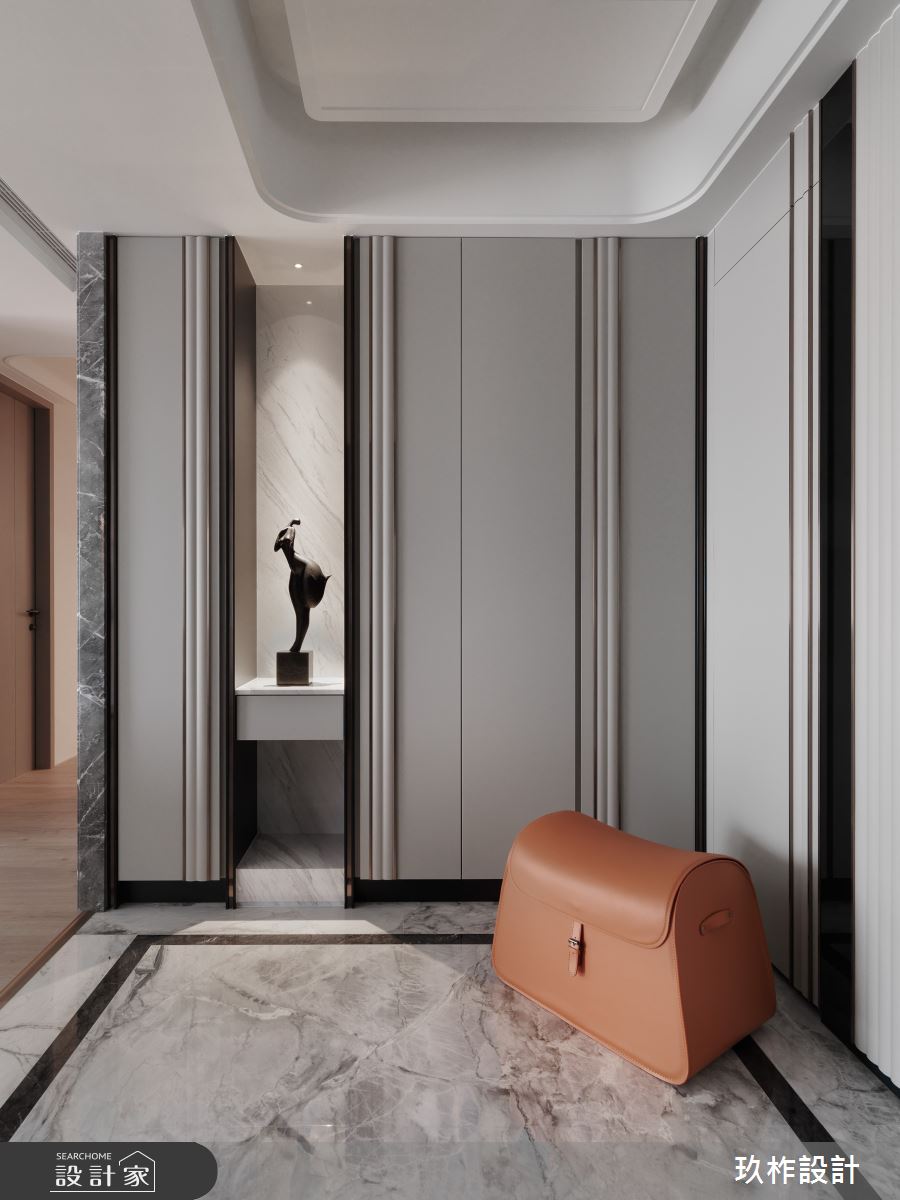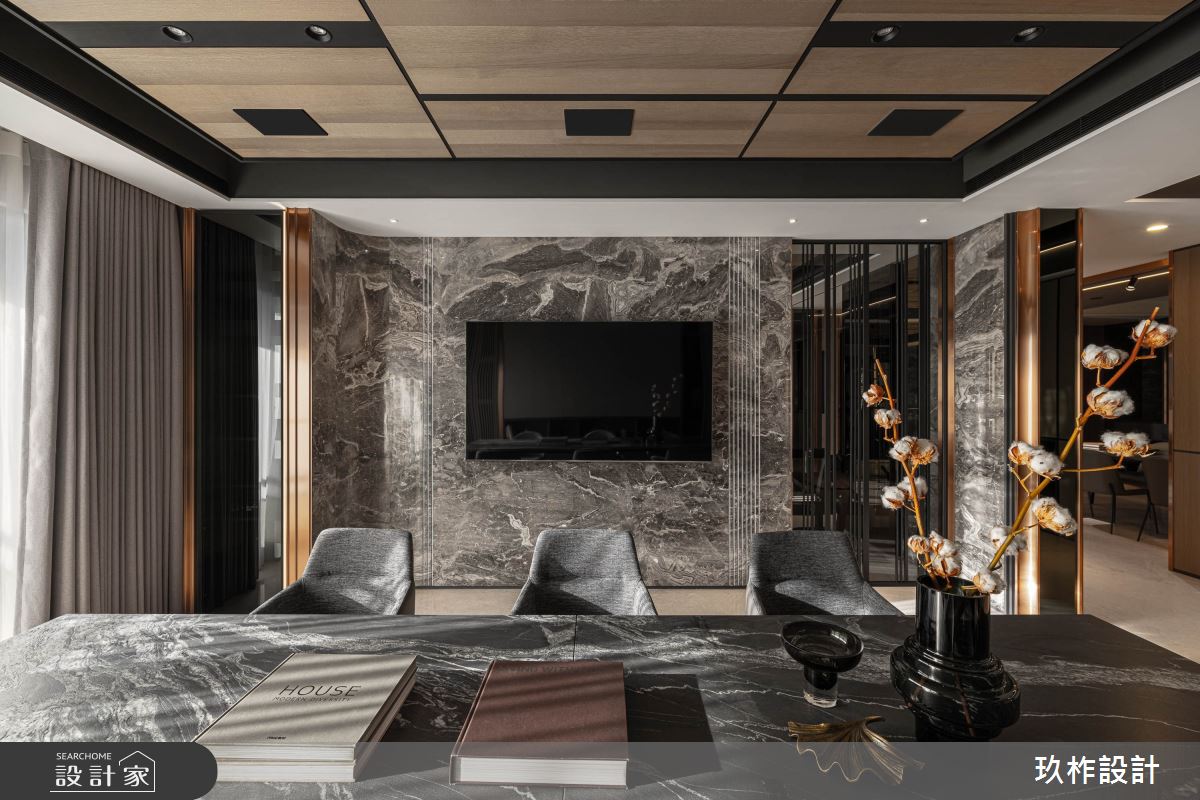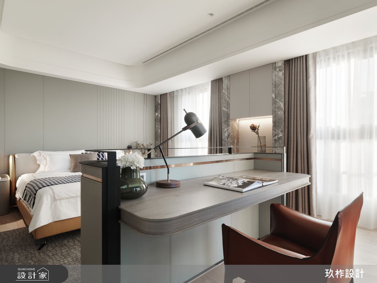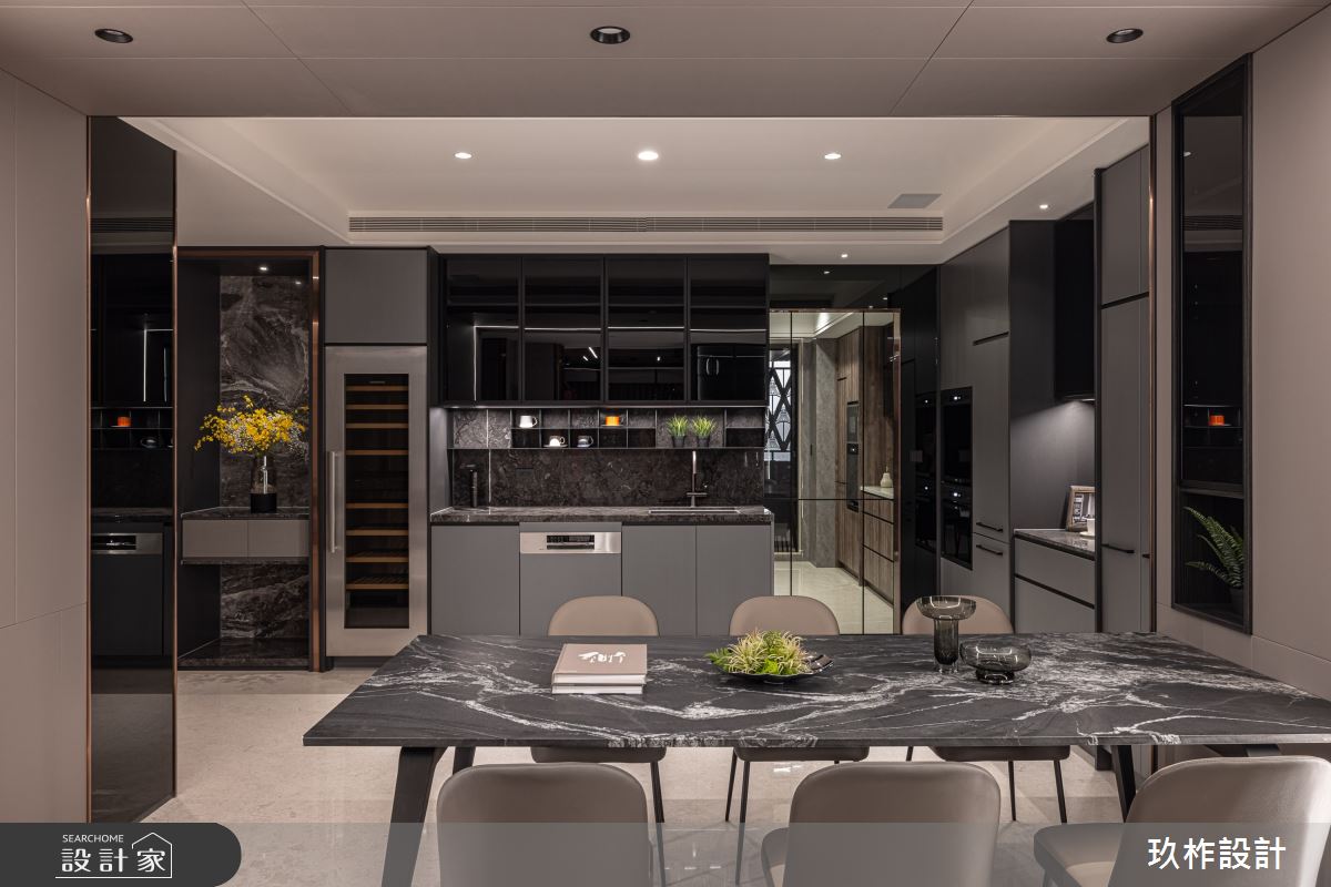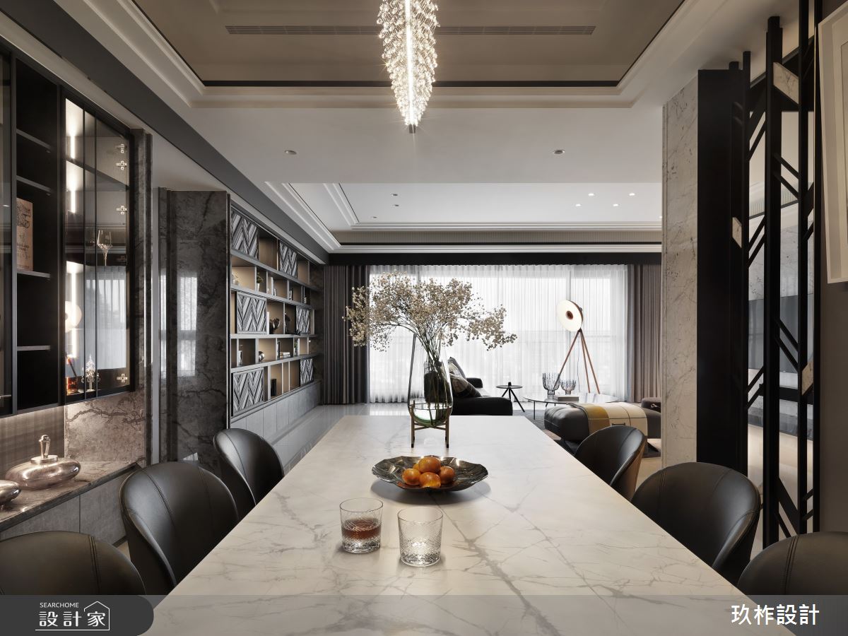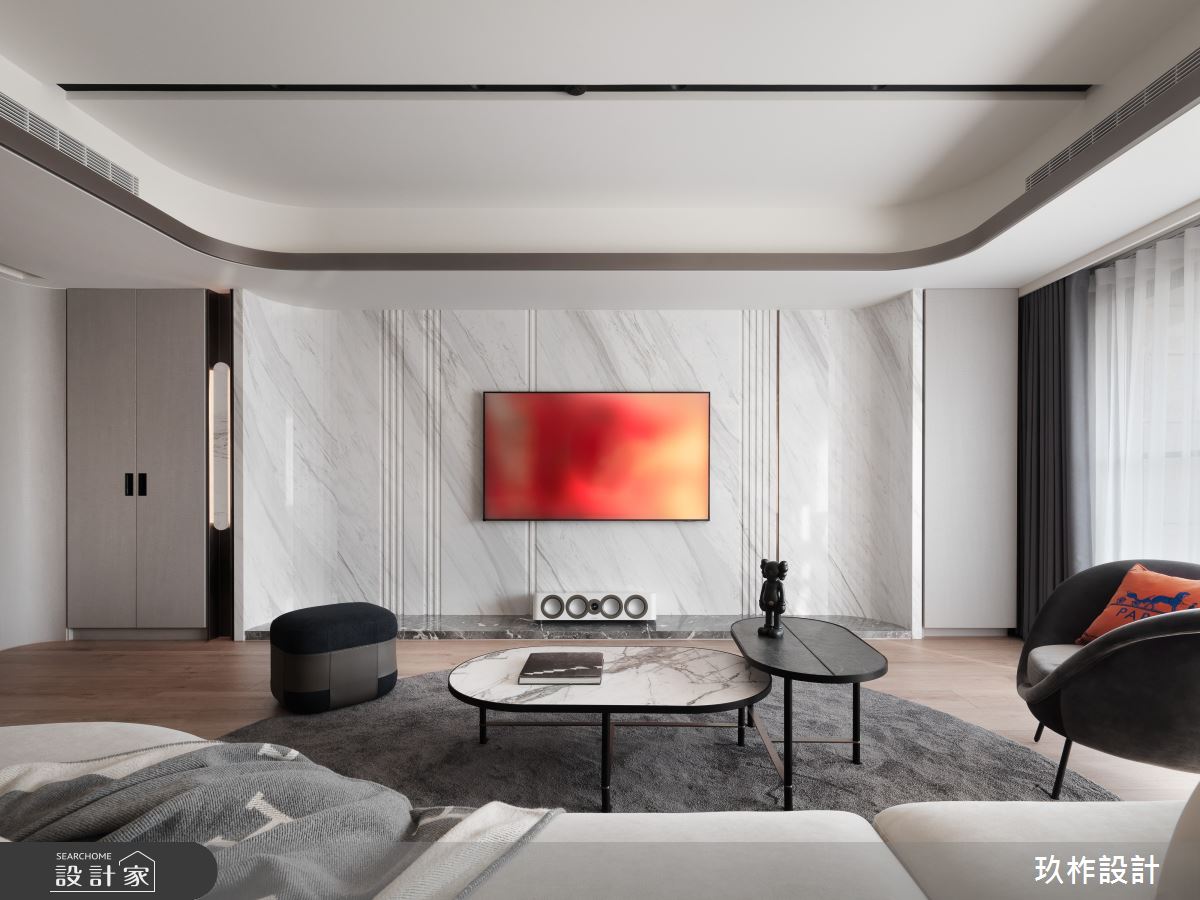 來自玖柞設計的85坪現代風住宅案,屋主一家人共有2位大人、2位小孩,是一間單層新成屋(5年以下)的三房格局,設計師藉由建材以乳膠漆、壁紙、超耐磨木地板、石英磚/拋光石英磚、鐵件、鍍鈦金屬、系統板材、大理石、皮革、石材、繃布的搭配應用,實現一家人的理想生活。