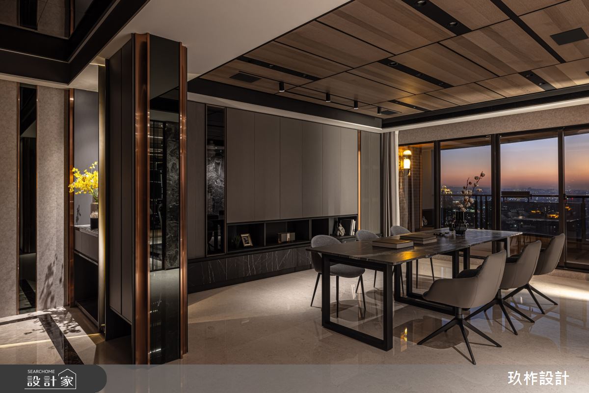 來自玖柞設計的310坪現代風住宅案,屋主一家人共有2位大人、2位小孩,是一間自地自建毛胚屋的五房格局,設計師藉由建材以油漆、超耐磨木地板、不鏽鋼、鐵件、鍍鈦金屬、鋼刷木皮、大理石、樂土、石材、繃布的搭配應用,實現一家人的理想生活。