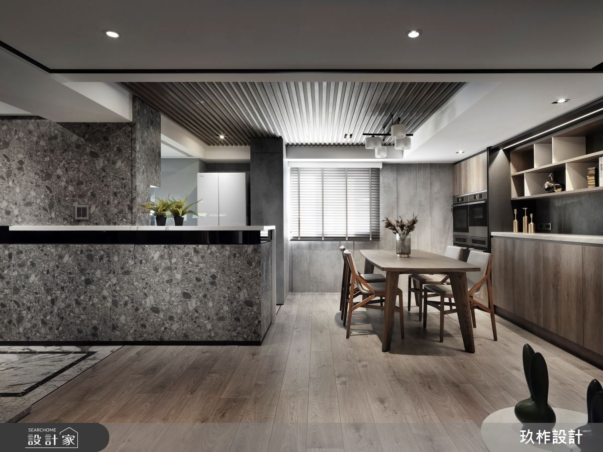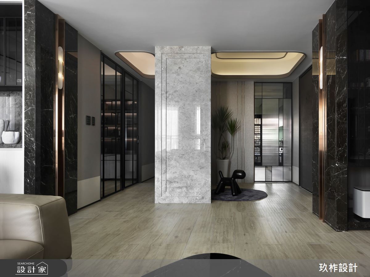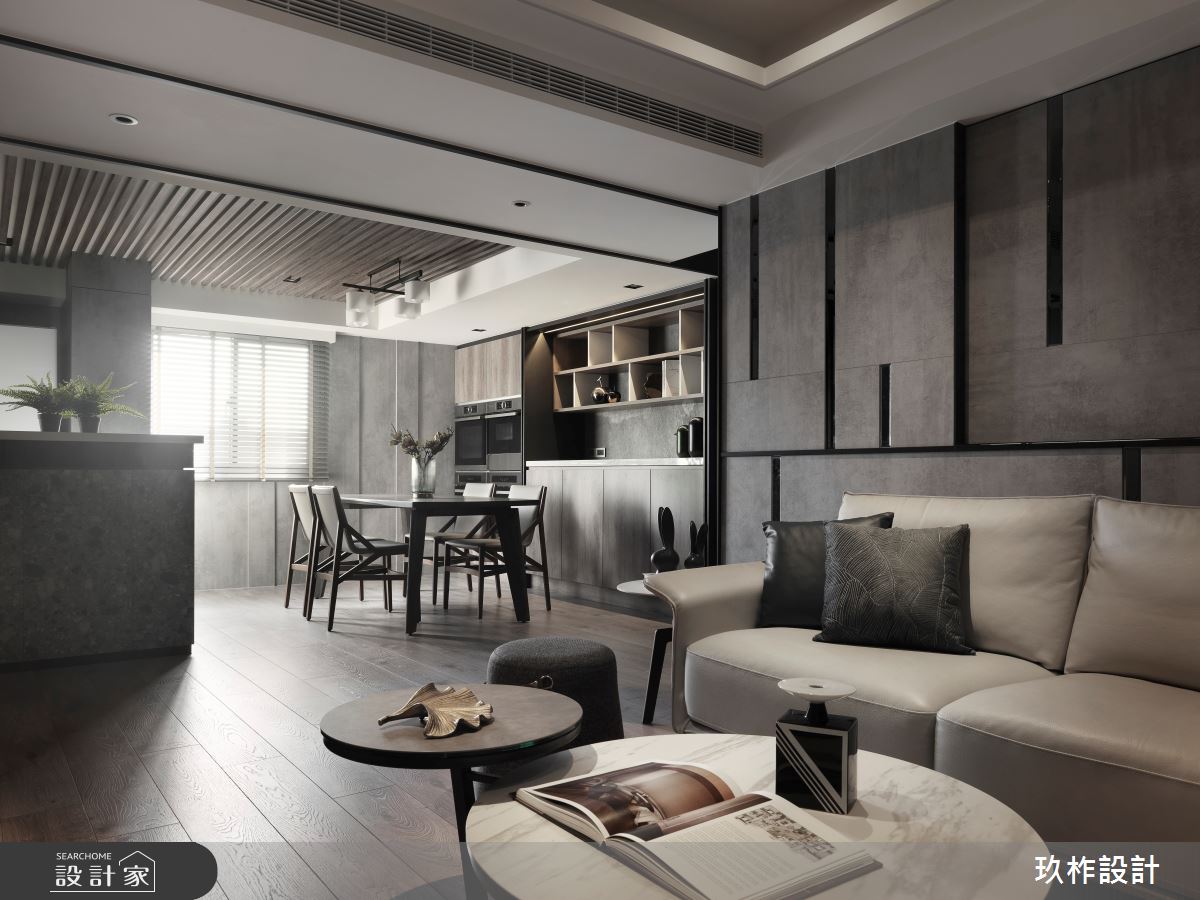 來自玖柞設計的85坪現代風住宅案,屋主一家人共有2位大人、2位小孩,是一間單層新成屋(5年以下)的三房格局,設計師藉由建材以乳膠漆、壁紙、超耐磨木地板、石英磚/拋光石英磚、鐵件、鍍鈦金屬、系統板材、大理石、皮革、石材、繃布的搭配應用,實現一家人的理想生活。