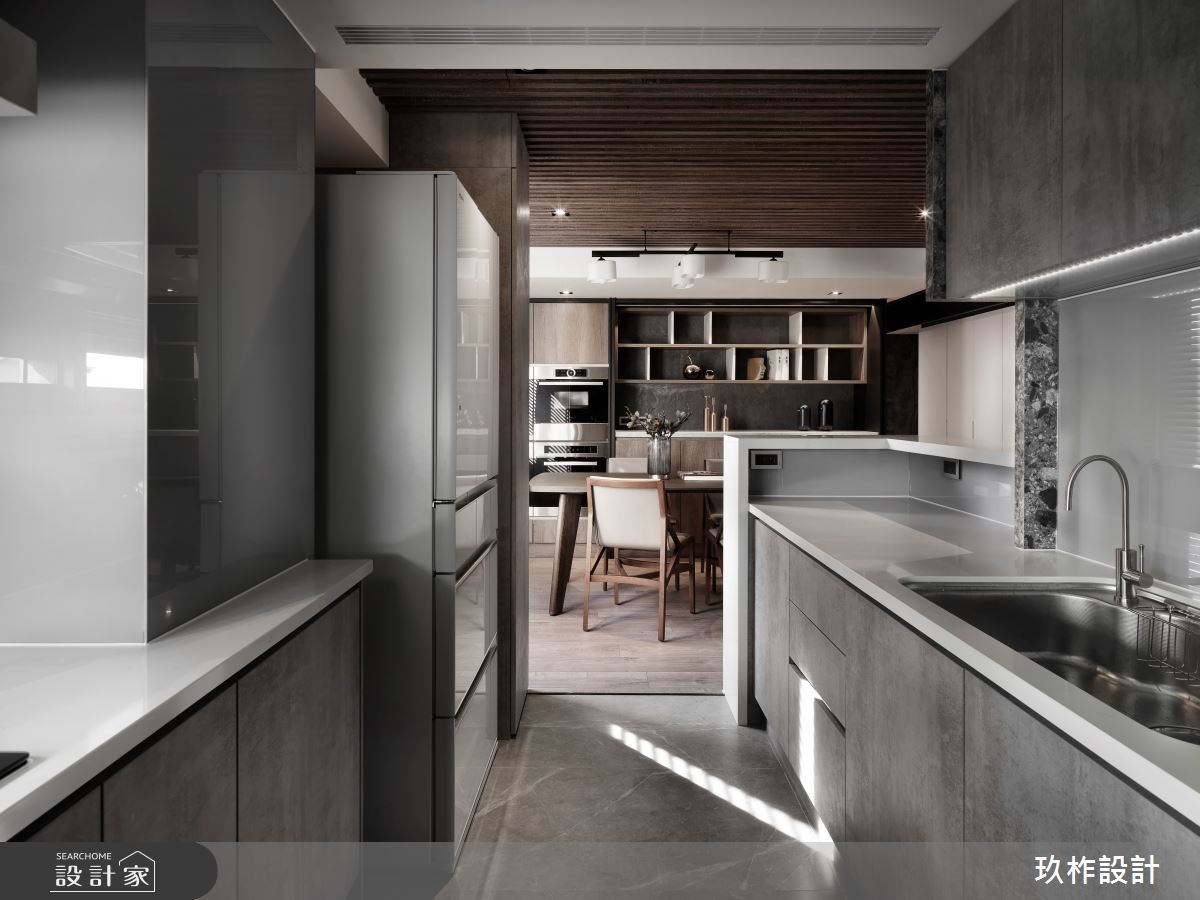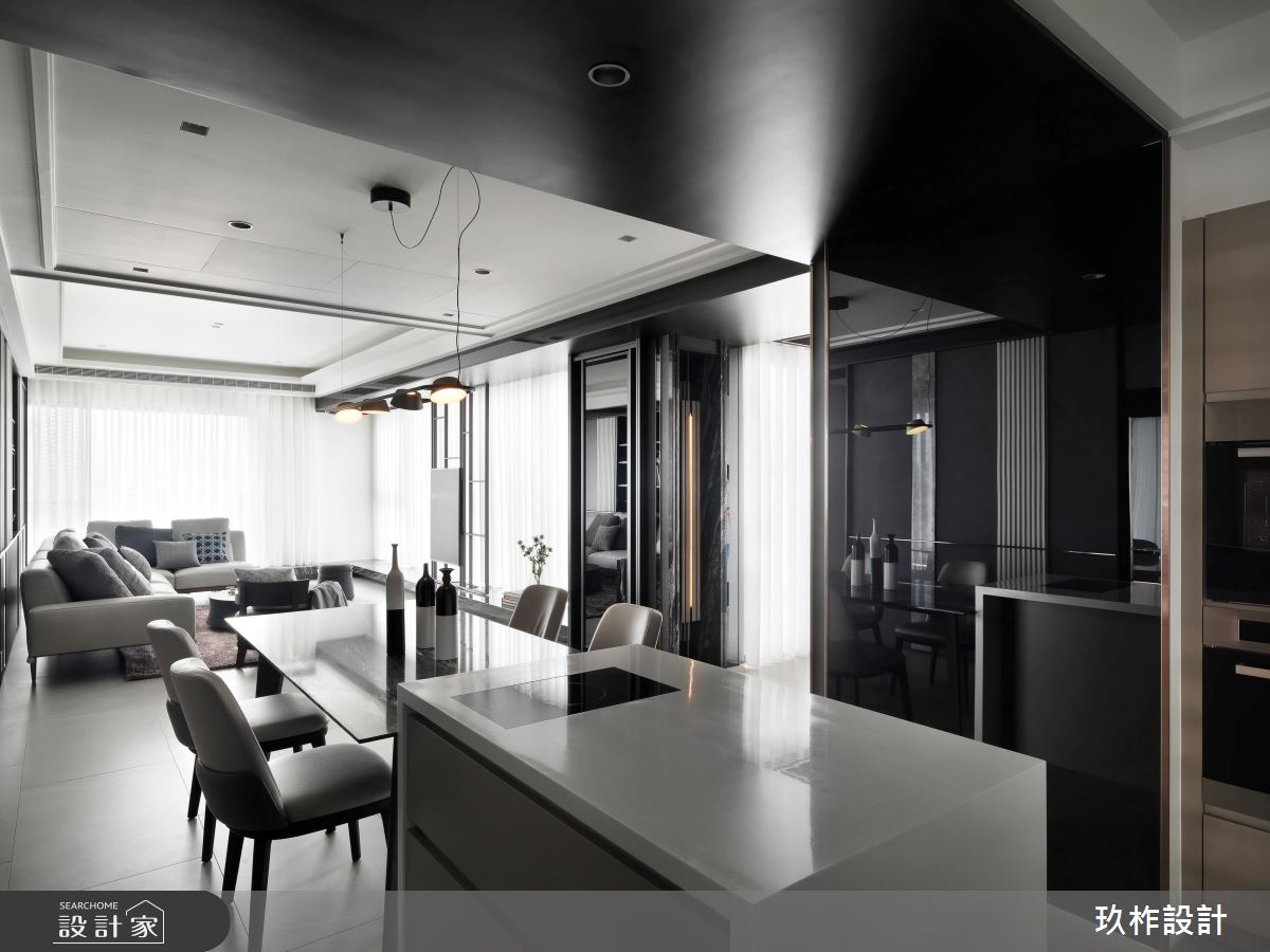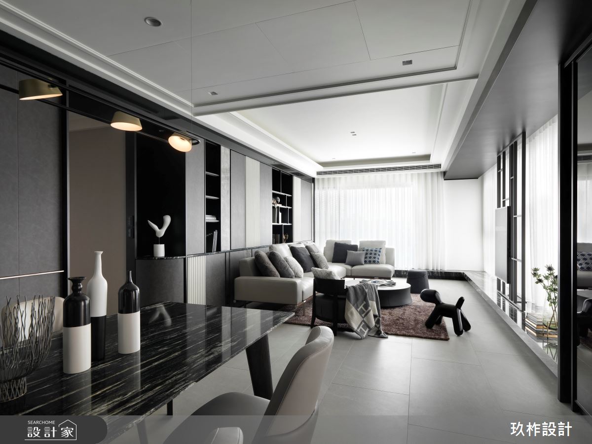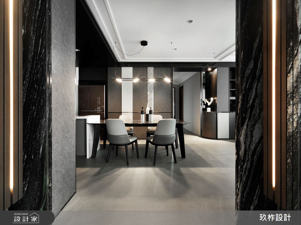 來自玖柞設計的85坪現代風住宅案,屋主一家人共有2位大人、2位小孩,是一間單層新成屋(5年以下)的三房格局,設計師藉由建材以乳膠漆、壁紙、超耐磨木地板、石英磚/拋光石英磚、鐵件、鍍鈦金屬、系統板材、大理石、皮革、石材、繃布的搭配應用,實現一家人的理想生活。