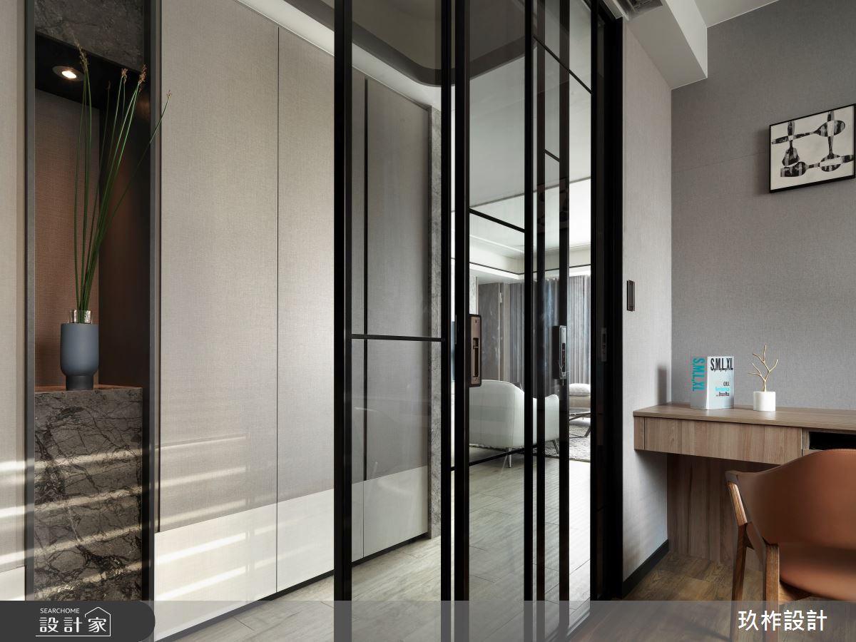 由玖柞設計精心規劃的32坪三房住宅空間,家庭成員一共有3位大人。因應屋主需求,設計師運用現代風作為主軸,搭配乳膠漆、壁紙、超耐磨木地板、鐵件、鍍鈦金屬、木作貼皮、烤漆、系統板材、大理石、磁磚、木百葉、人造石、賽麗石、皮革、石材,打造全家人的夢想家居。