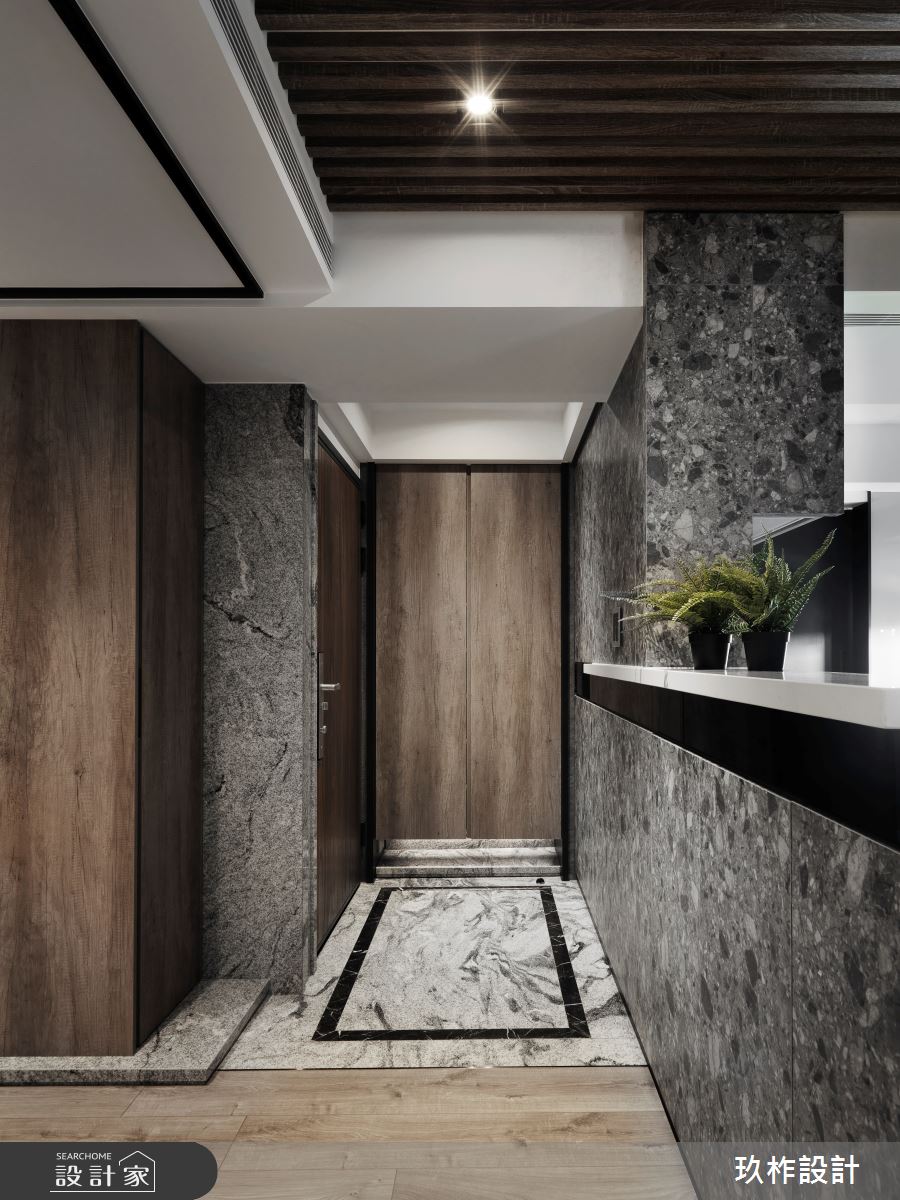 來自玖柞設計的76坪混搭風住宅案,屋主一家人共有2位大人、2位小孩,是一間單層新成屋(5年以下)的三房格局,設計師藉由建材以油漆、乳膠漆、壁紙、超耐磨木地板、鐵件、灰鏡、鍍鈦金屬、木作貼皮、鋼刷木皮、系統板材、大理石、皮革、石材、繃布的搭配應用,實現一家人的理想生活。