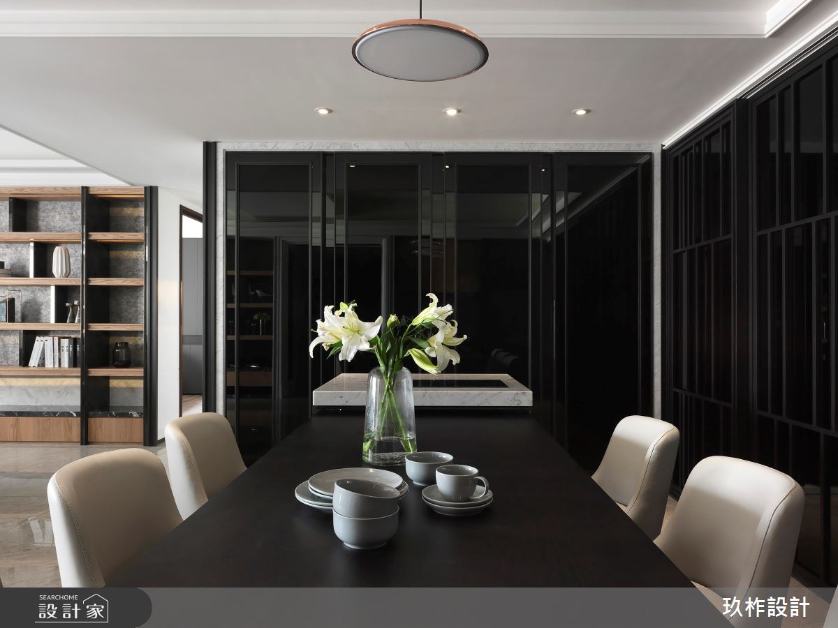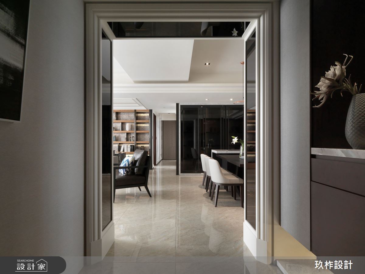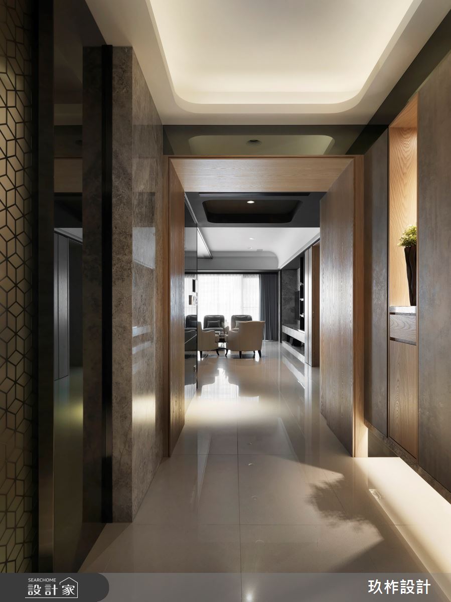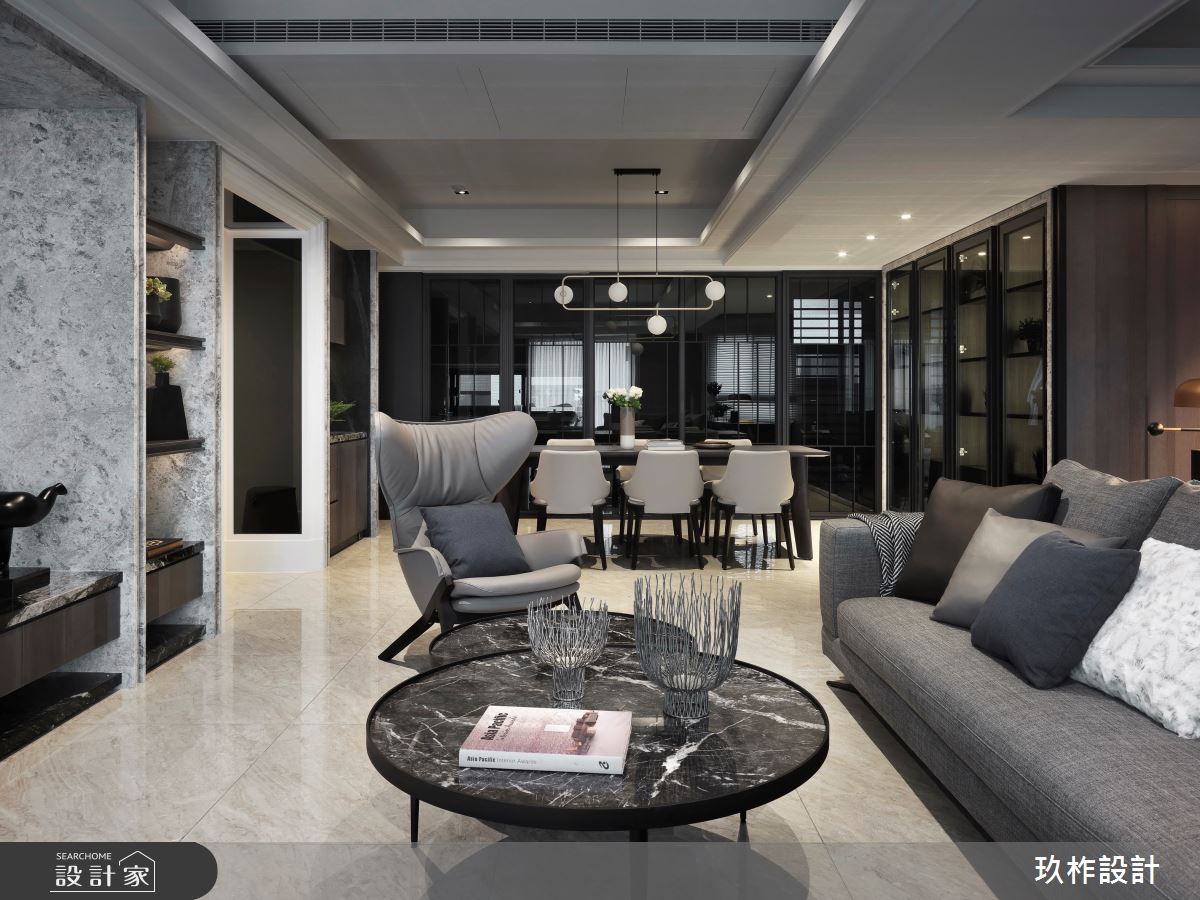 來自玖柞設計的93坪奢華風住宅案,屋主一家人共有2位大人、2位小孩,是一間透天別墅新成屋(5年以下)的四房格局,設計師藉由建材以大理石材、金屬鍍鈦、天然木皮、石英石、皮革、美耐皿板材的搭配應用,實現一家人的理想生活。
