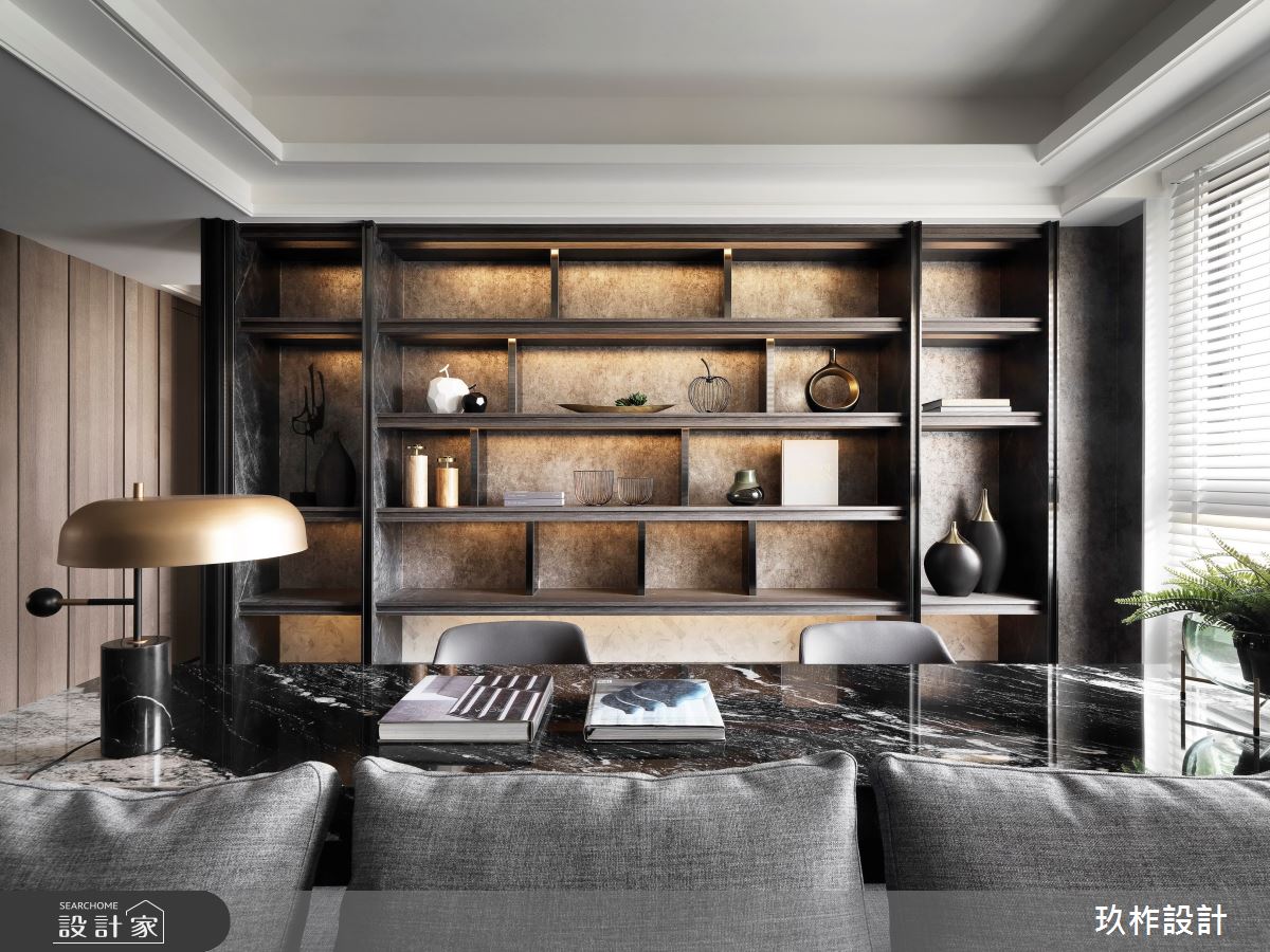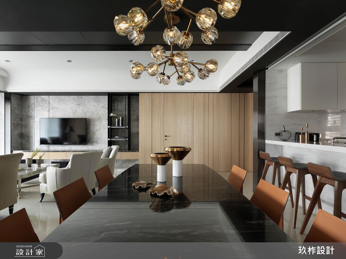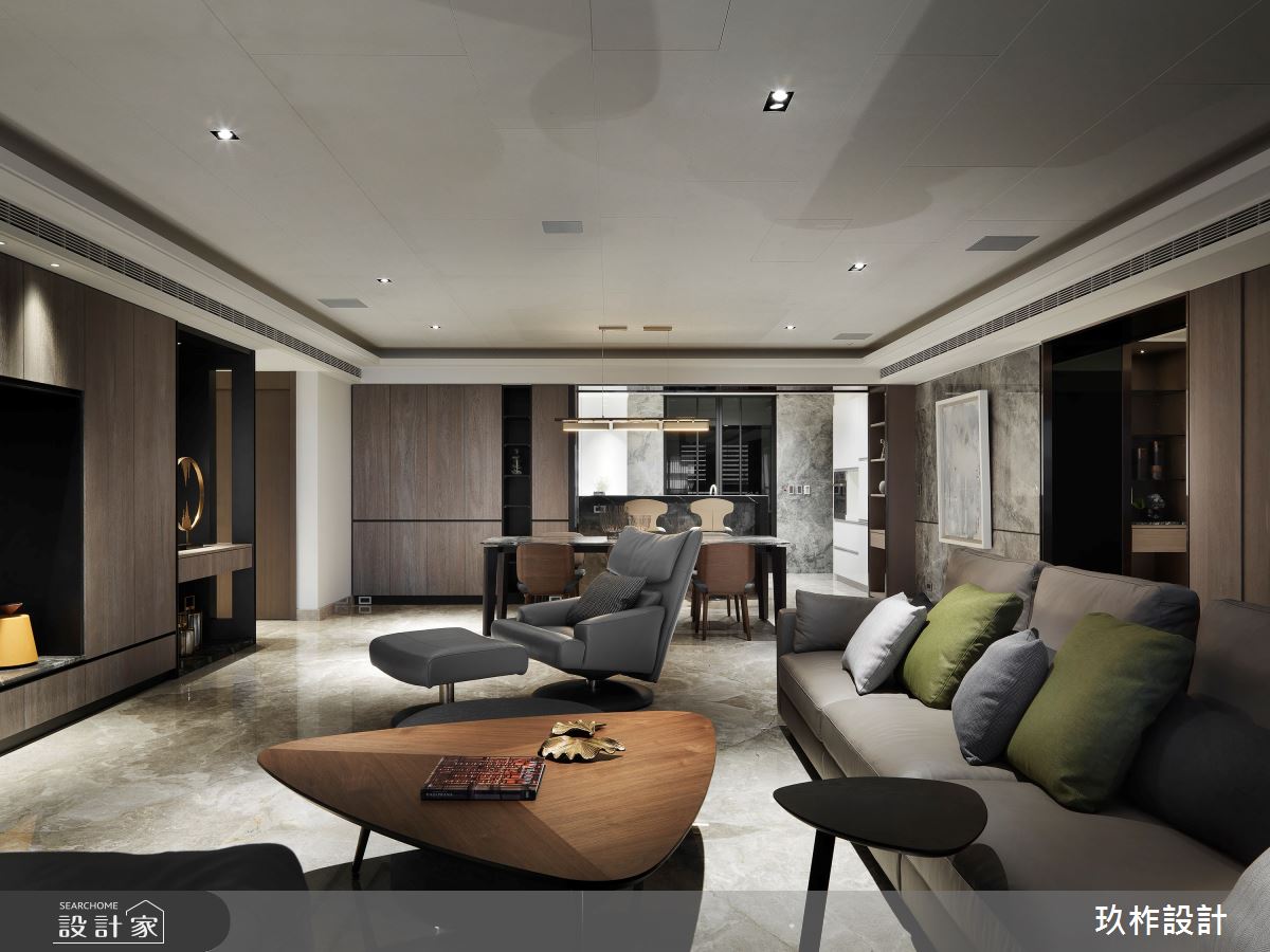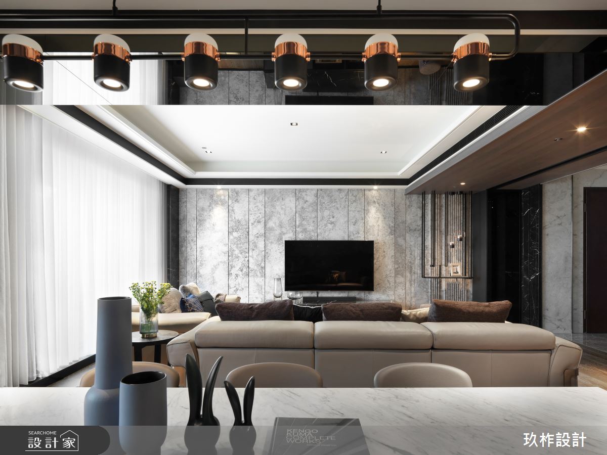 來自玖柞設計的50坪現代風住宅案,屋主一家人共有1位大人、2位長輩,是一間單層新成屋(5年以下)的三房格局,設計師藉由建材以乳膠漆、壁紙、超耐磨木地板、鐵件、鍍鈦金屬、鋼刷木皮、系統板材、大理石、木百葉、皮革、石材、繃布、噴漆的搭配應用,實現一家人的理想生活。