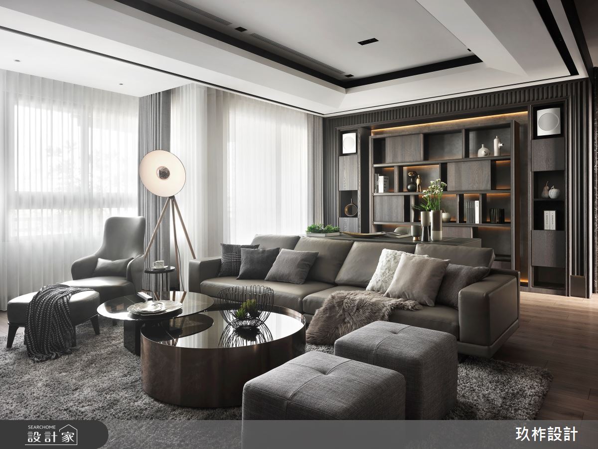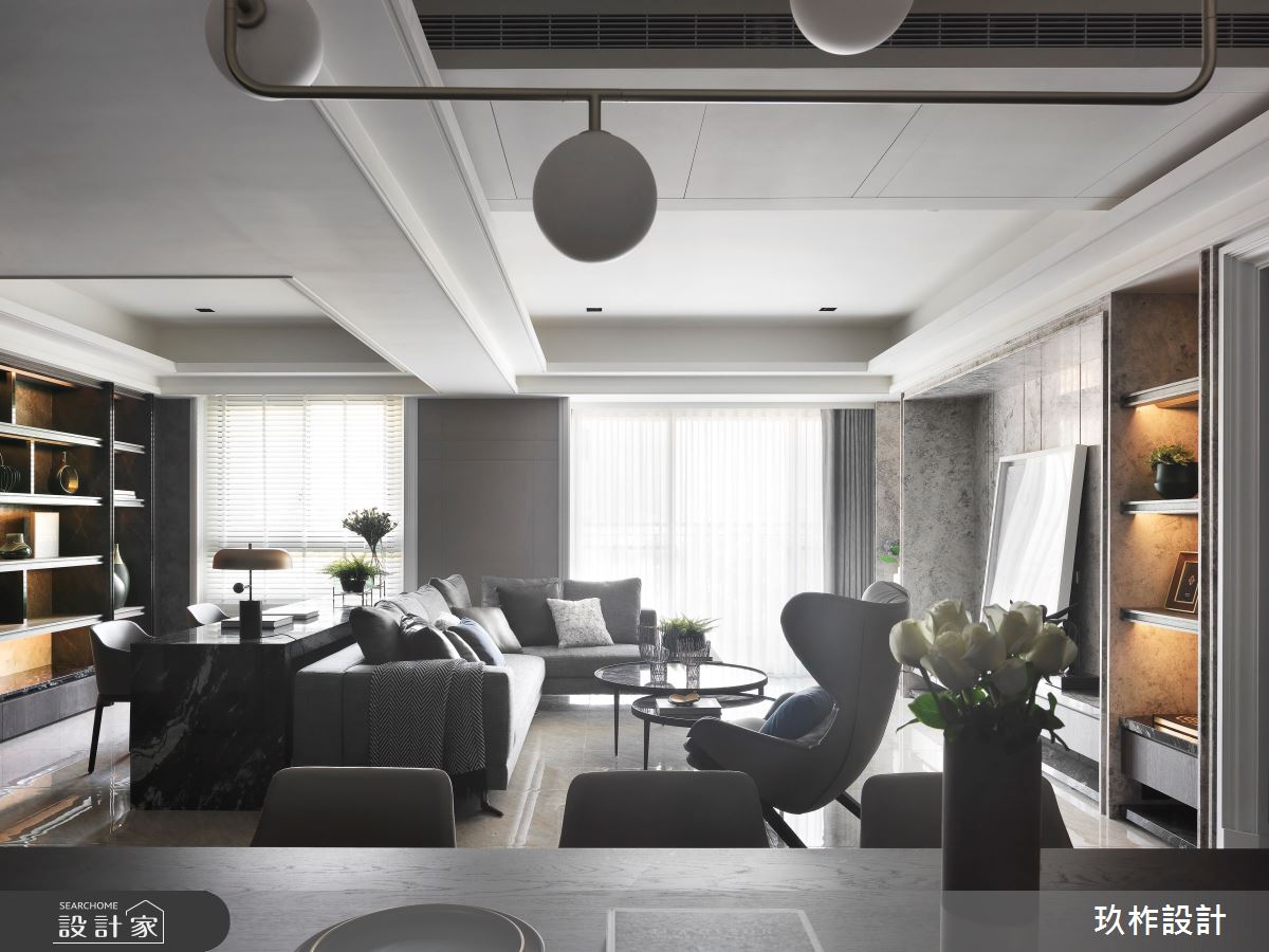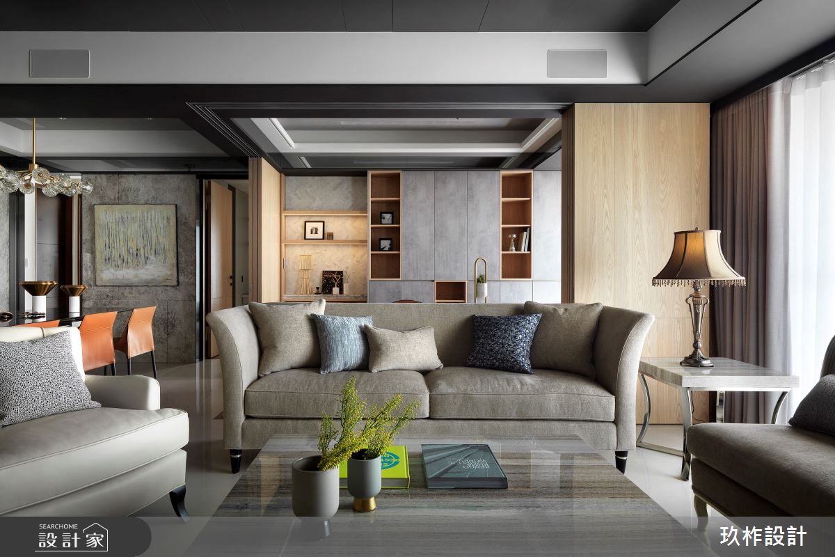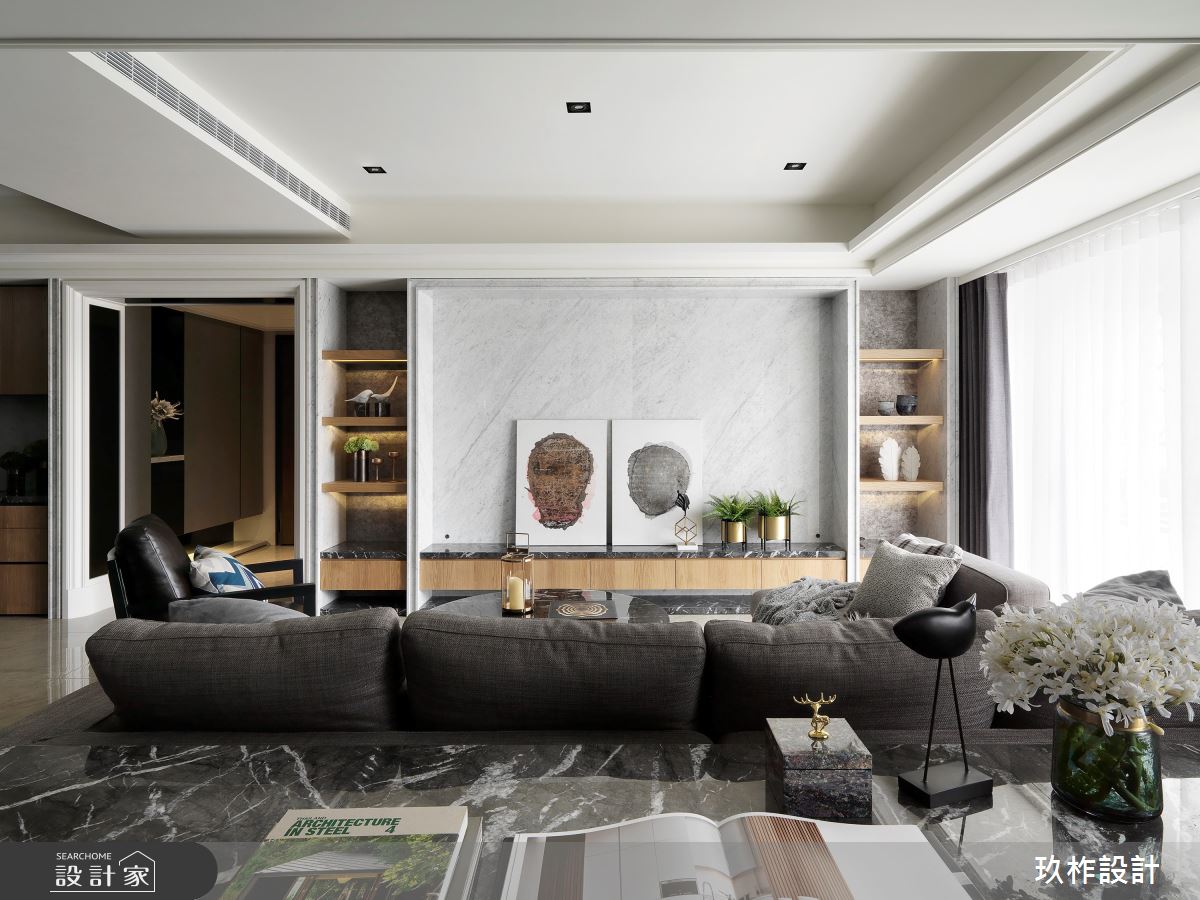 來自玖柞設計的50坪現代風住宅案,屋主一家人共有1位大人、2位長輩,是一間單層新成屋(5年以下)的三房格局,設計師藉由建材以乳膠漆、壁紙、超耐磨木地板、鐵件、鍍鈦金屬、鋼刷木皮、系統板材、大理石、木百葉、皮革、石材、繃布、噴漆的搭配應用,實現一家人的理想生活。