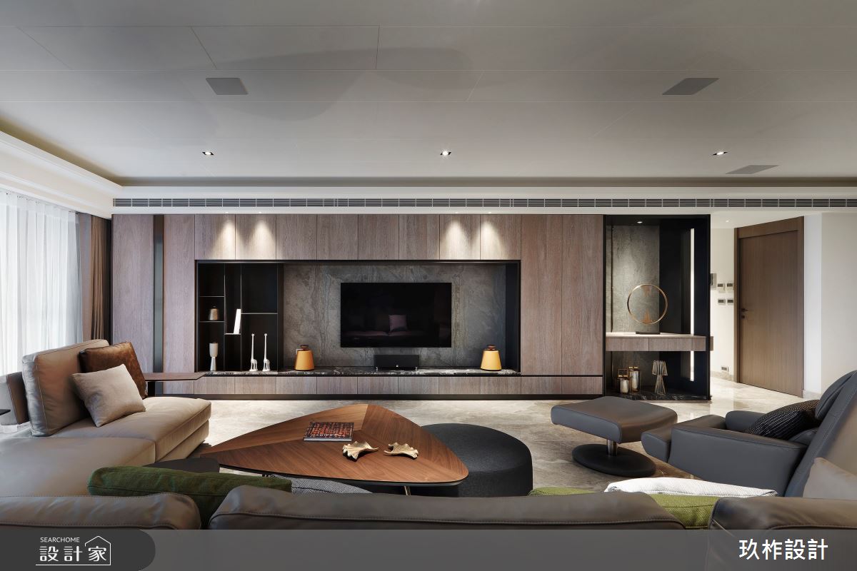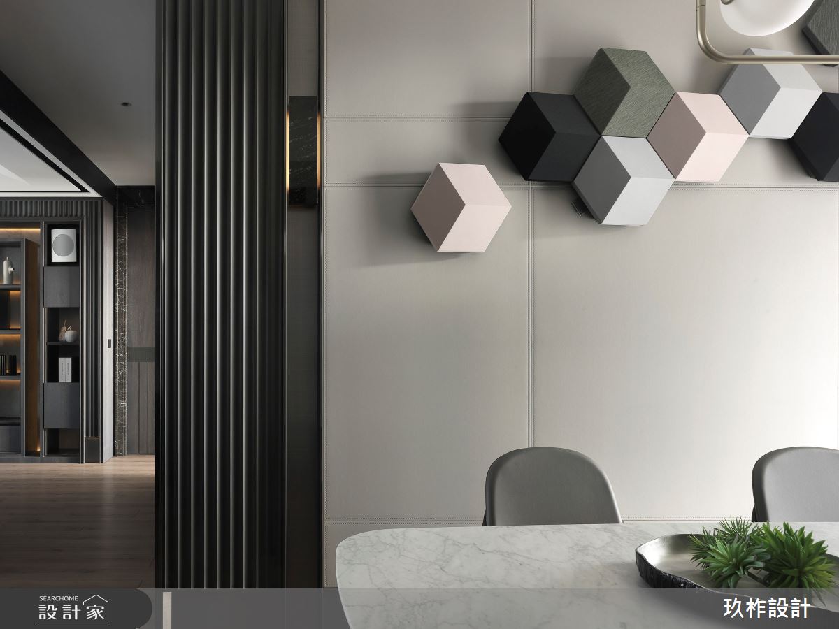 來自玖柞設計的38坪現代風住宅案,是一間單層新成屋(5年以下)的三房格局,設計師藉由建材以乳膠漆、壁紙、超耐磨木地板、鐵件、灰鏡、鍍鈦金屬、烤漆、鋼刷木皮、系統板材、大理石、磁磚、皮革、石材、繃布、線板、噴漆的搭配應用,實現一家人的理想生活。