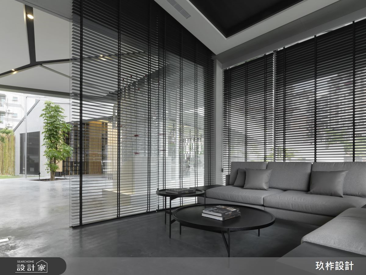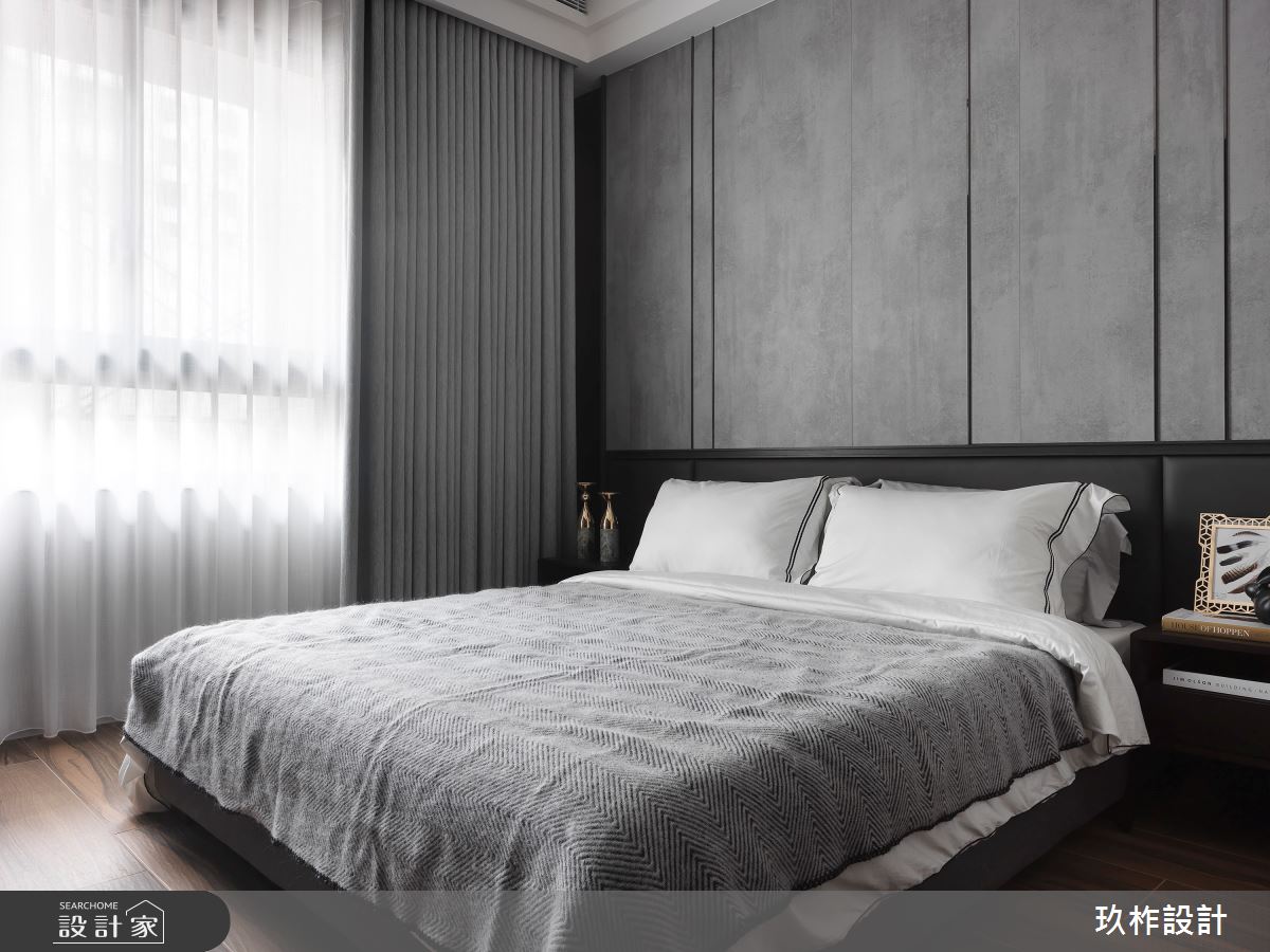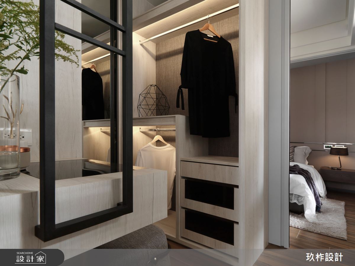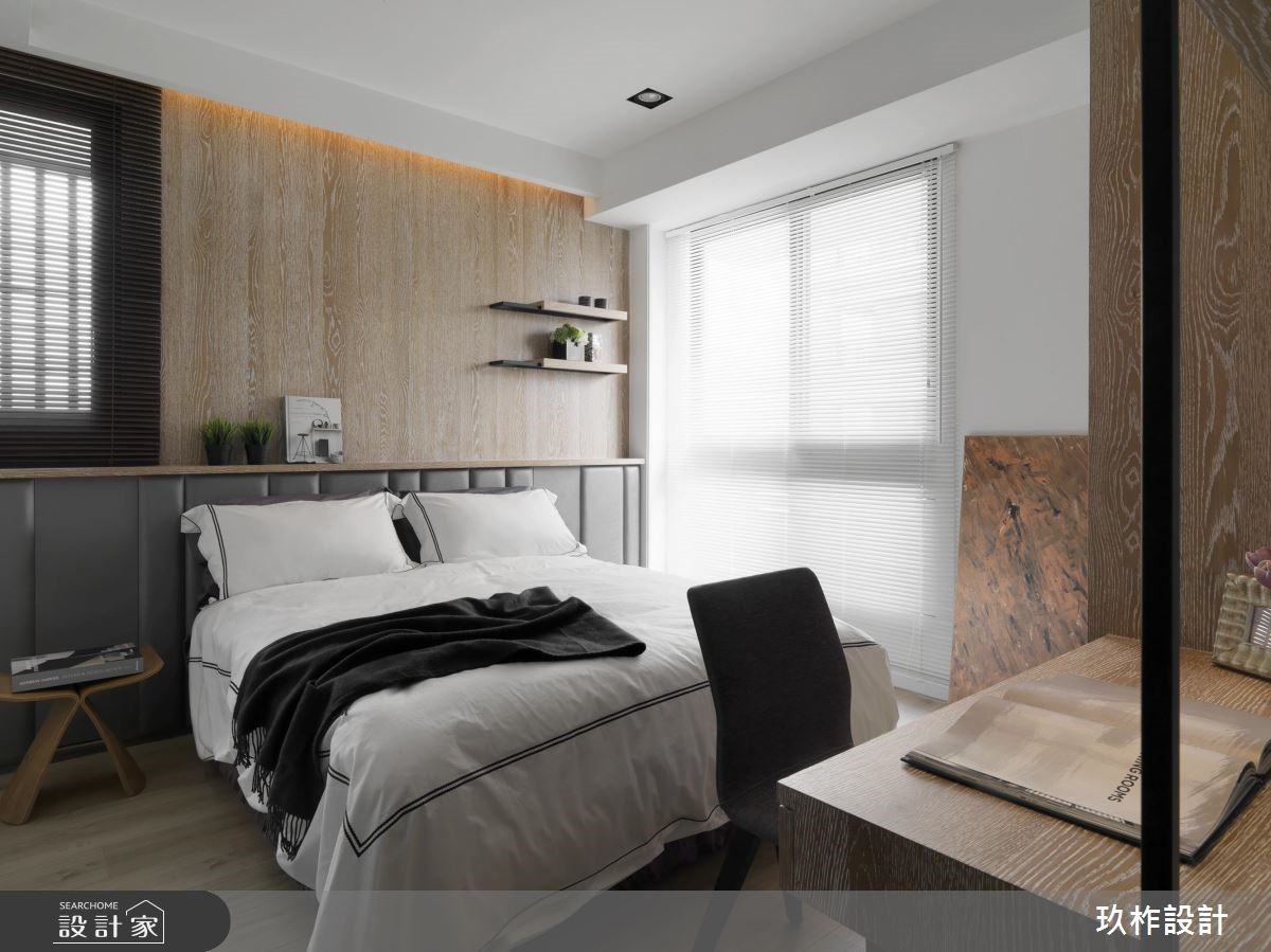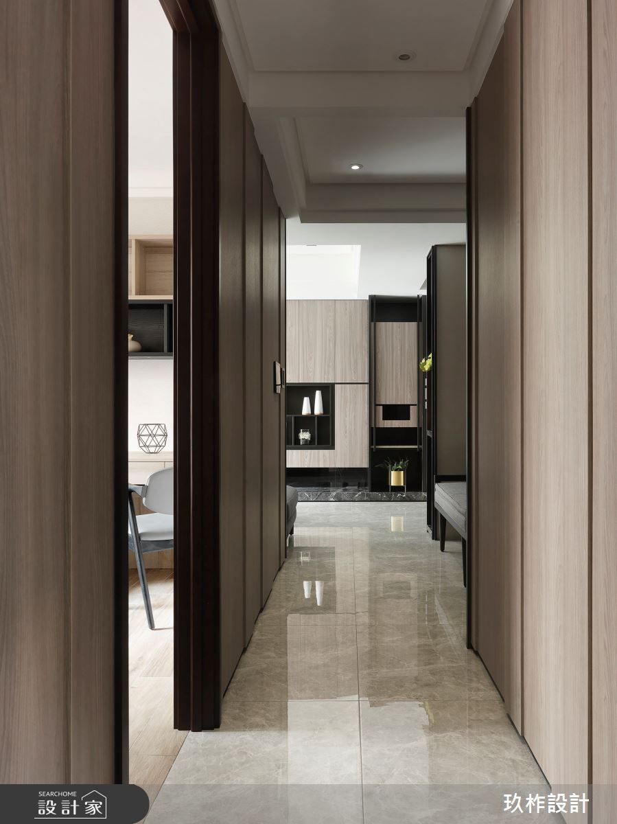 小宅該如何劃分格局,才能顯大,又能兼顧到風水?這間 20 坪現代宅以暖灰色為主調,透過各種材質的變化,讓空間在統一的色彩中,呈現豐富的層次。設計師在入門處規劃中央及側邊都鏤空的收納櫃,劃分出玄關和餐廳的界線,又能避免開門見灶的風水疑慮;一旁整面黑鏡除了延伸空間感外,也隱藏了收納機能,將空間利用到極致,又不會顯得壓迫。客廳電視牆藉由石材、木質、鏡面和鐵件的混搭,塑造能夠擺放裝飾品的美感牆面。由於公領域採取開放式設計,因此原先較為昏暗的餐廳,也能迎接明亮的自然光,使人擁有舒適寬敞的用餐環境。位於走廊底部的主臥,在灰色床頭牆隱藏收納櫃,並配合床尾的大型衣櫃與梳妝檯,讓休息時光既方便又愜意。次臥自床頭櫃、書桌到床架,皆設置完善的收納空間,徹底滿足小空間放大的實際需求。
